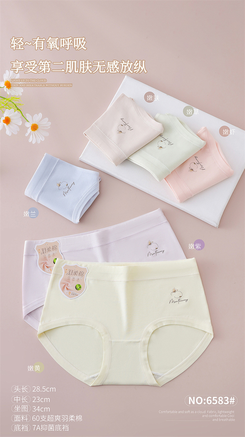JHNY-6583# 【1条】中腰60支超爽羽柔棉舒适透气女士内裤7A抑菌底裆亲肤呵护