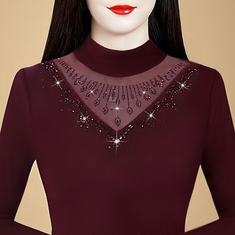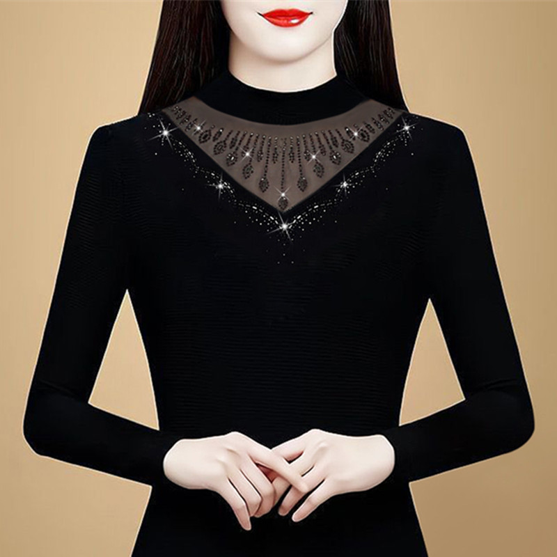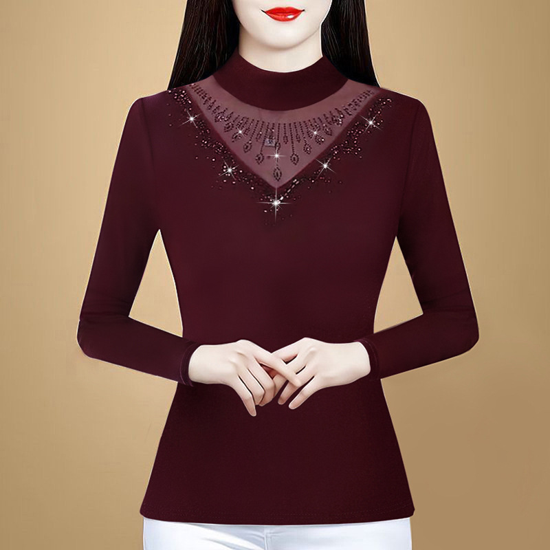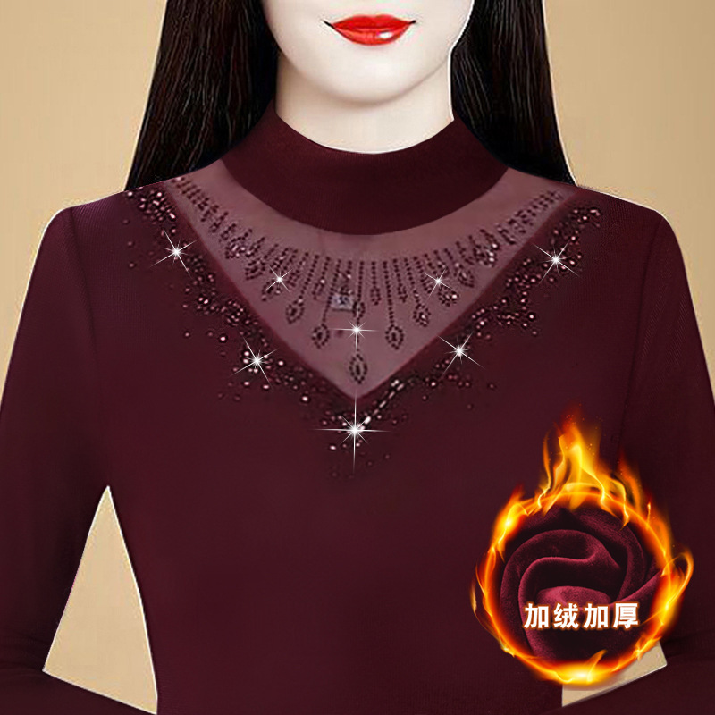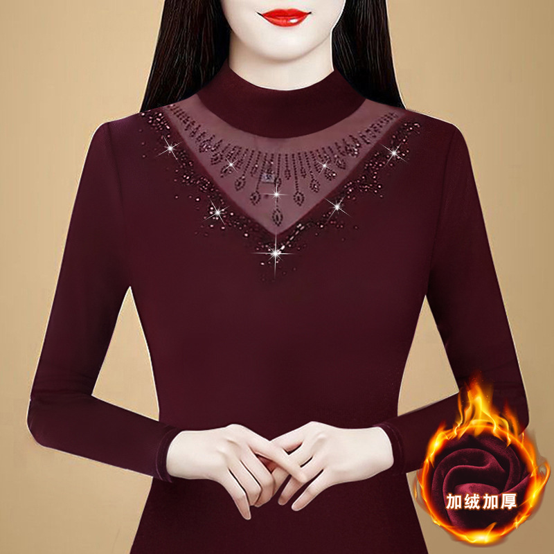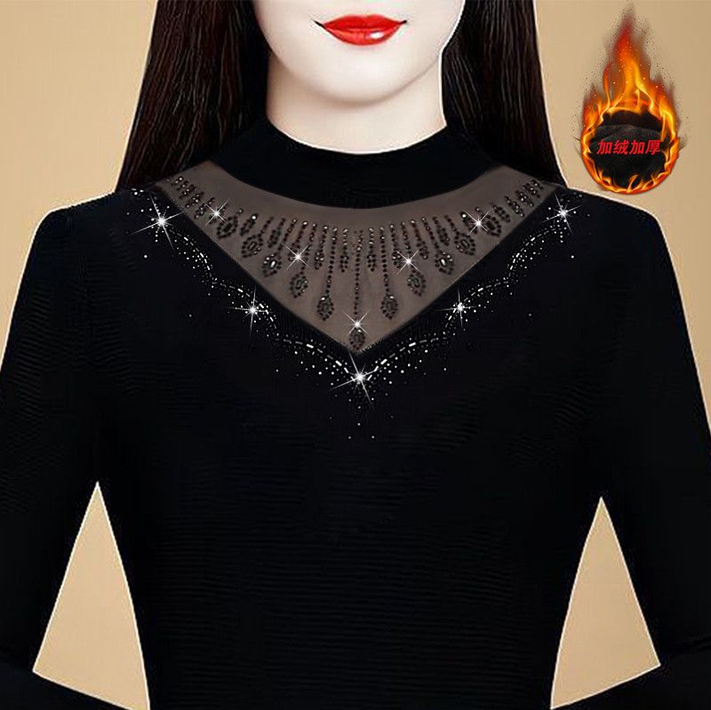 KQL 405H8931洋气修身显瘦打底衫半高领加绒加厚网纱上衣