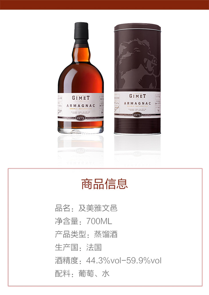 ARMAGNAC GIMET 法国及美珍藏版年份雅文邑