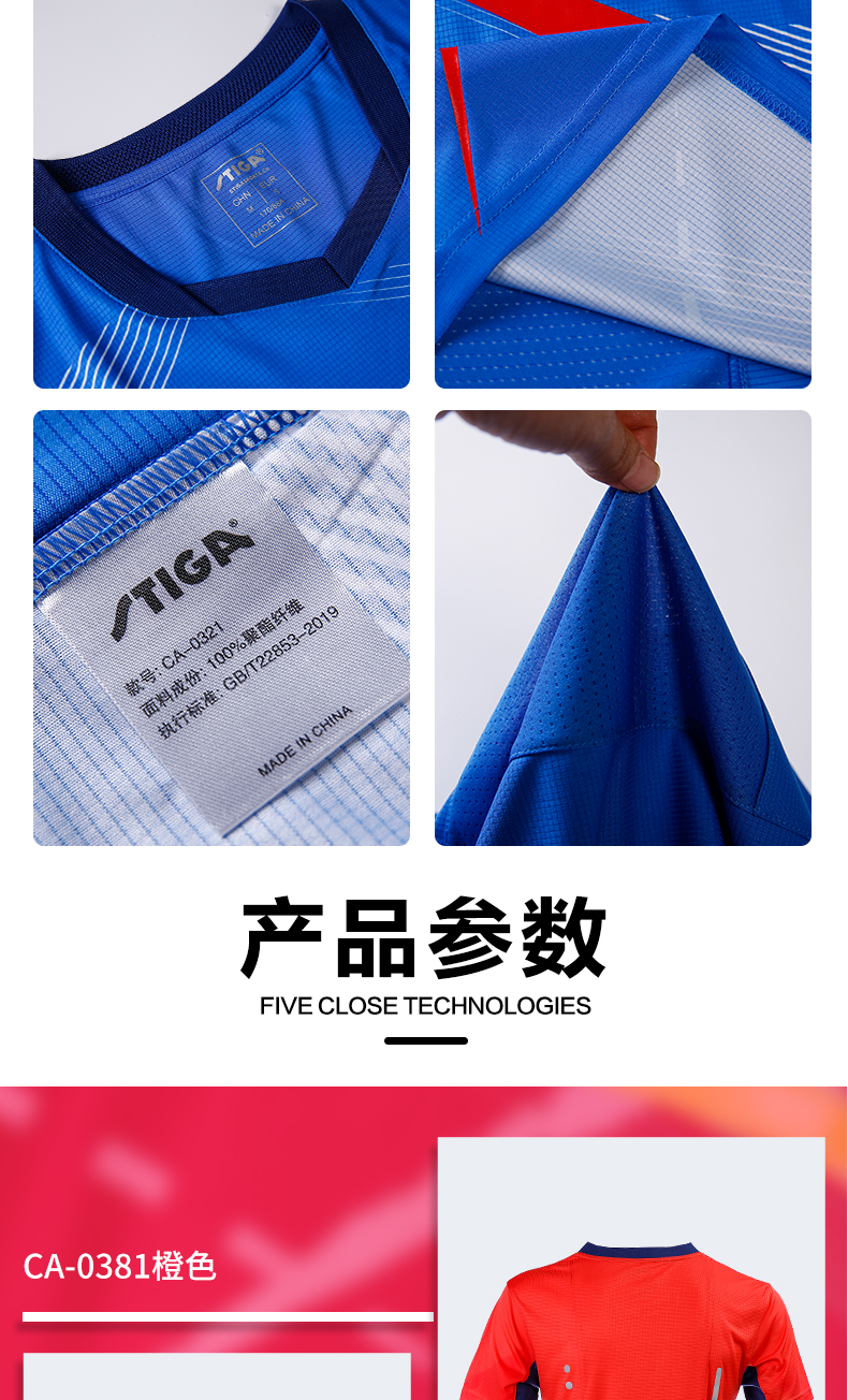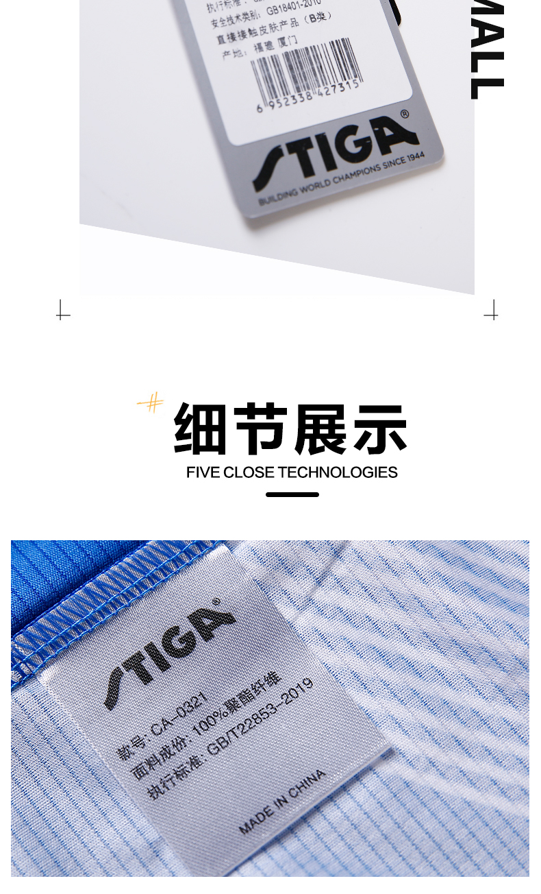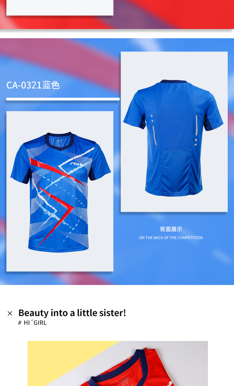 STIGA斯蒂卡男女速干比赛半袖女上衣短袖透气运动球衣CA0321/41/81
