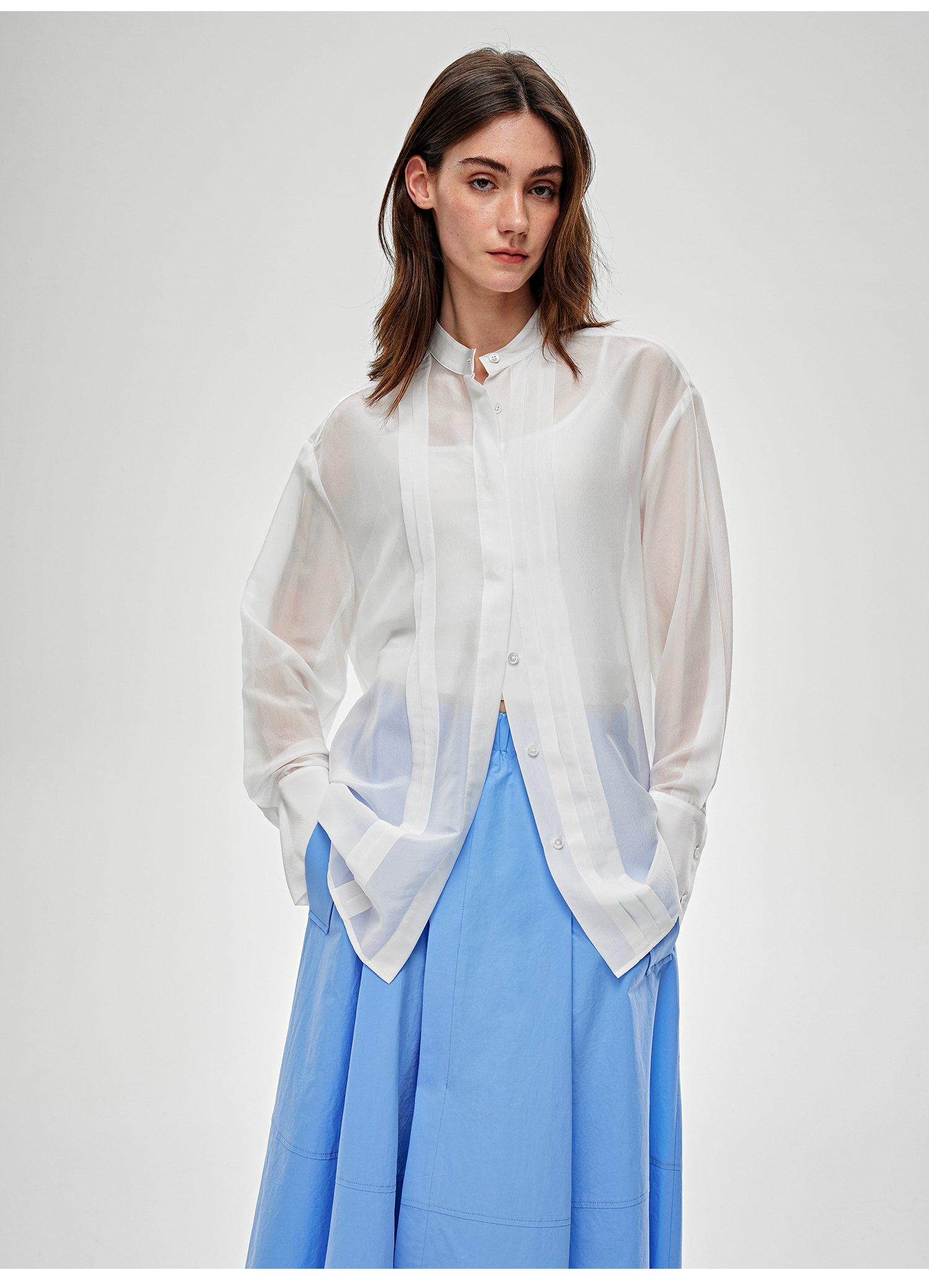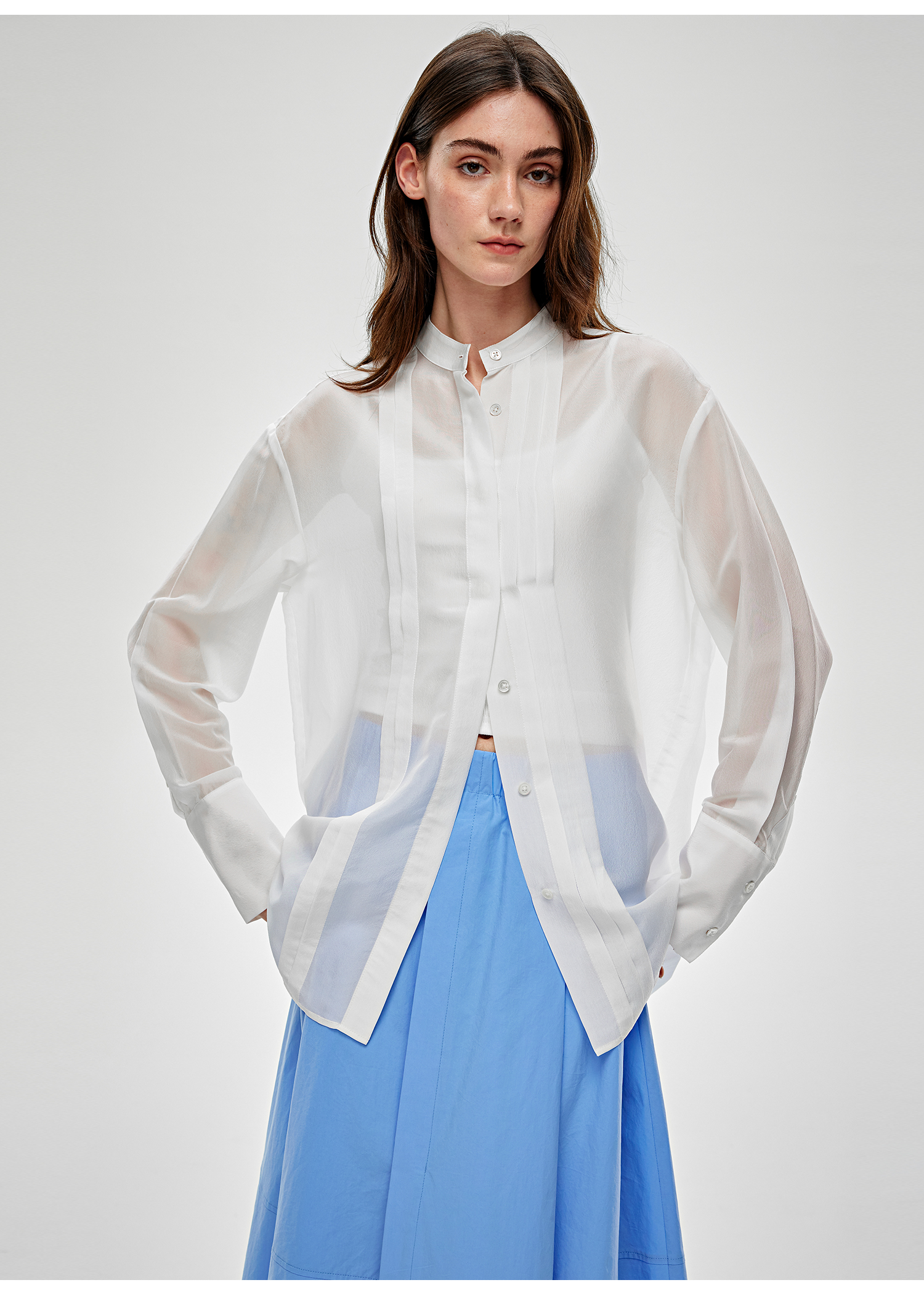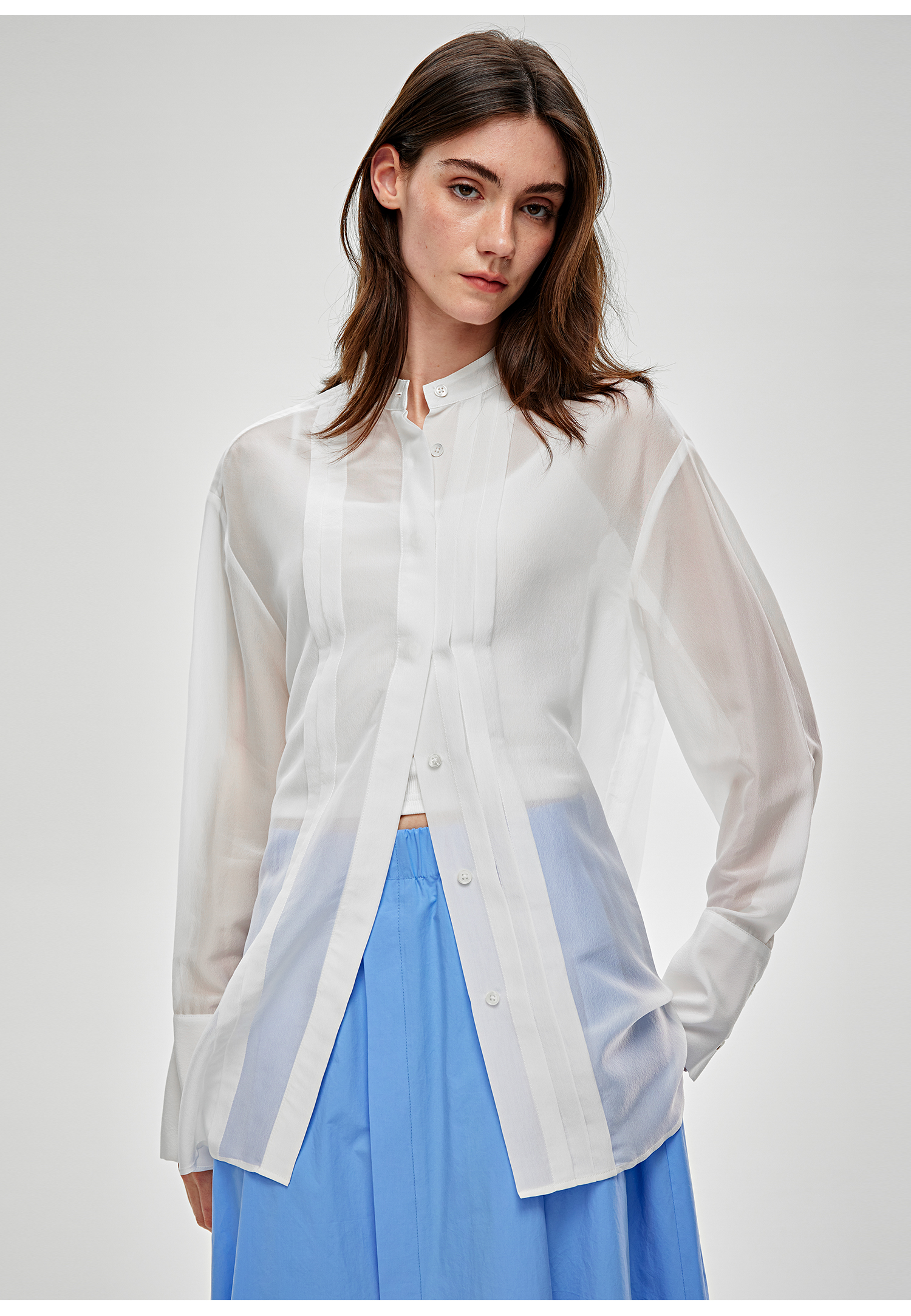 C+IMPRESS/西嘉醋酸真丝透视轻薄白衬衫女夏季新款高级感长袖上衣