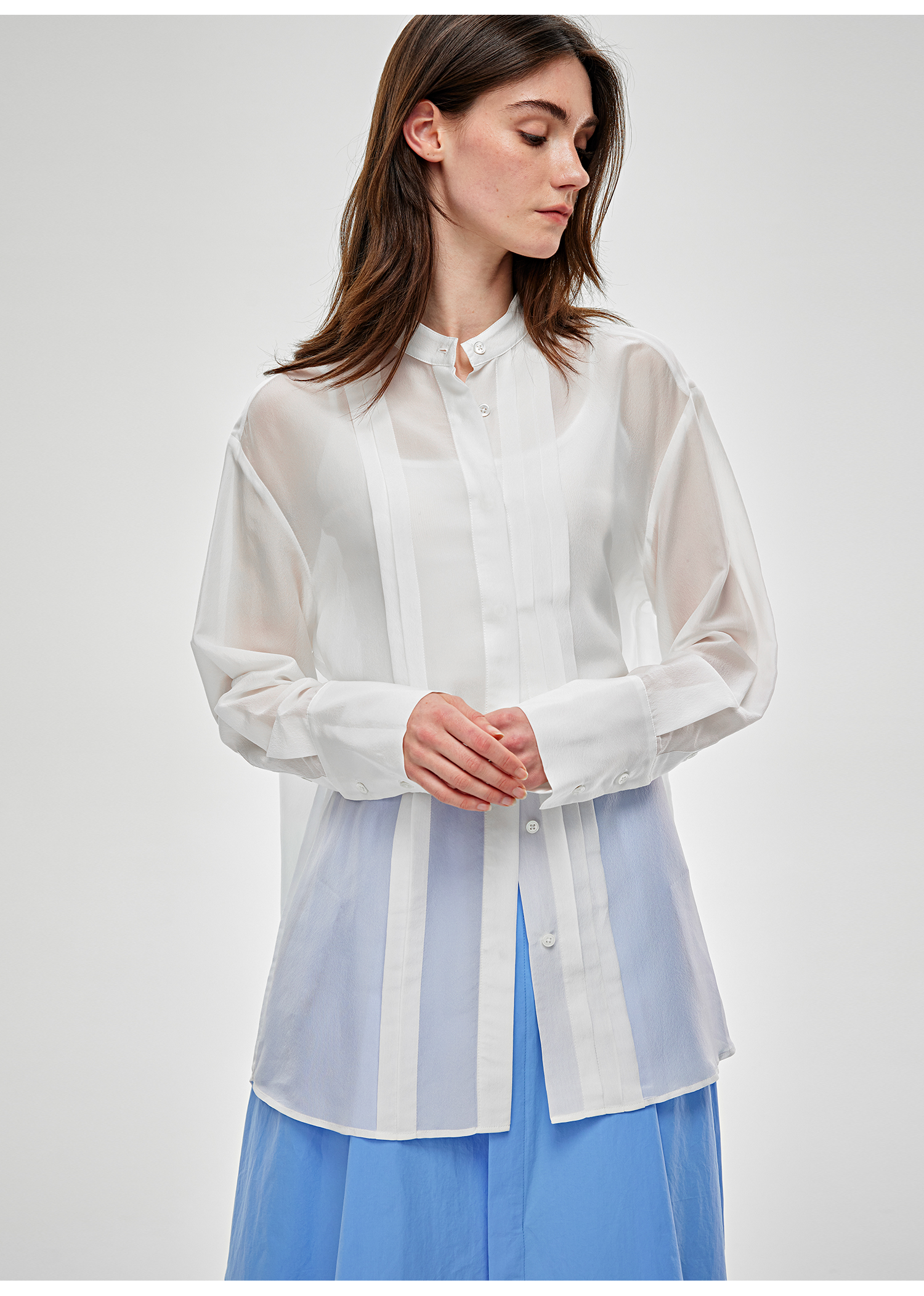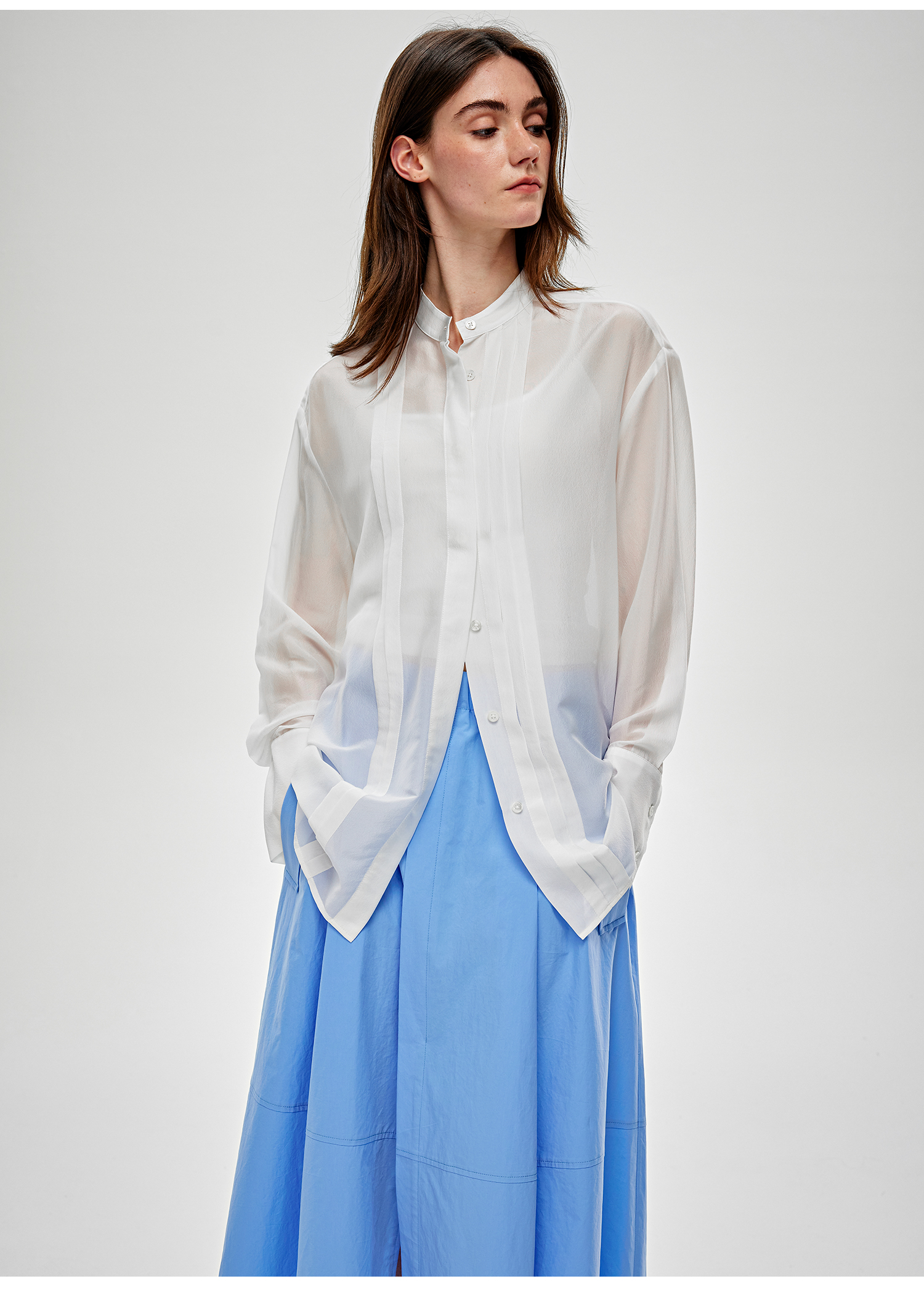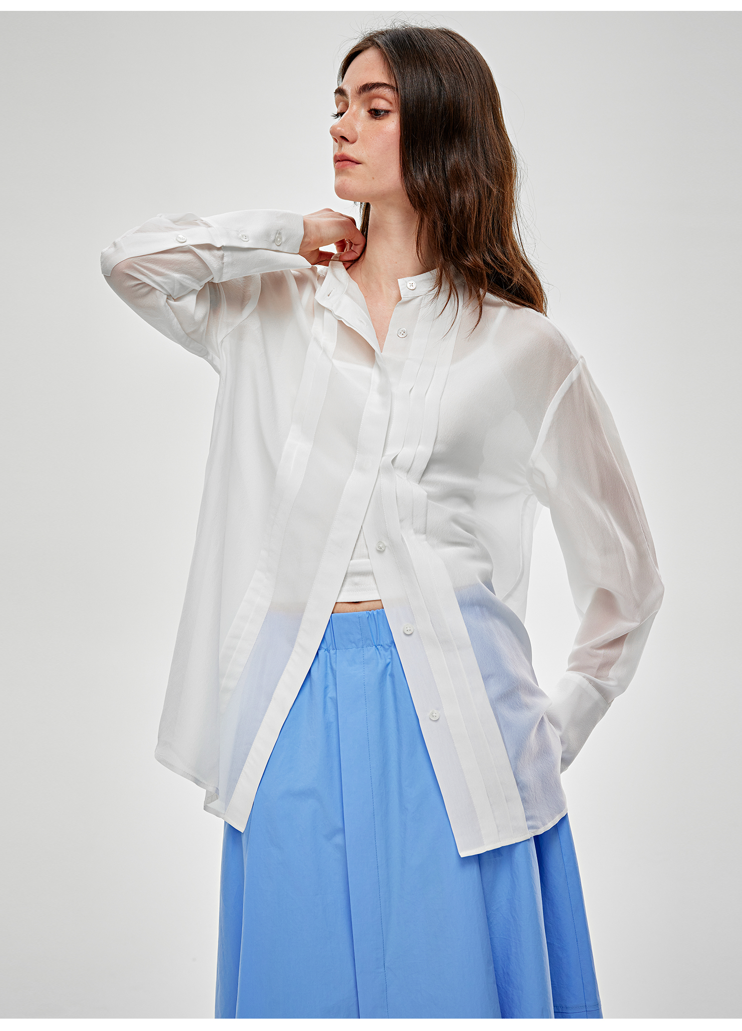 C+IMPRESS/西嘉醋酸真丝透视轻薄白衬衫女夏季新款高级感长袖上衣