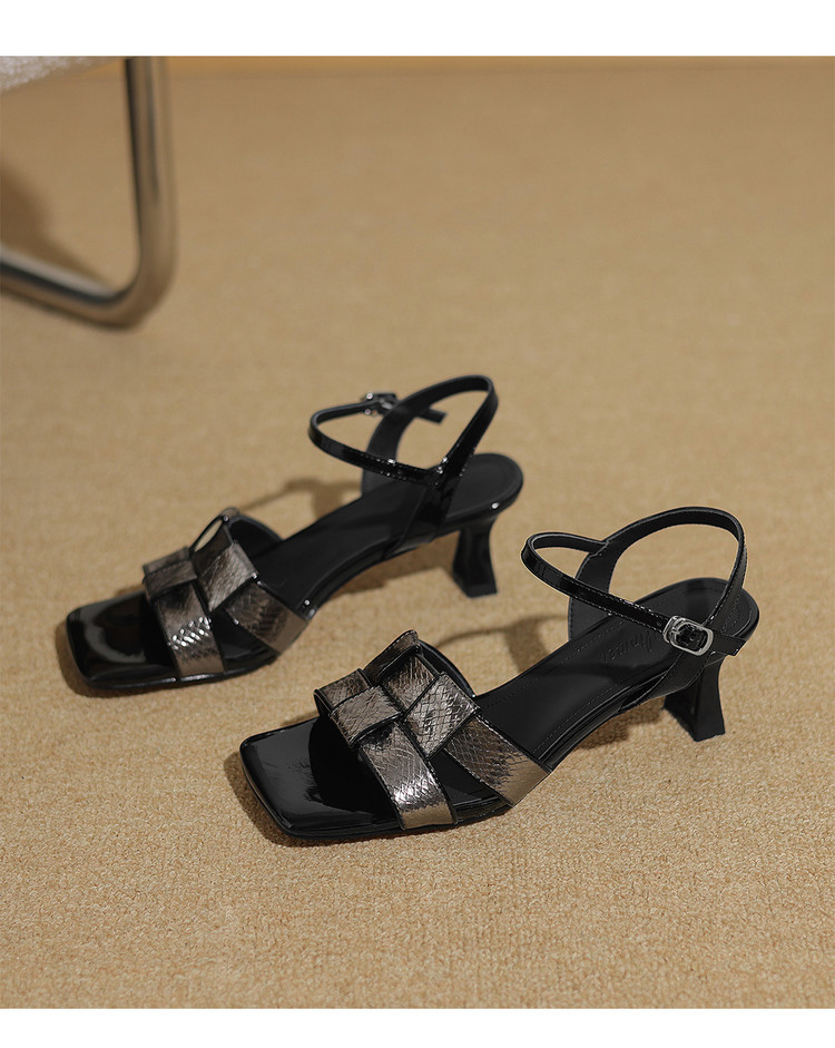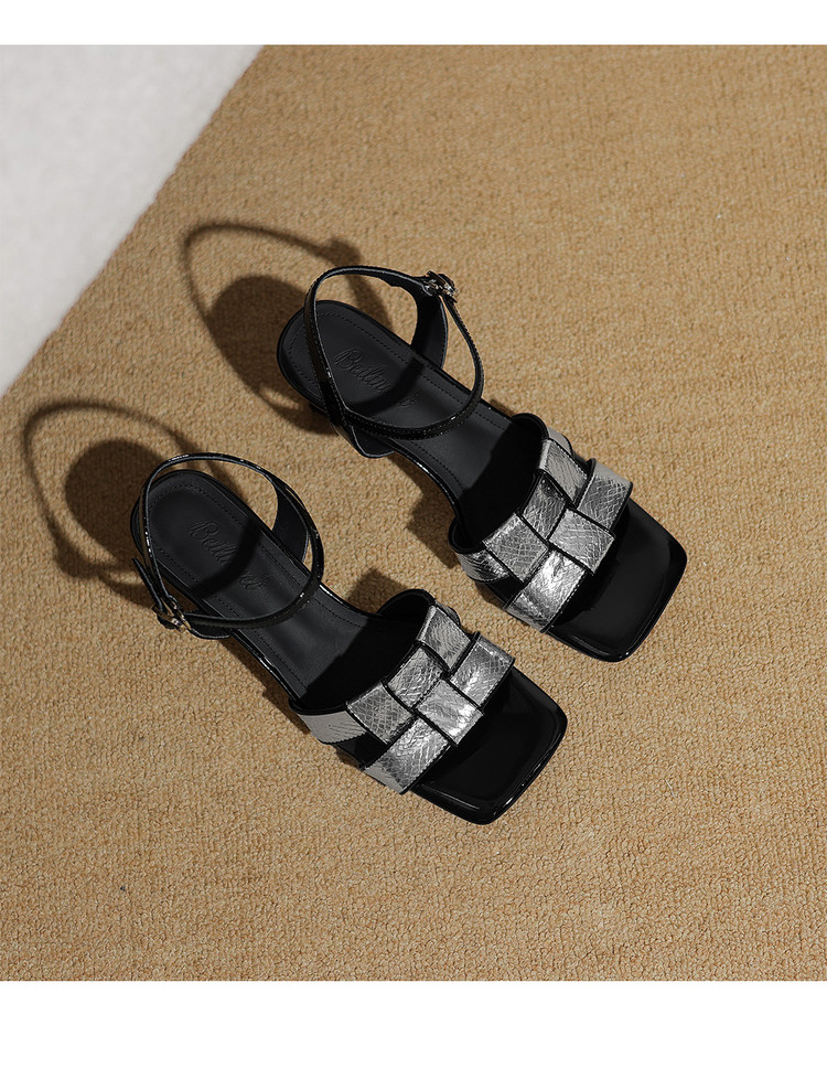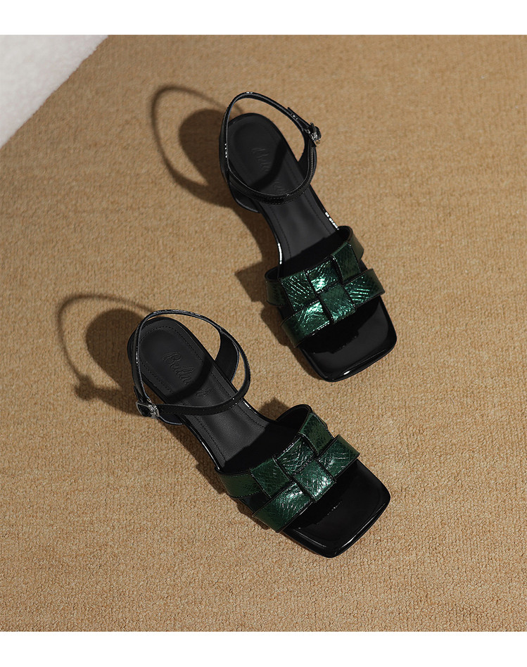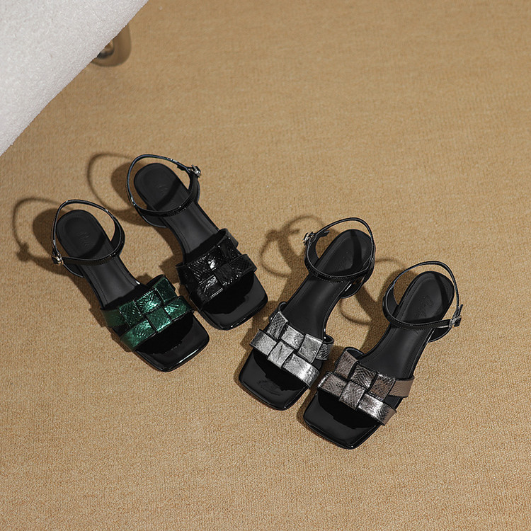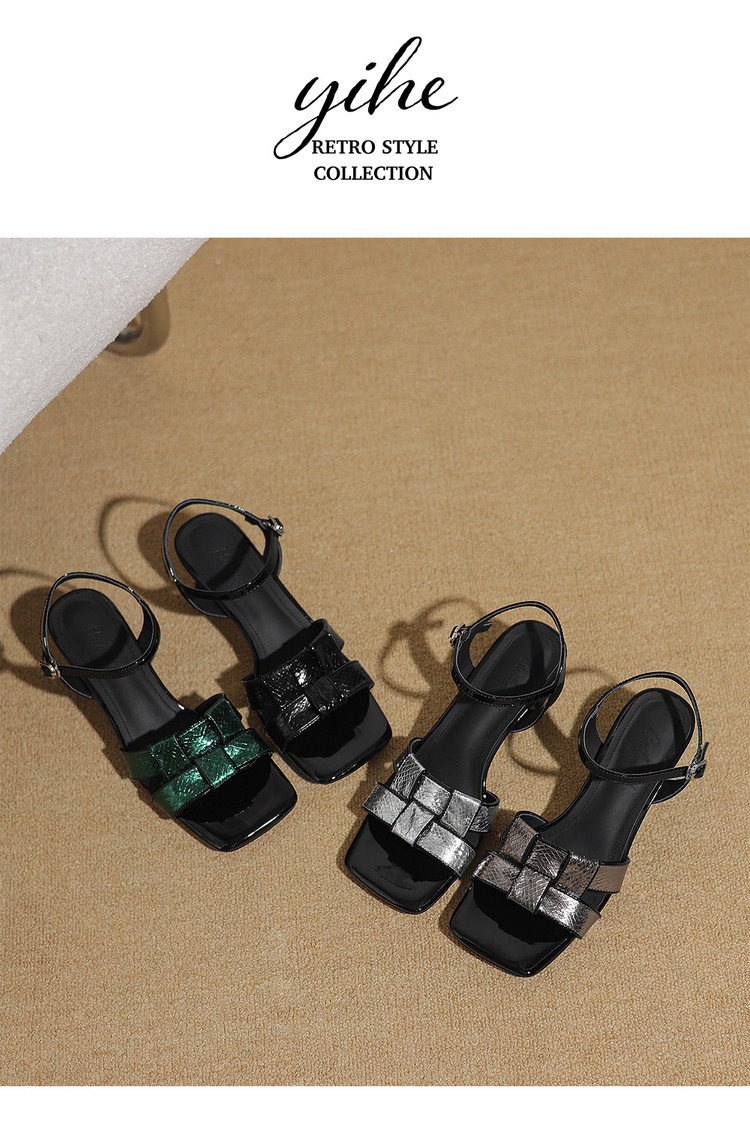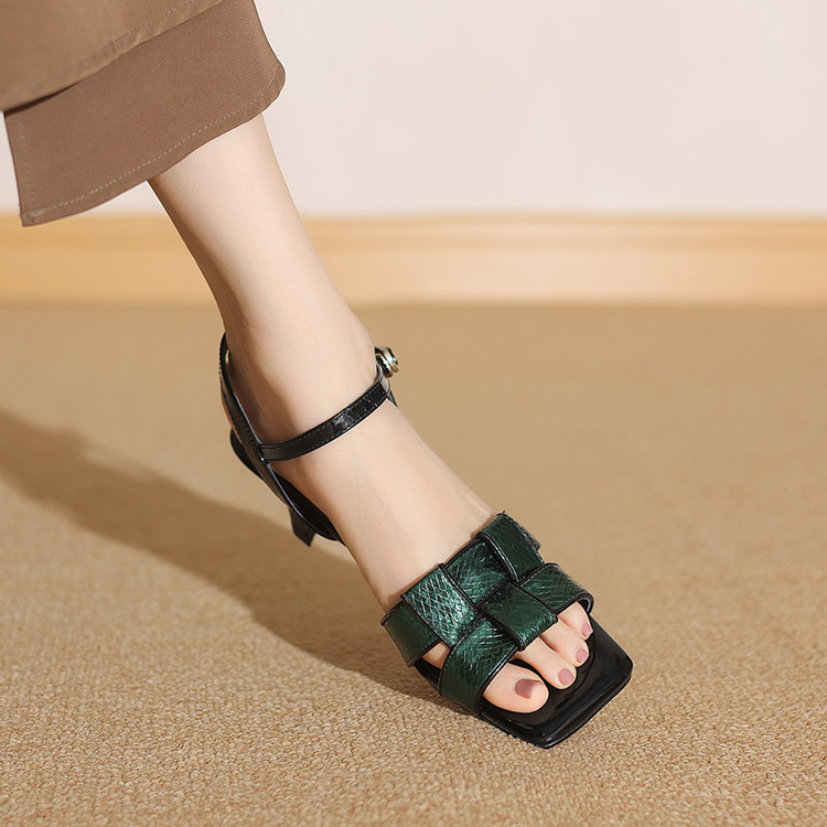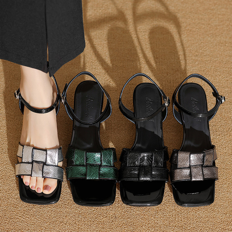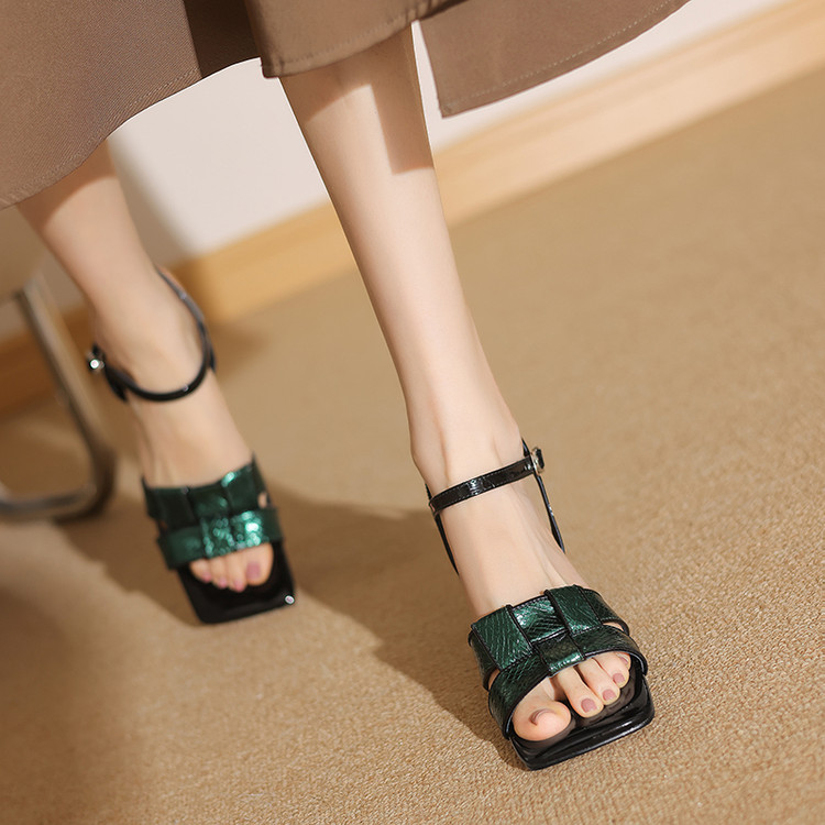【预售5天】法式气质编织凉鞋女夏季新款时尚外穿方头一字扣带罗马凉拖鞋ZF&25128