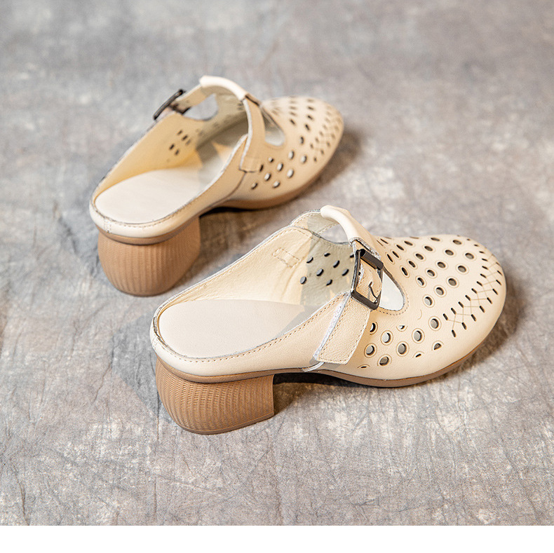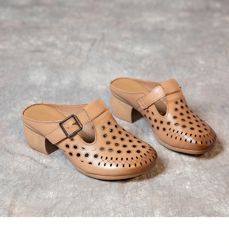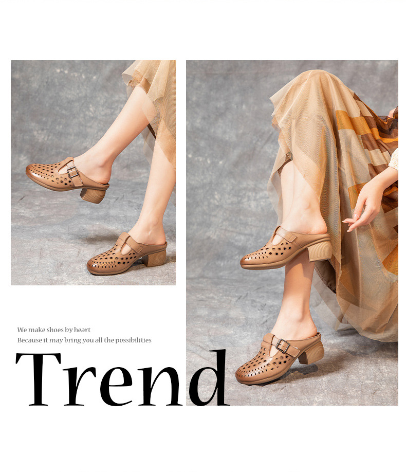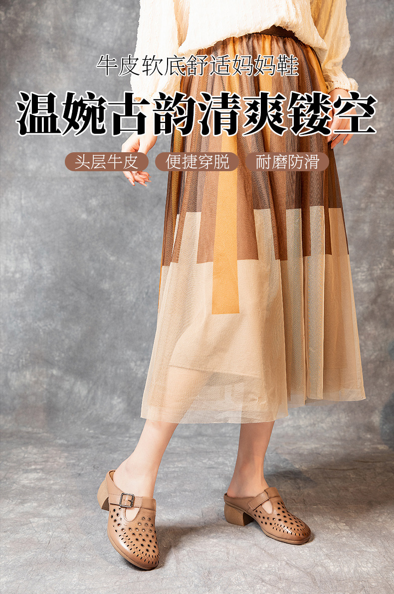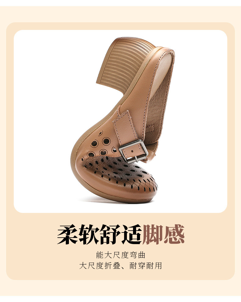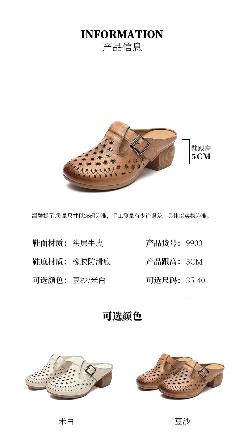 层牛皮妈妈凉拖鞋手工复古女式包头拖鞋MLD9903