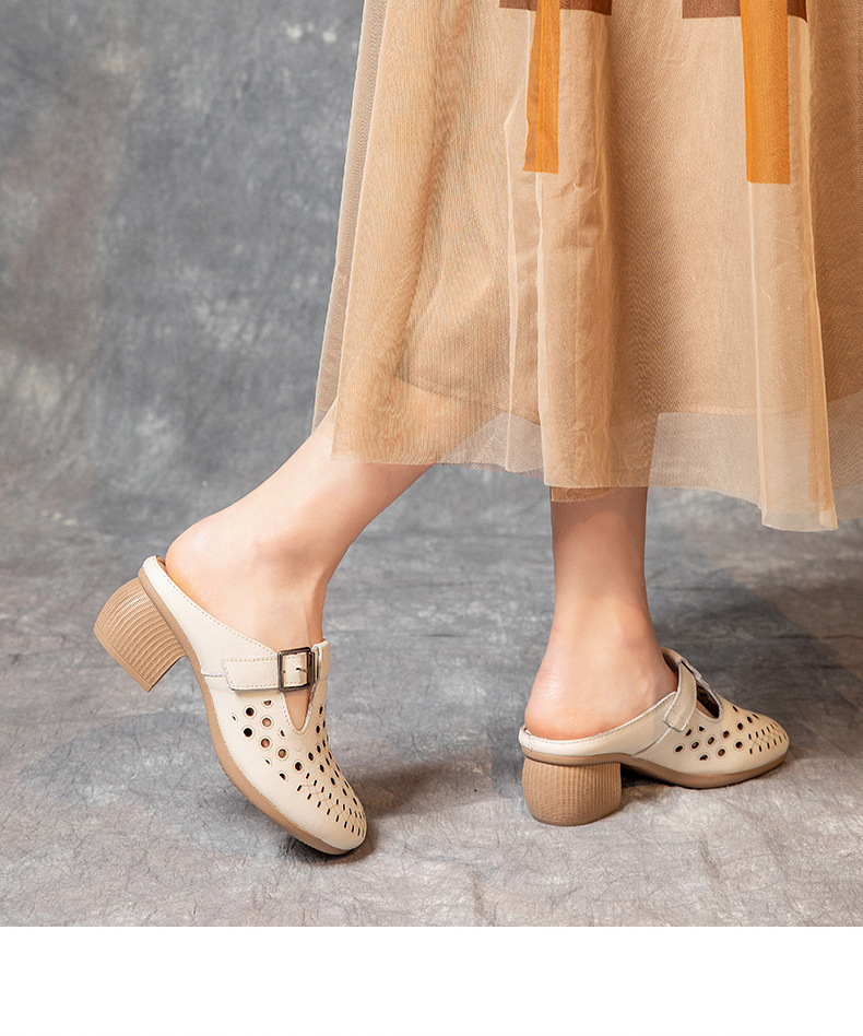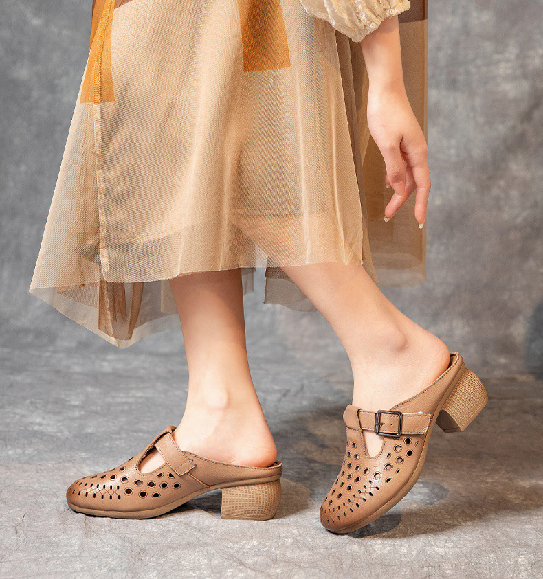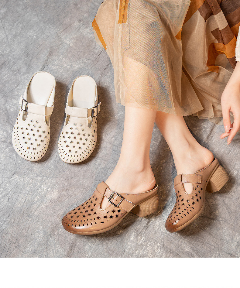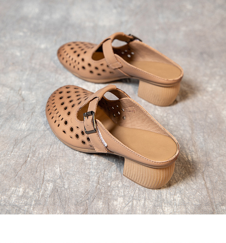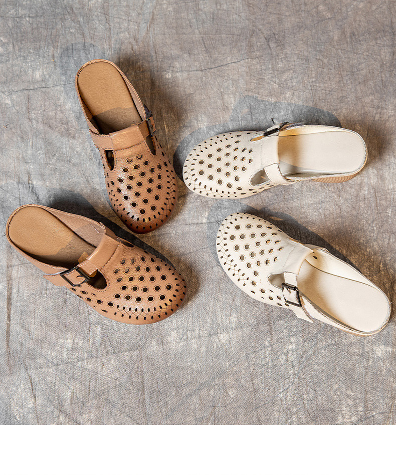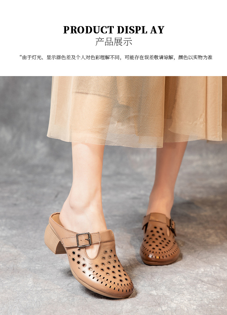 层牛皮妈妈凉拖鞋手工复古女式包头拖鞋MLD9903