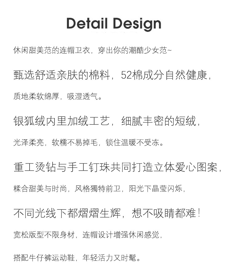 DD-秋冬新款欧货爱心钉珠连帽宽松减龄卫衣女