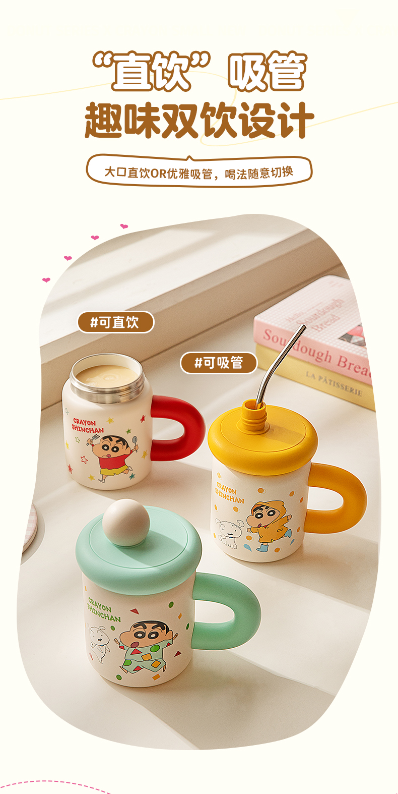 摩登主妇&蜡笔小新 带盖保温杯办公室水杯茶杯吸管杯子马克杯
