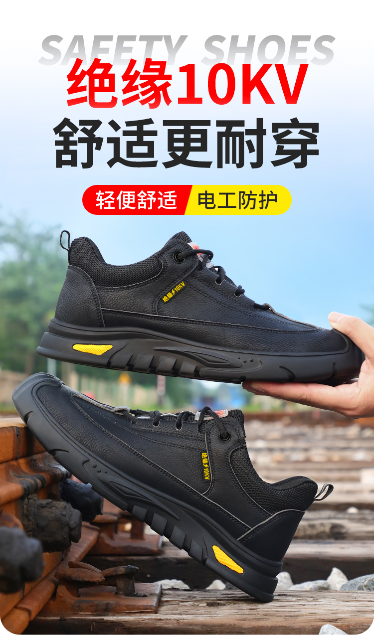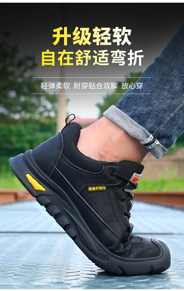 无包头无中底绝缘10KV黑色防水劳保鞋男工作鞋安全鞋橡胶底钢包头