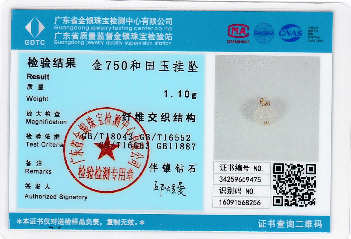 18k玫瑰金和田玉(白玉)吊坠