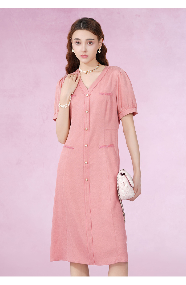 乔万尼真丝连衣裙桑蚕丝法式复古显瘦收腰气质ET2E307