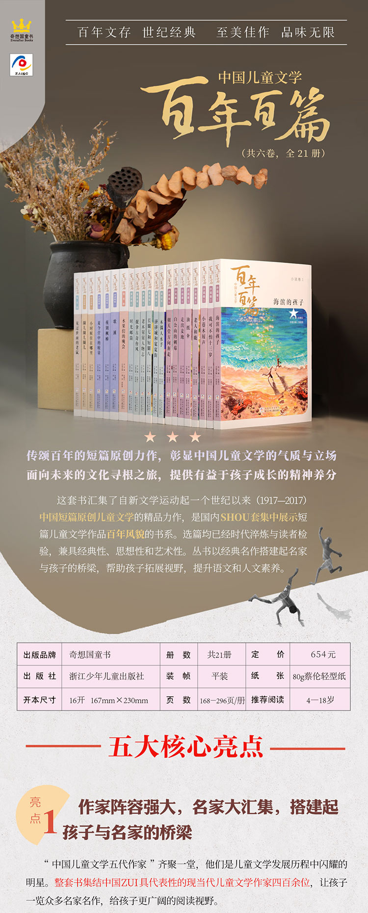 《中国儿童文学百年百篇》(全21册)史诗级规模,400+名作家集结,横跨一个世纪的儿童文学经典,小说、童话、诗歌、寓言全涵盖,鲁迅、茅盾、老舍、巴金、郭沫若、朱自清、林徽因……