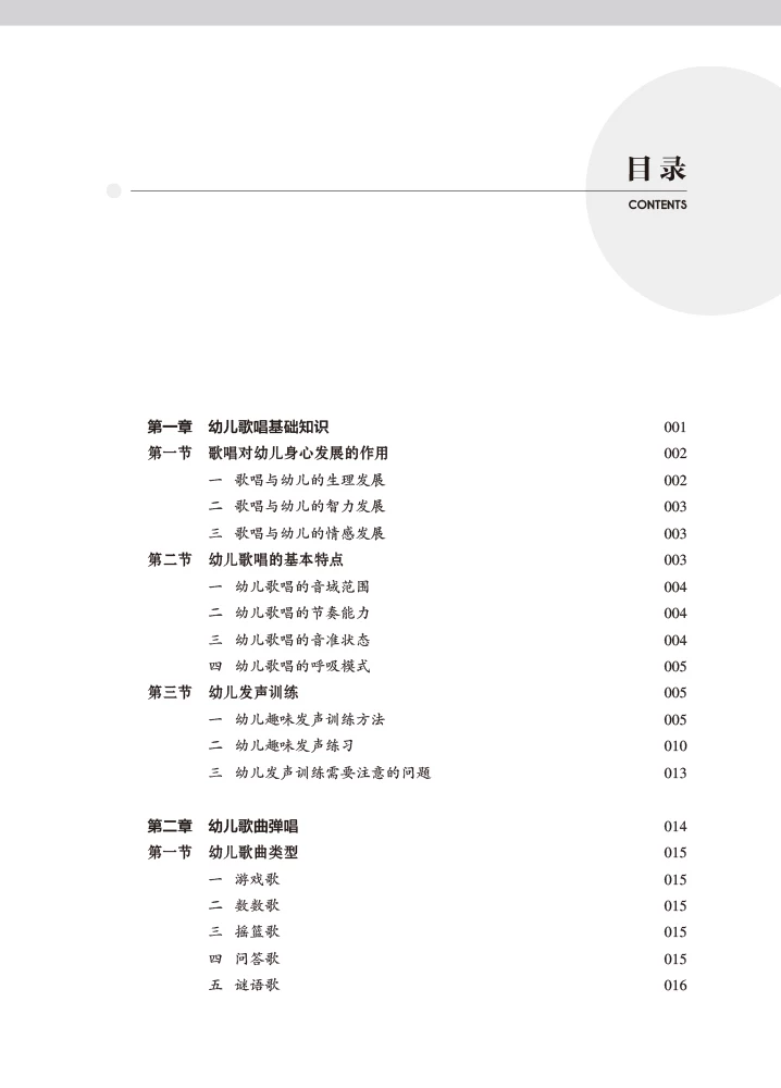 该教材是我社组织编写的“全国职业院校学前教育专业新形态规划教材”其中一册,本书遵循“三教改革”精神,编写中将幼儿歌曲的演唱、幼儿歌曲的弹奏及幼儿歌曲的活动设计及创编等音乐知识与技能教学进行了有机的融合,兼顾了教材内容的专业性、职业性、时代性及育人特性。作者团队为为湖北幼儿师范高等专科学校音乐系老师,主编是音乐教研室主任、副教授赵晖。 教材分为理论和实践两大部分,共六个章节。前三个章节为理论部分,分别对幼儿歌唱的基础知识、幼儿歌曲的弹唱、幼儿歌曲的活动方案等进行了详细的介绍及阐述,为实践部分提供了充足的理论支持。第四至六章节为实践部分,共选择了六十首幼儿歌曲,歌曲按小班、中班、大班三个年龄阶段幼儿的特点进行了程度分类。小班的歌曲有《玛丽有只小羔羊》《小星星》《勾勾手》《小雨沙沙》等二十首;中班的歌曲有《静夜思》《洋娃娃和小熊跳舞》《国旗多美丽》等二十首;大班的歌曲有《小小的船》《铃儿响叮当》《剪羊毛》等二十首。每首歌曲都由歌曲简析、演唱提示、弹奏提示、活动设计四个模块构成,并配备了音频或视频供学习者参考。其中,活动设计模块是本教材的一大特色,活动设计模块不仅包含文字内容,还有更为直接的视频内容。 |