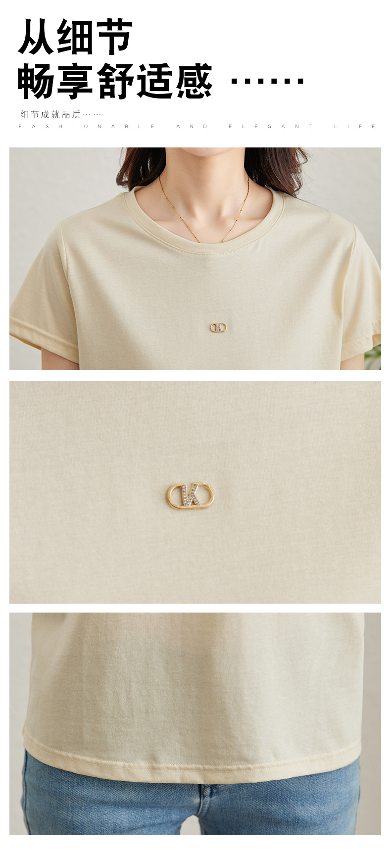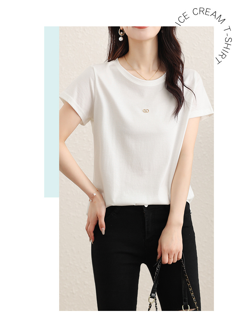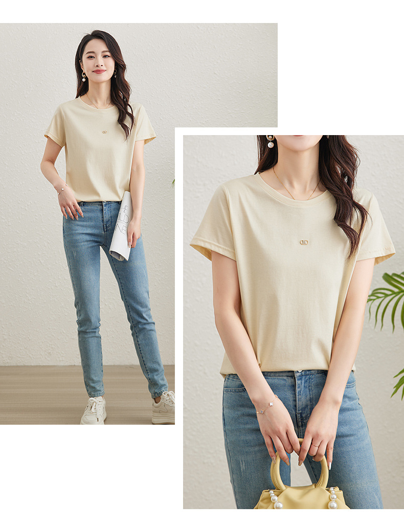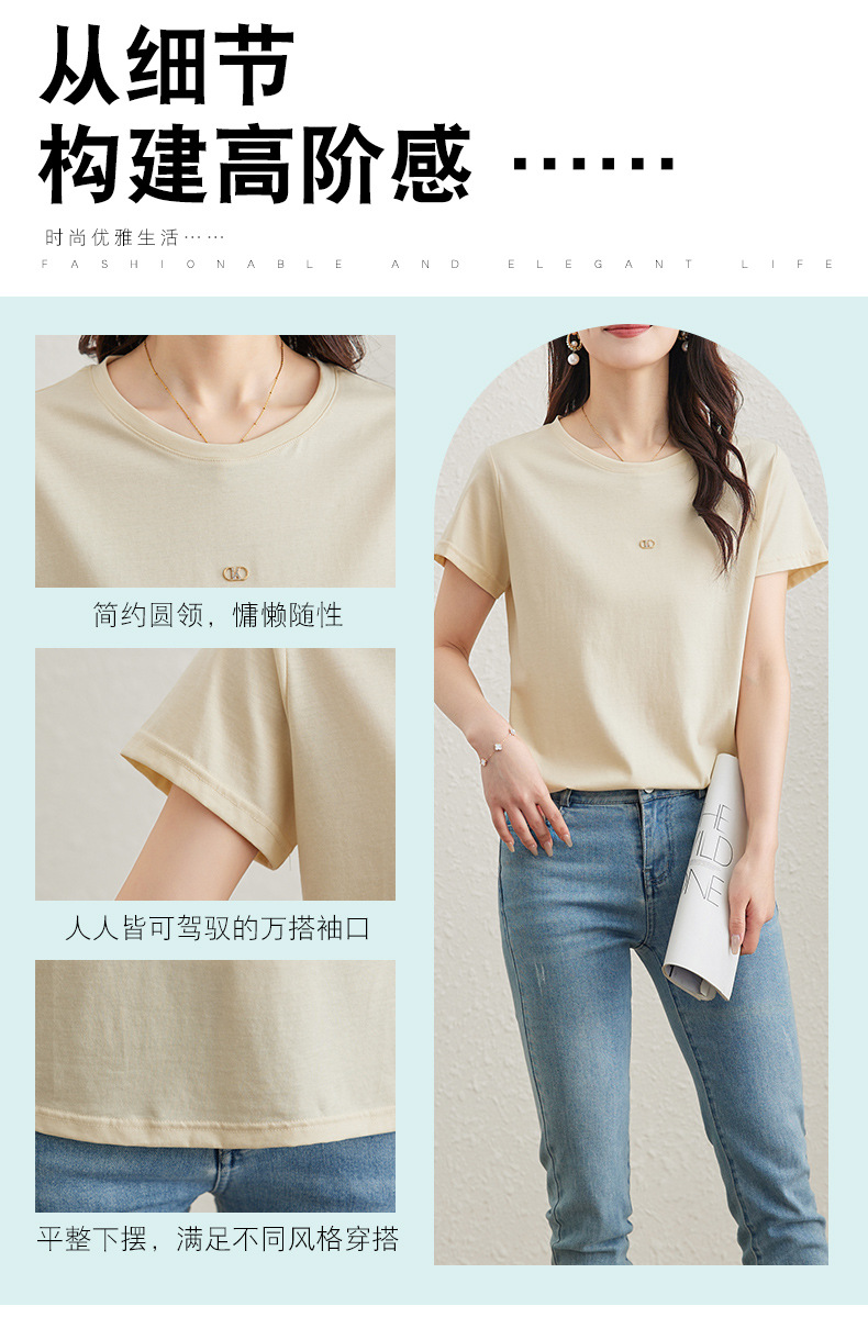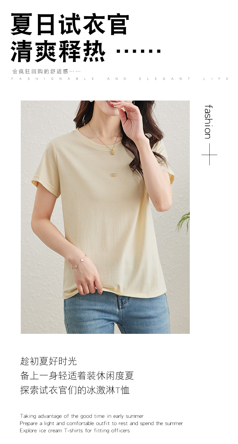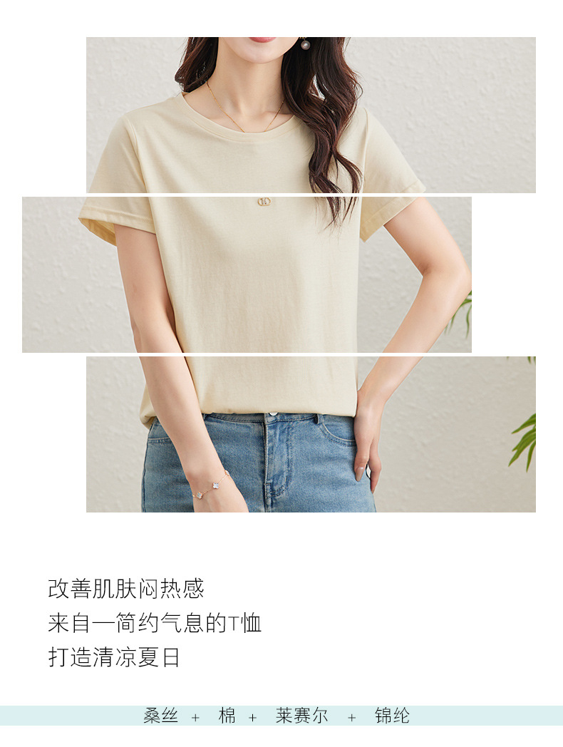TC 85602桑蚕丝短袖t恤打底衫纯色短袖显瘦上衣 商品图3