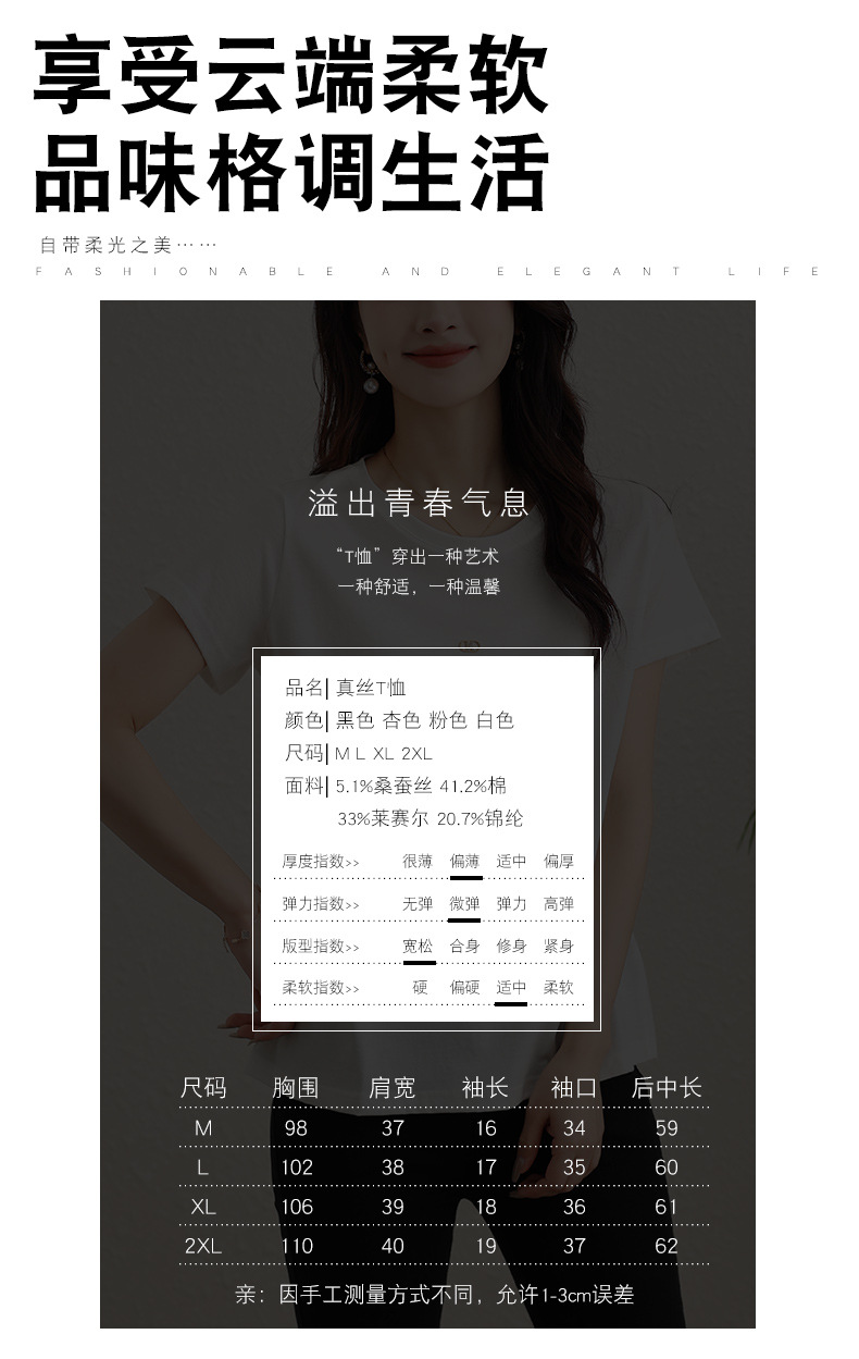 TC 85602桑蚕丝短袖t恤打底衫纯色短袖显瘦上衣 商品缩略图0 TC 85602桑蚕丝短袖t恤打底衫纯色短袖显瘦上衣 商品缩略图1 TC 85602桑蚕丝短袖t恤打底衫纯色短袖显瘦上衣 商品缩略图2 TC 85602桑蚕丝短袖t恤打底衫纯色短袖显瘦上衣 商品缩略图3 TC 85602桑蚕丝短袖t恤打底衫纯色短袖显瘦上衣 商品缩略图4