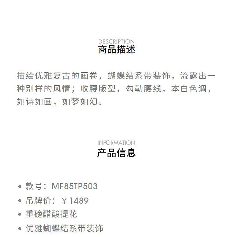 松弛感廓形醋酸提花上衣贵雅精致穿搭百搭通勤(货号:MF85TP503A1001)