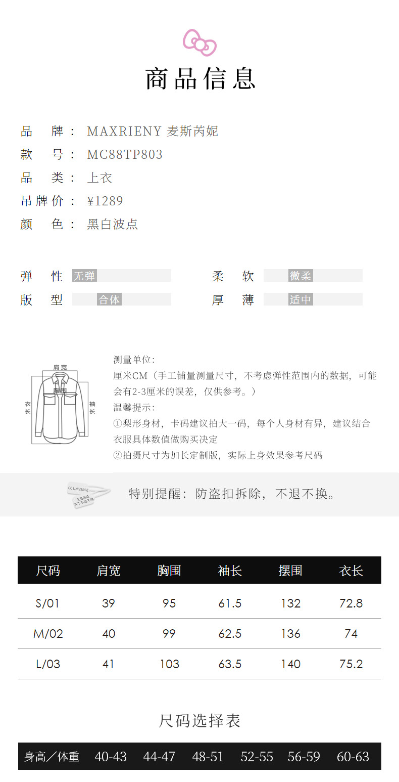 【MAXRIENY x Hello Kitty联名系列】波点印花衬衫2023冬(货号:MC88TP803)