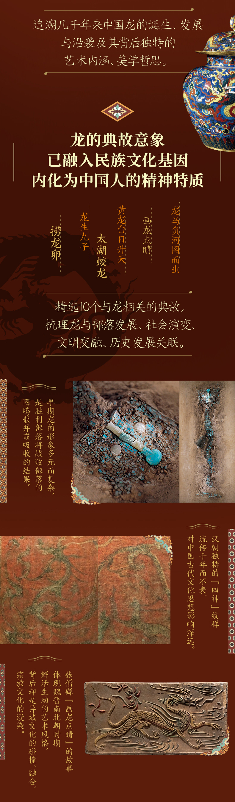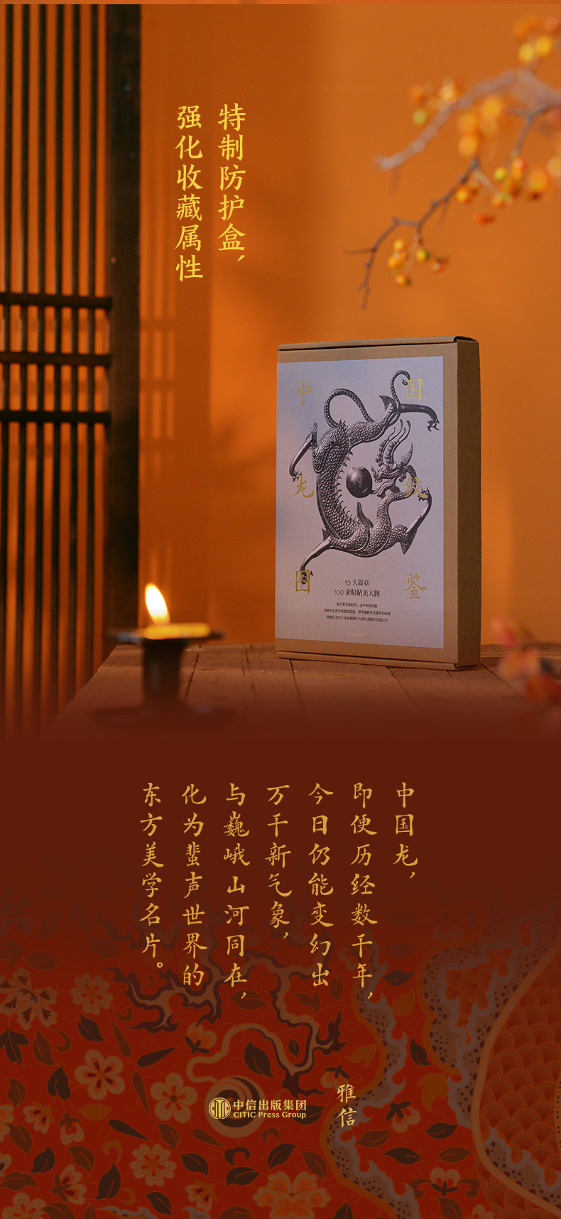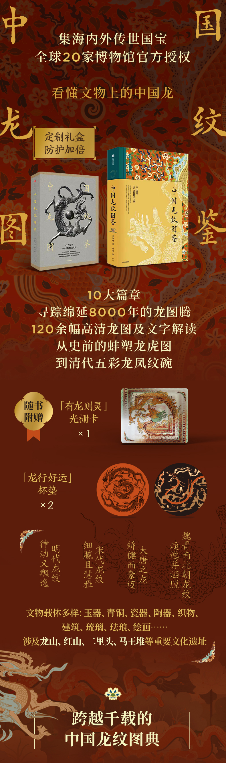 《中国龙纹图鉴》。 随书附赠1款“有龙则灵”光栅卡和2款“龙行好运”杯垫