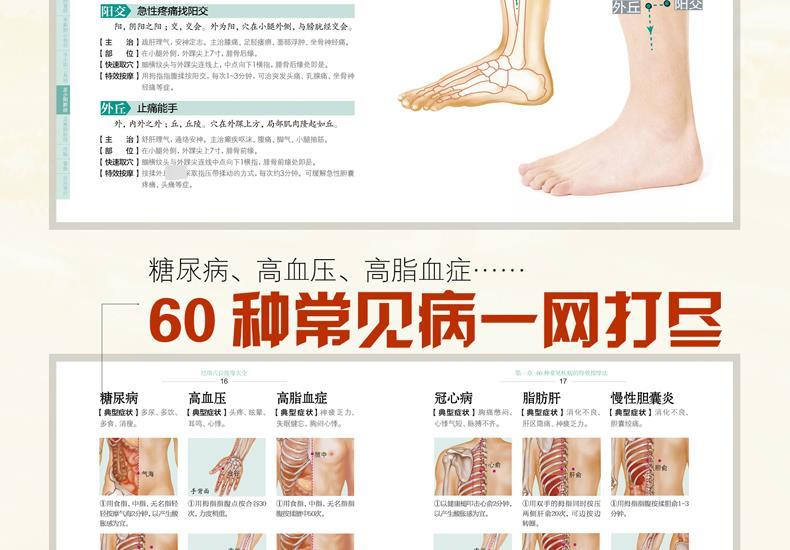 《经络穴位按摩大全》完整收录全身409个人体大穴,一穴双图,不出错的找穴法,三秒钟让你化身按摩达人。 集中介绍60种常见病症的按摩手法,一病多穴,全面激发身体优抵抗力。 像“按摩内关穴”这样持简单、持有效的10个穴位按摩,随时随地就能强壮五脏。 改善八大偏颇体质的30个人体大药,如关元穴、太溪穴、复溜穴、太渊穴、编历穴、三阴交穴,委中穴、膻中穴、神阑穴、太白穴、肾俞穴、肝俞穴、胃俞穴、睥俞穴、足三里穴……