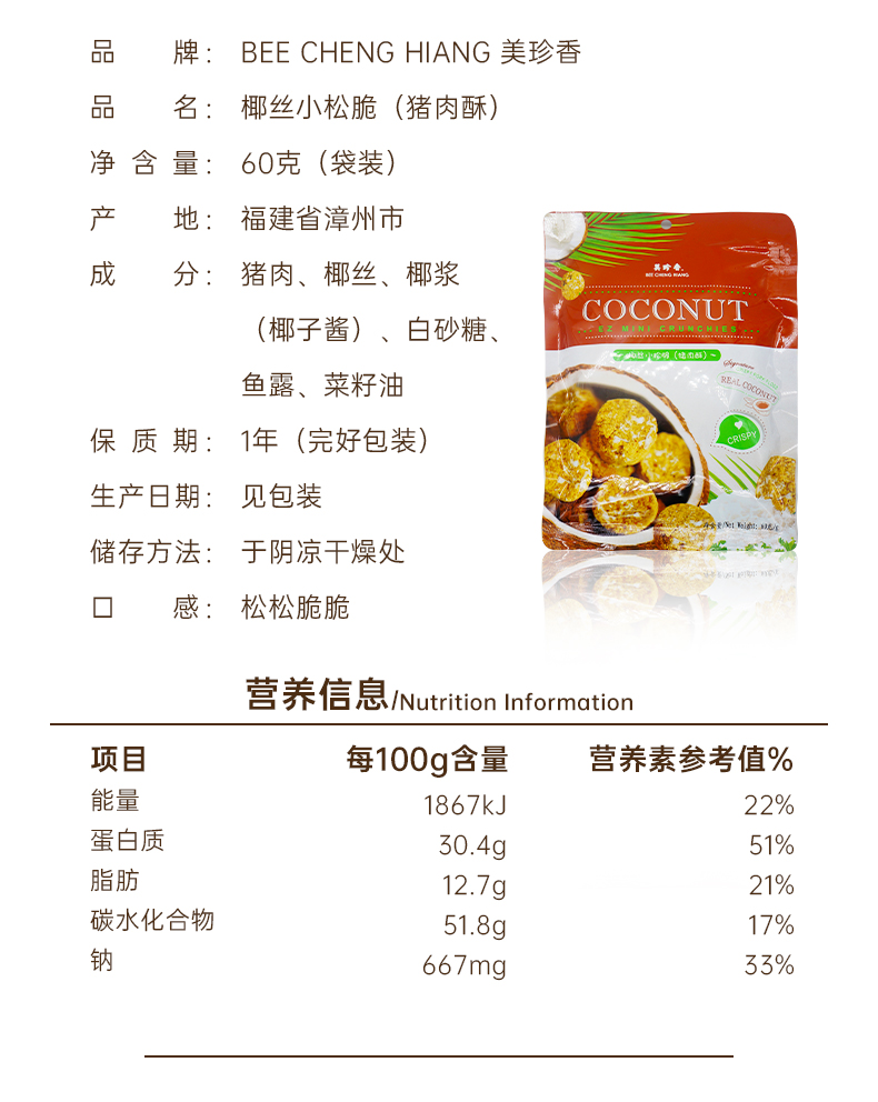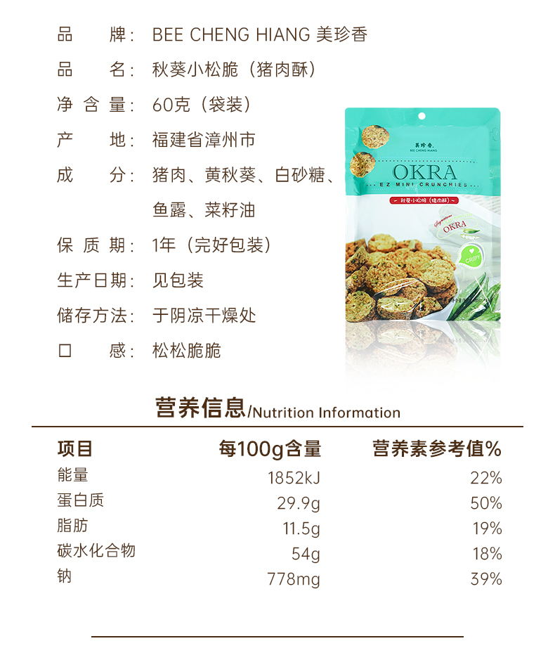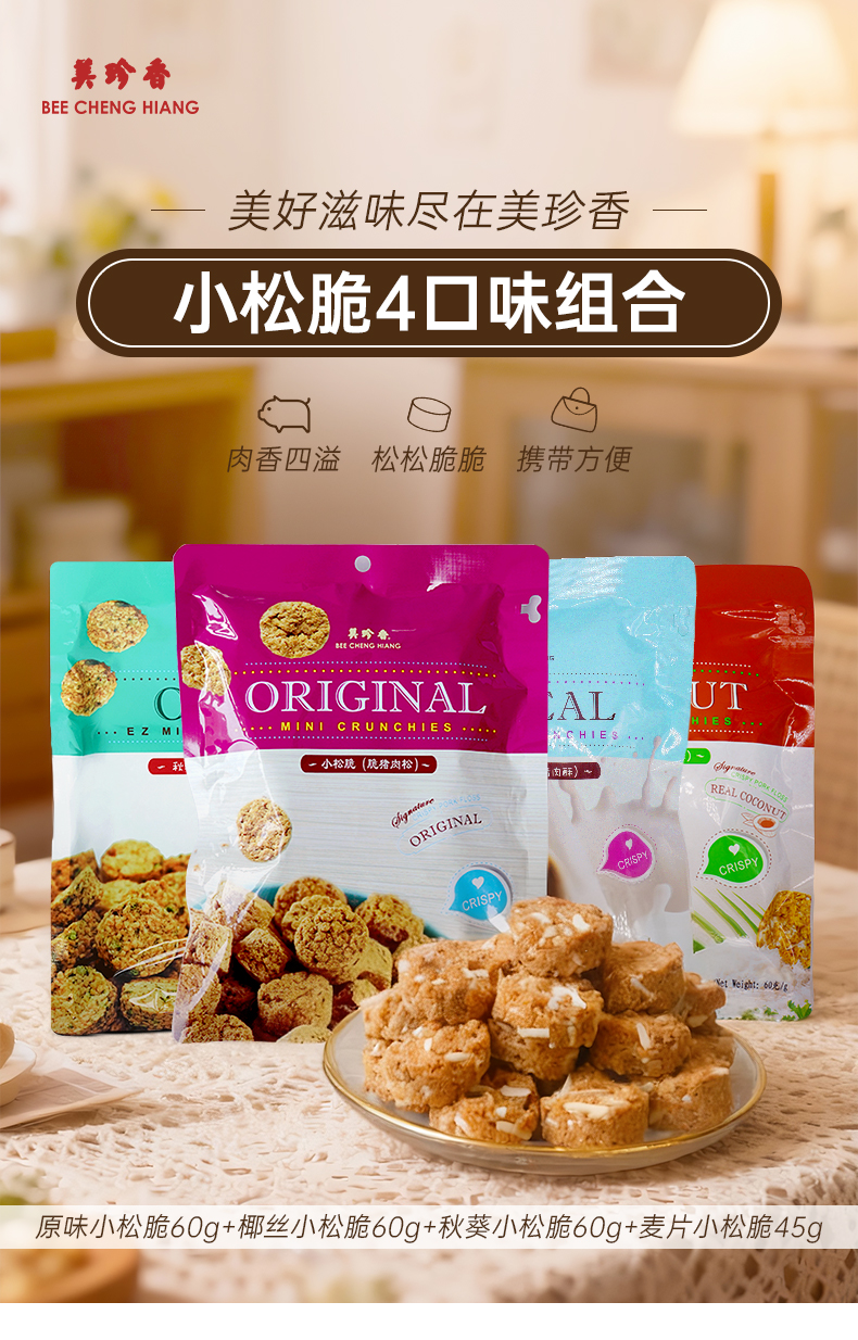 【组合】美珍香 小松脆60g+椰丝小松脆60g+麦片小松脆45g+秋葵小松脆60g组合