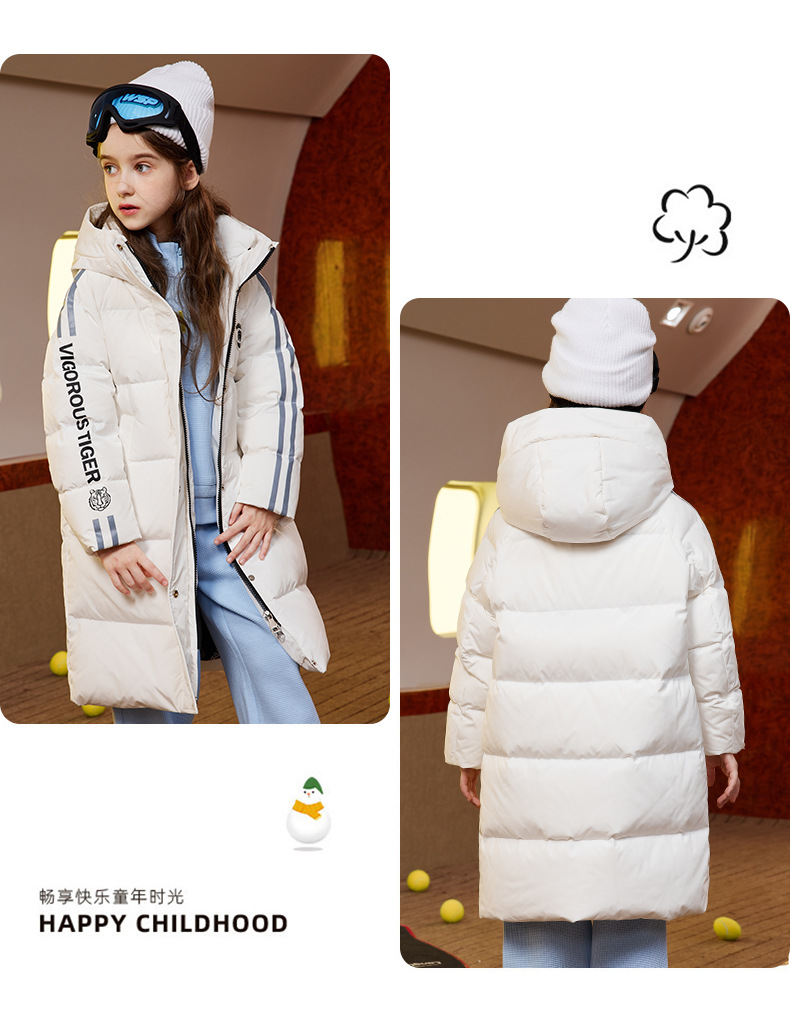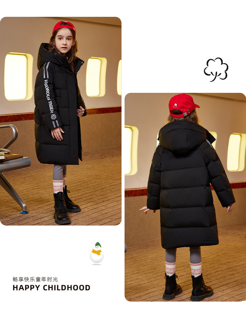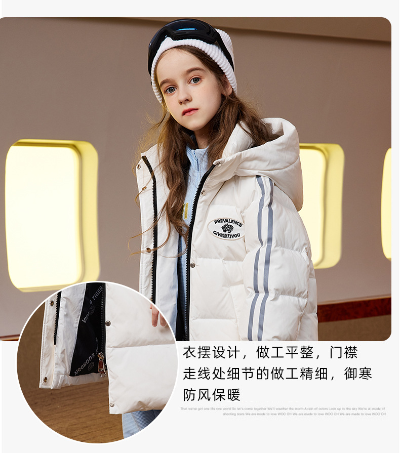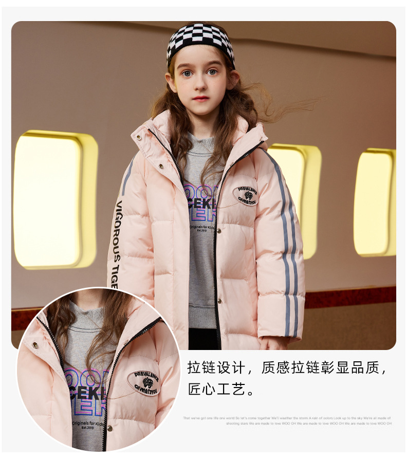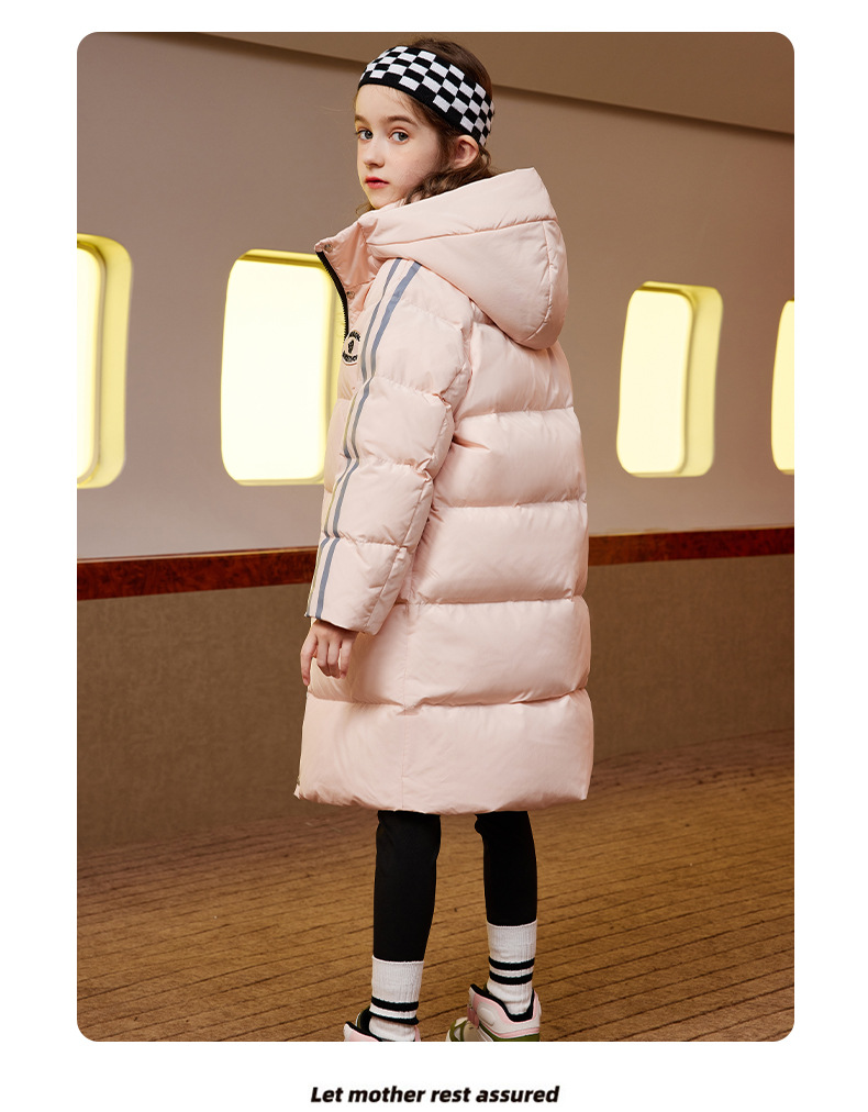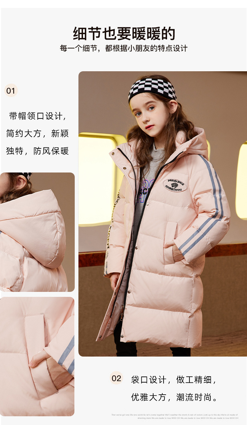 XBB-9565鸭鸭儿童羽绒服新款连帽男童女童中长款中大童加厚保暖冬季外套