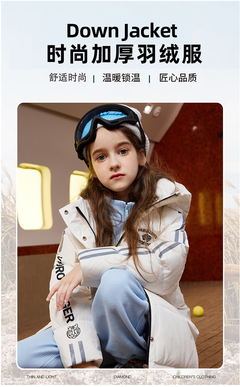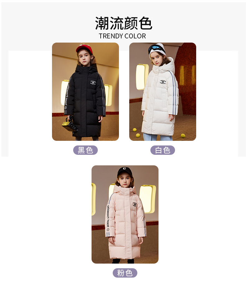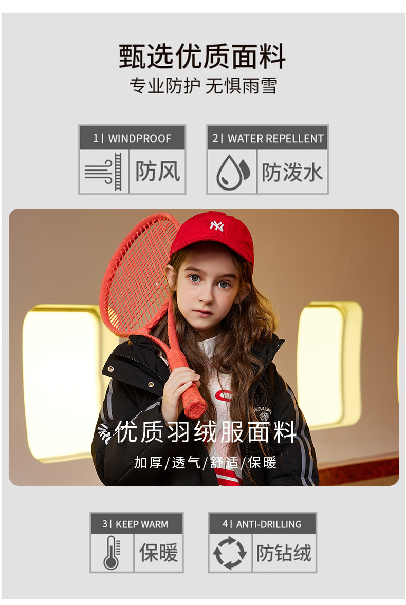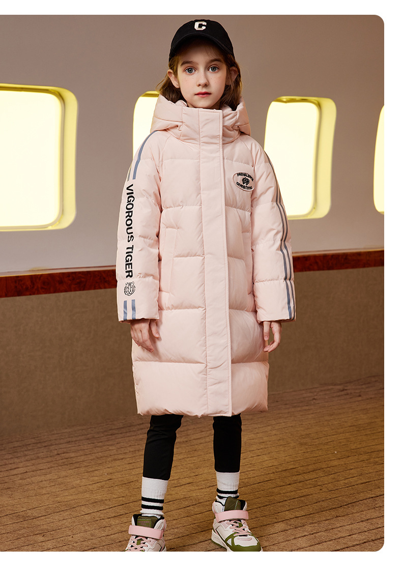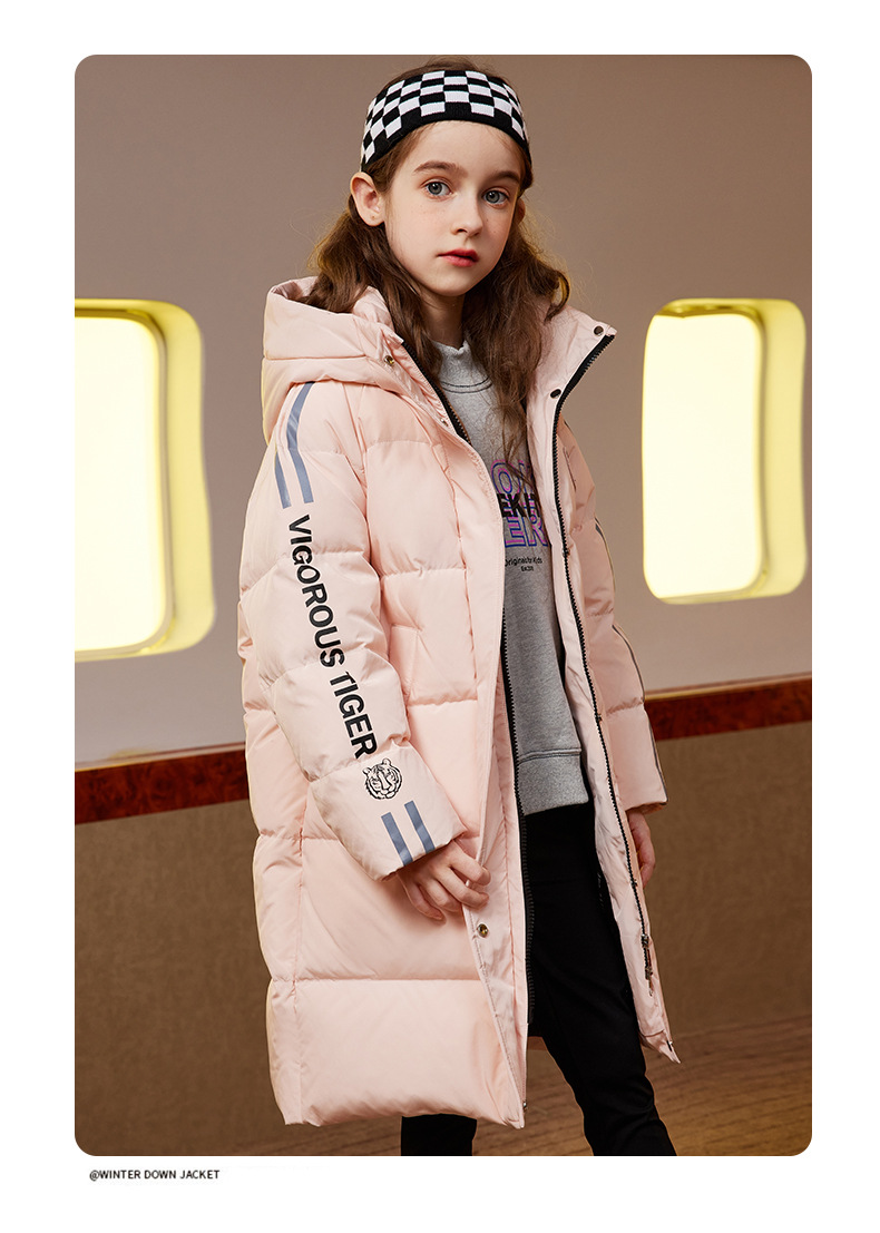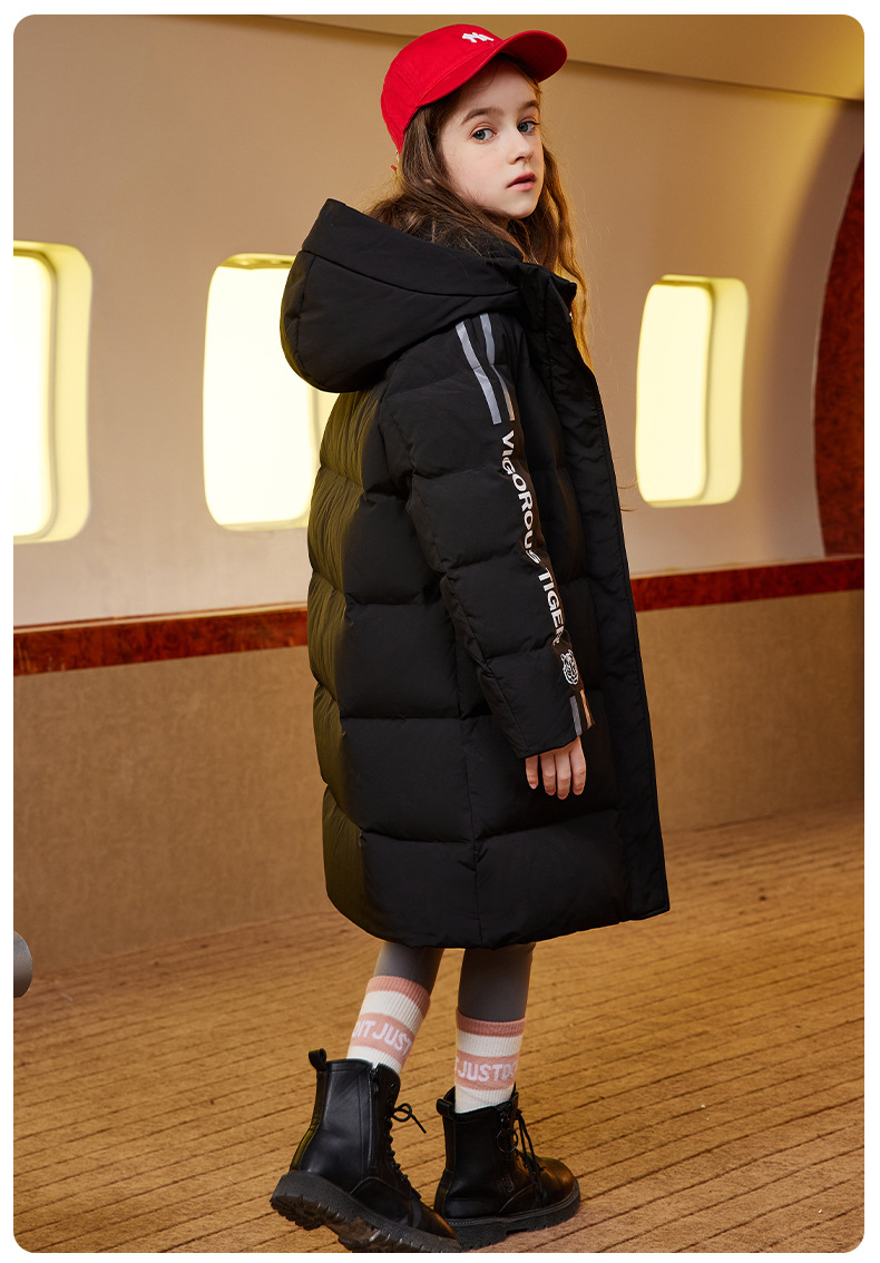 XBB-9565鸭鸭儿童羽绒服新款连帽男童女童中长款中大童加厚保暖冬季外套
