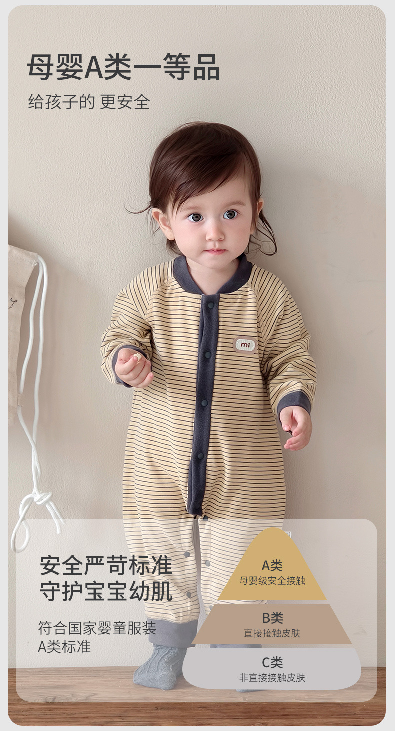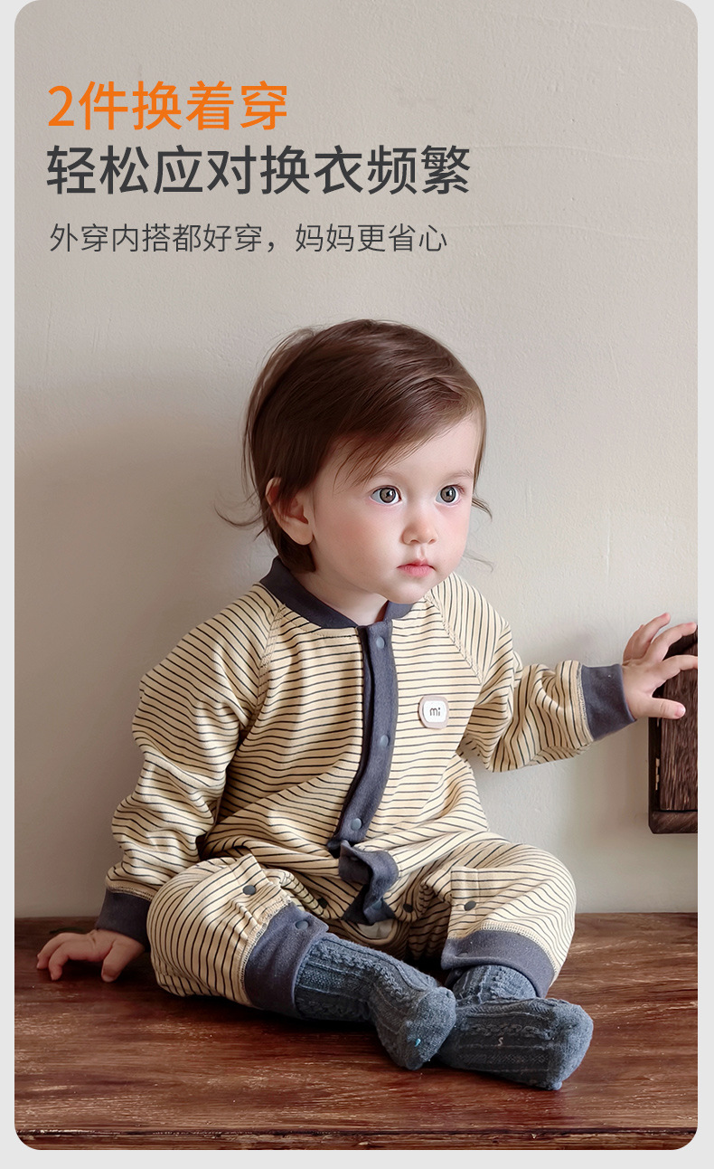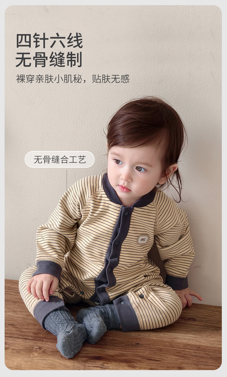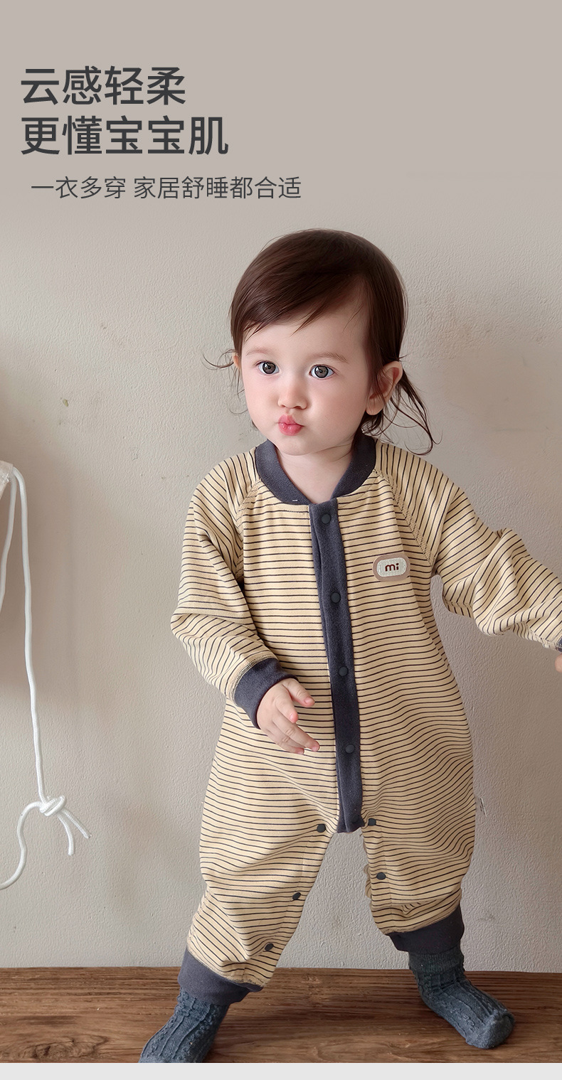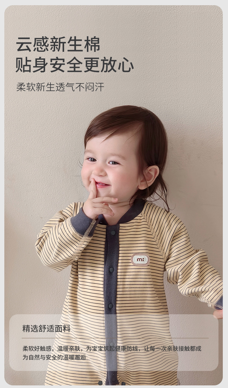 【无骨绵柔!云朵般软糯呵护保暖】秋冬婴儿打底连体衣宝宝长袖哈衣春季无骨爬服初生儿条纹外出服。hb