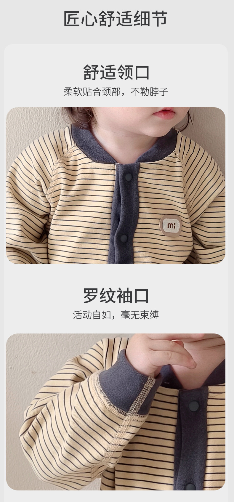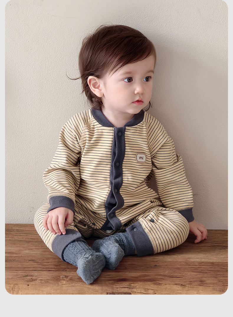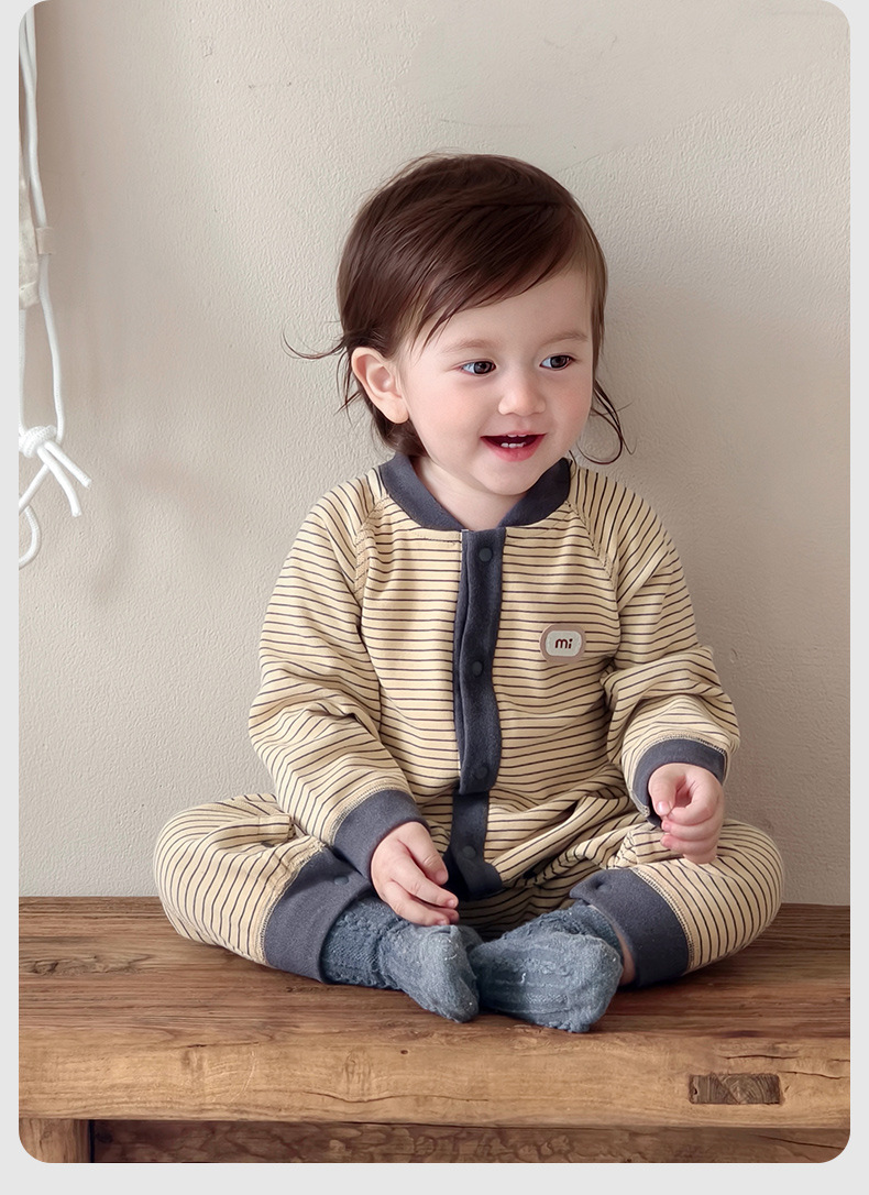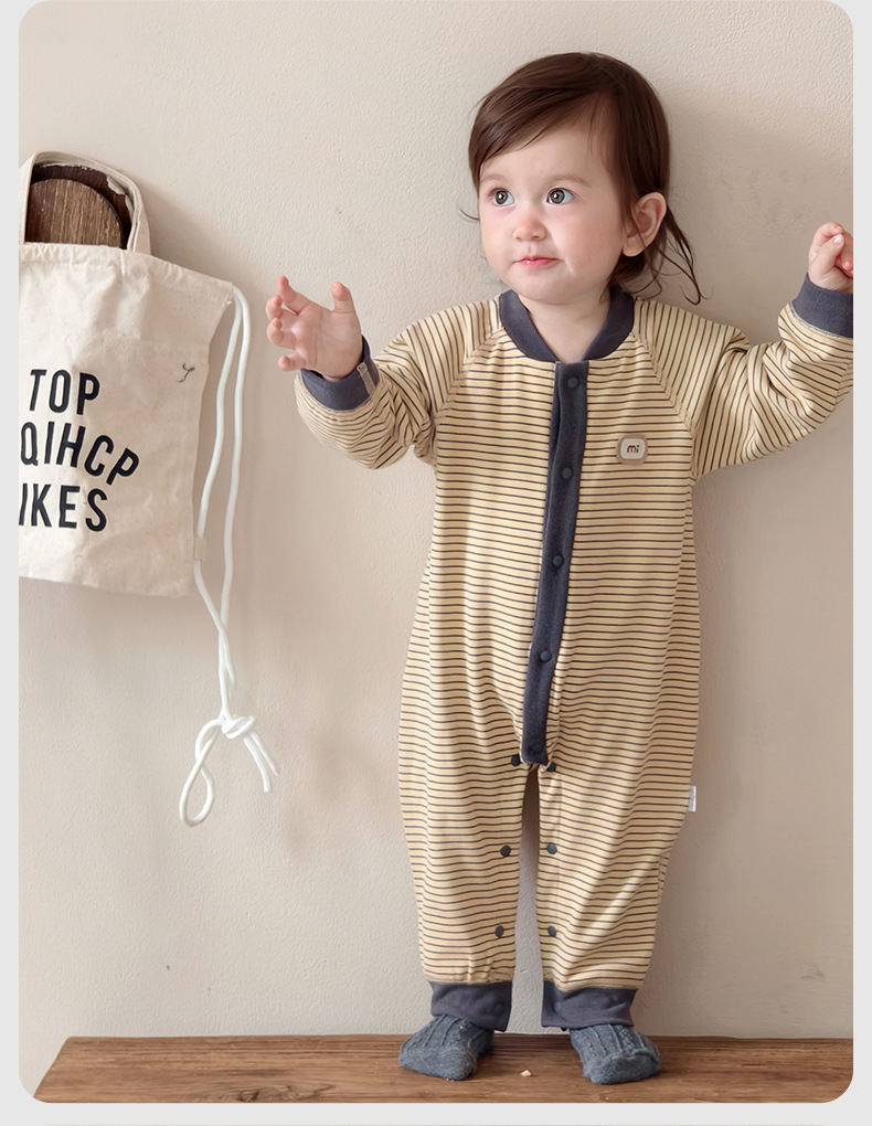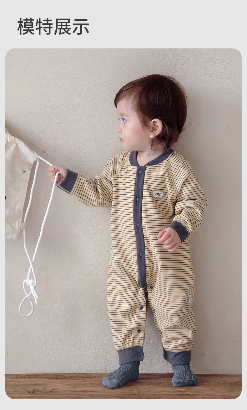 【无骨绵柔!云朵般软糯呵护保暖】秋冬婴儿打底连体衣宝宝长袖哈衣春季无骨爬服初生儿条纹外出服。hb