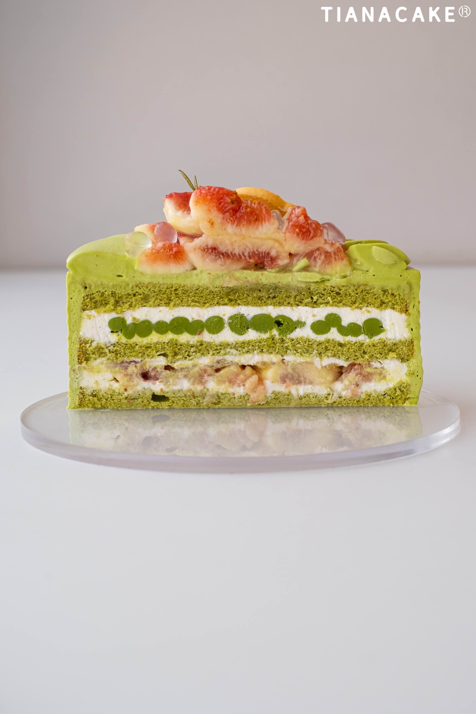 抹茶蛋糕胚|抹茶奶油|手煮无花果酱|抹茶甘那许|新鲜无花果