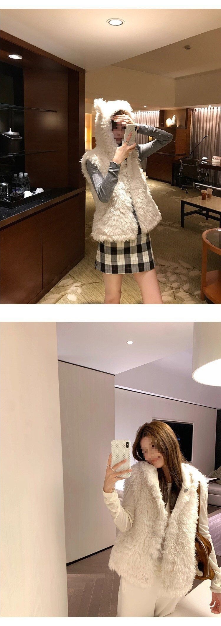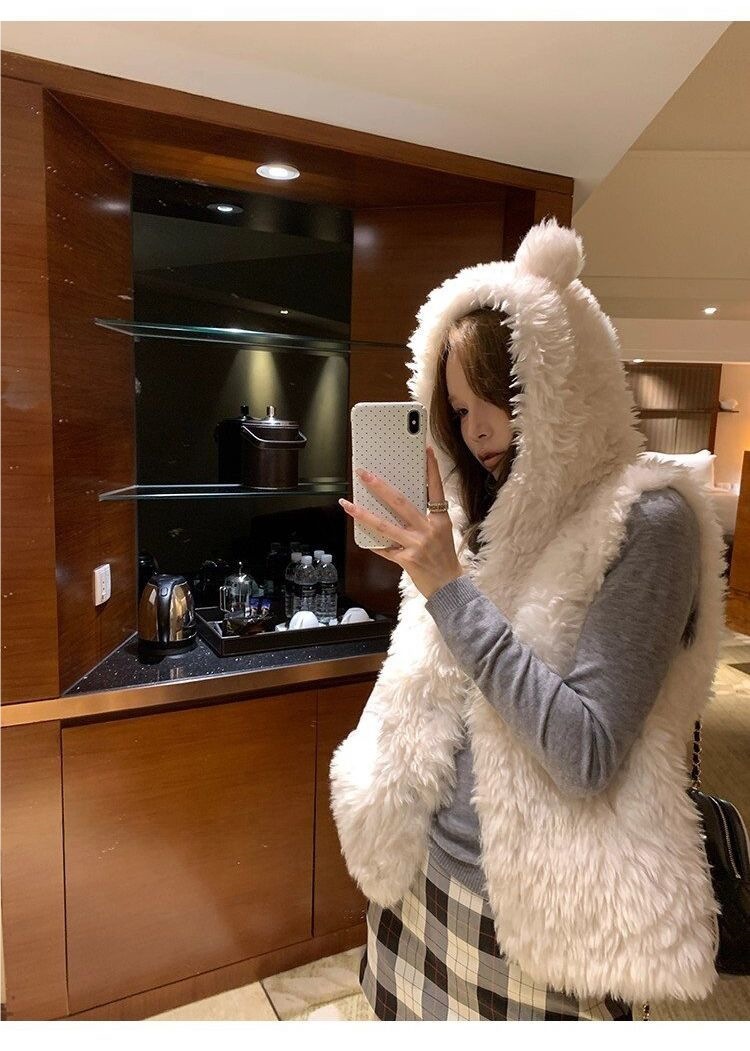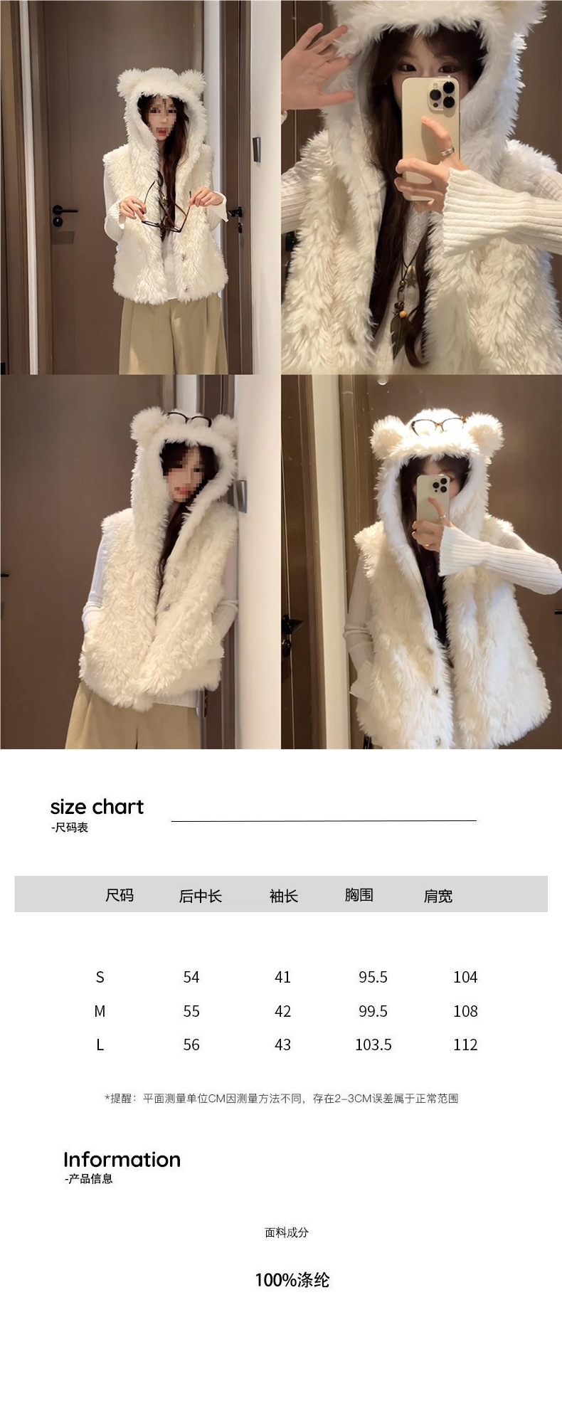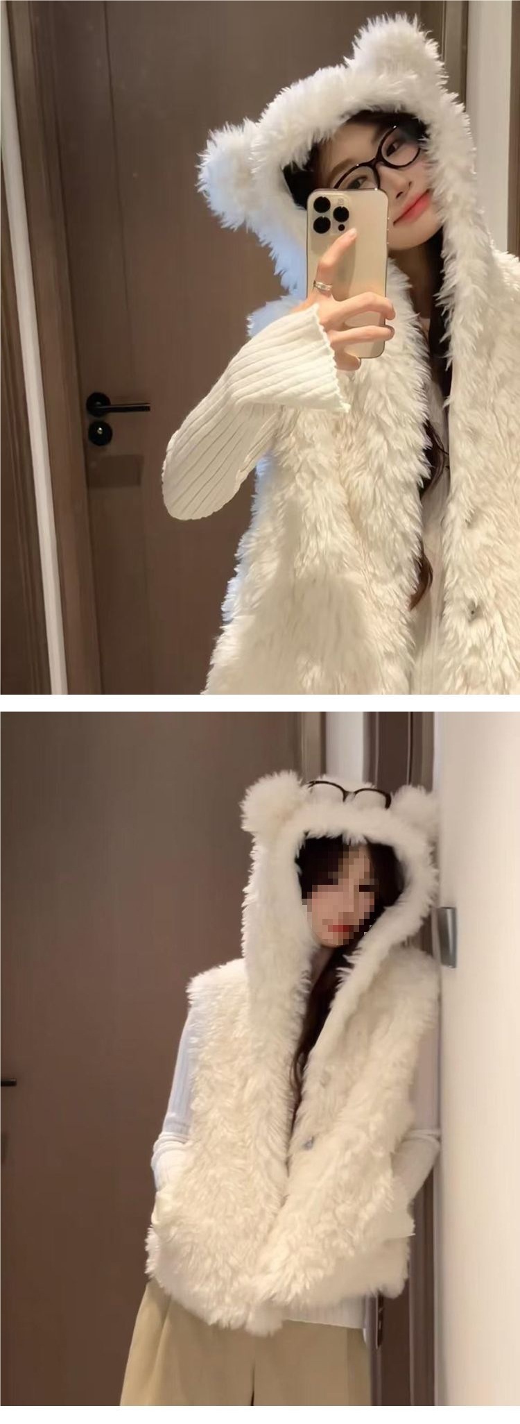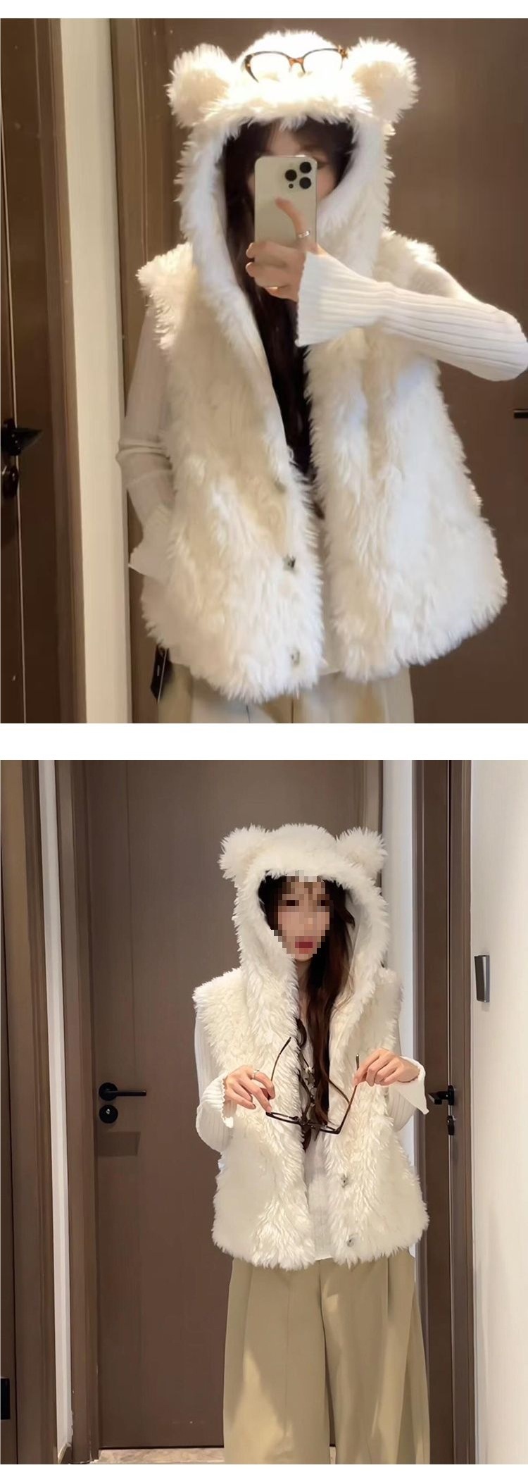 【减龄可爱百搭❗️柔软包裹感】2025秋冬季新款羊羔毛马甲女小熊连帽坎肩小个子甜美可爱外套背心。jb