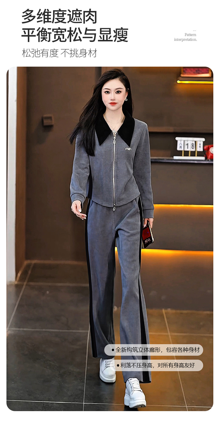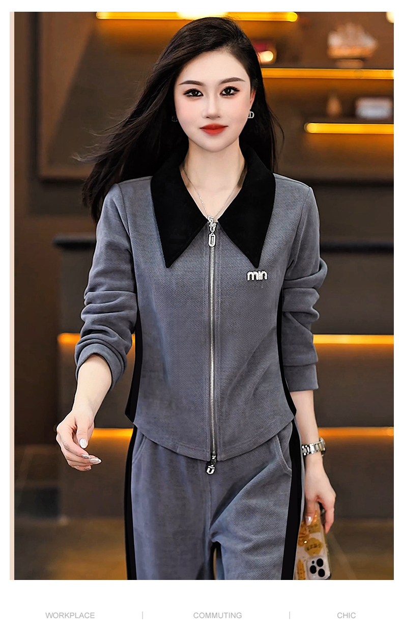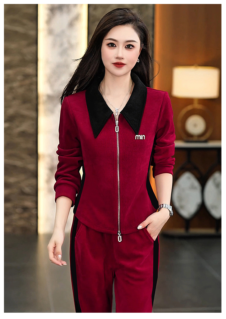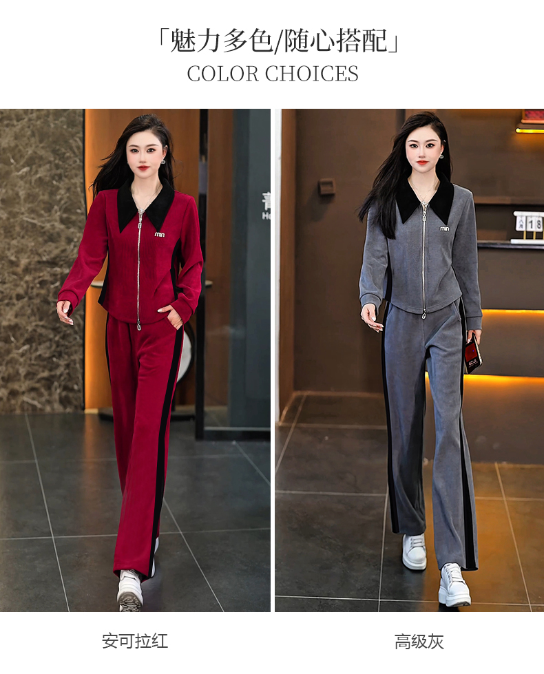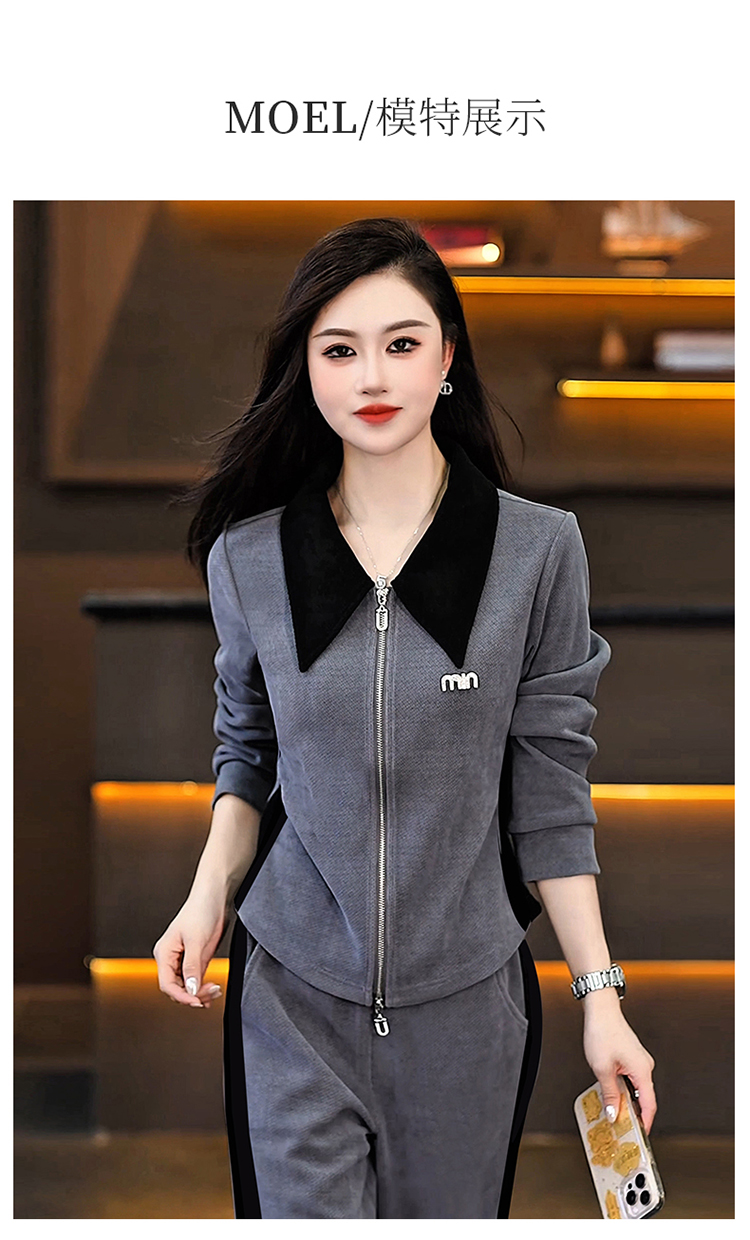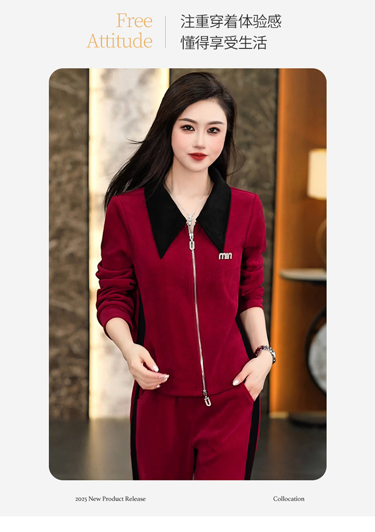 SP70-8527 2025春秋新款女款运动休闲套装POLO领长袖透气修身弹力两件套
