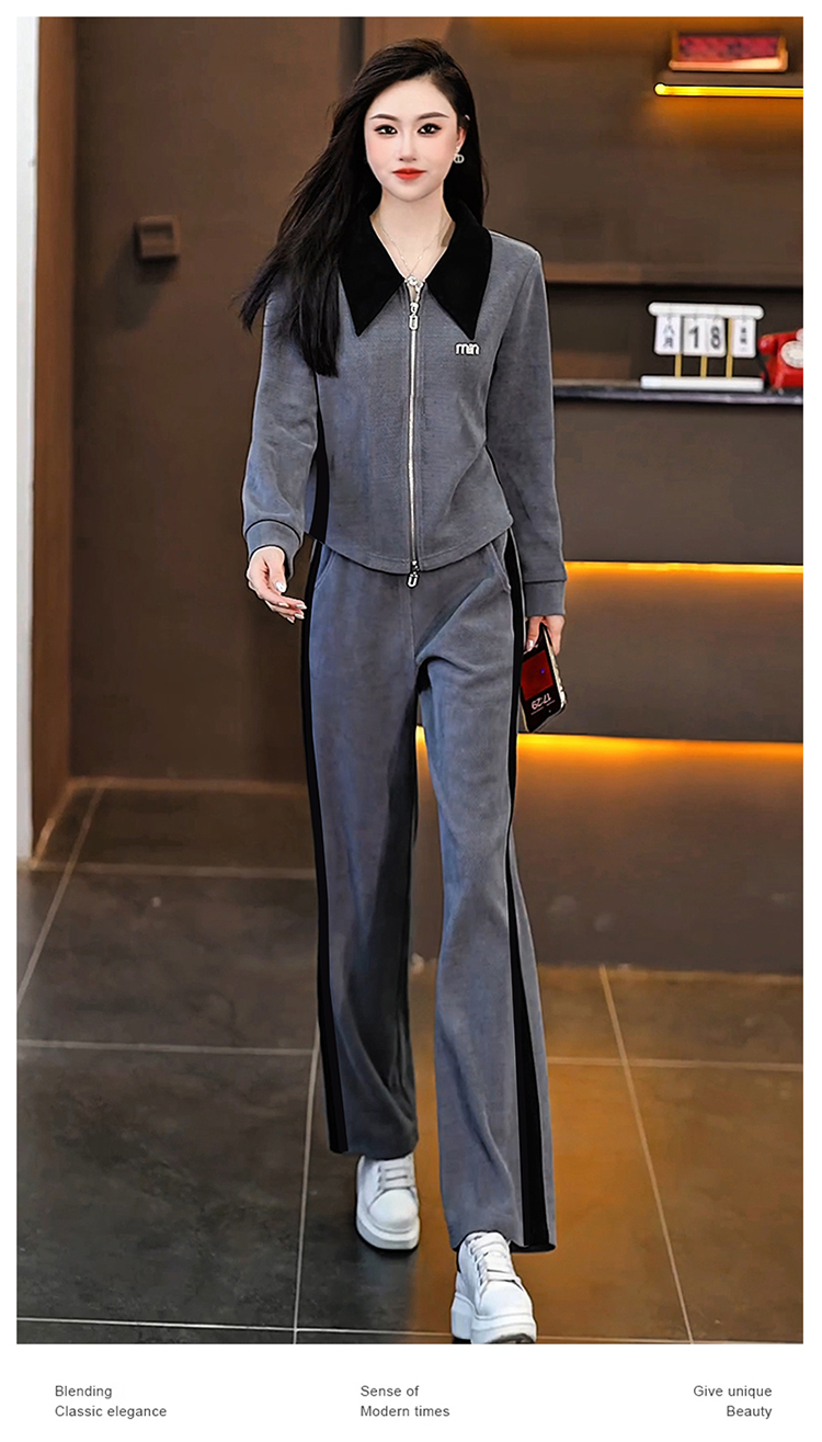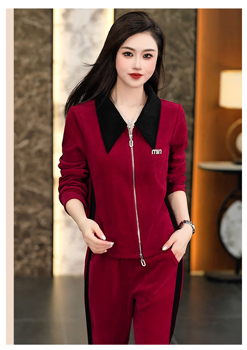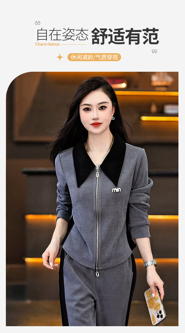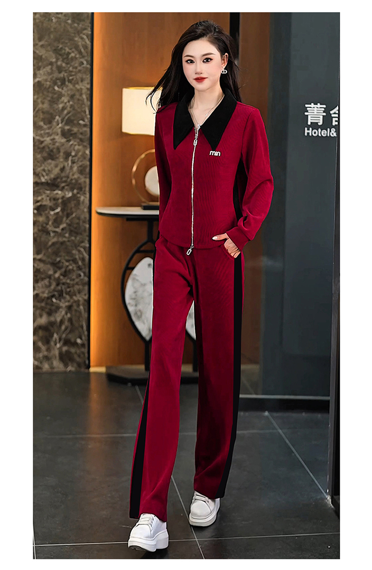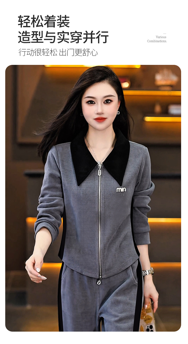 SP70-8527 2025春秋新款女款运动休闲套装POLO领长袖透气修身弹力两件套