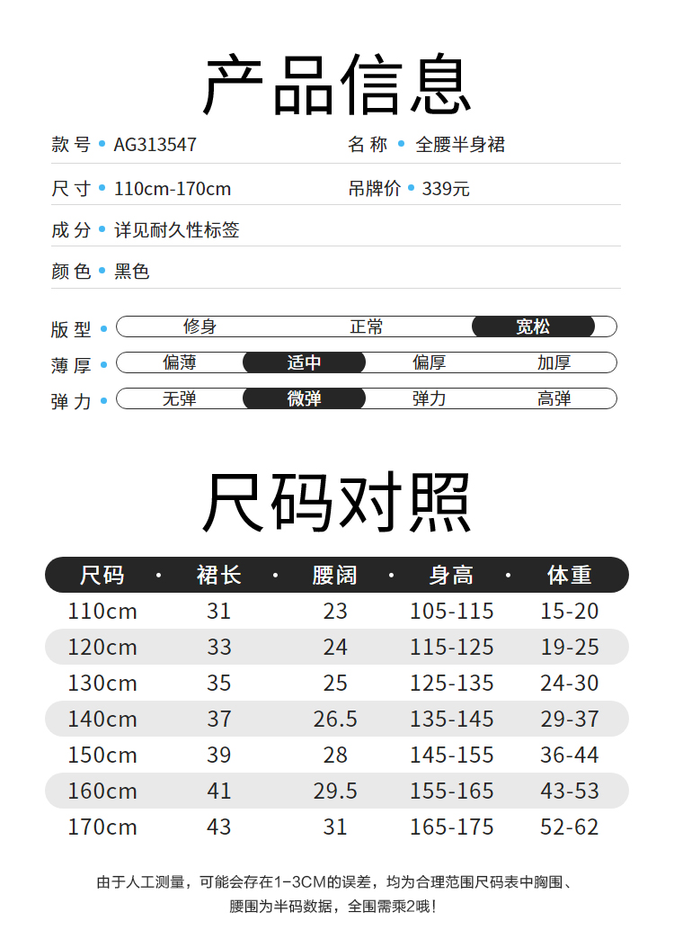 【实体店同款】【新年红】女童半身裙黑色百褶裙秋新款洋气安奈儿童装AG313547