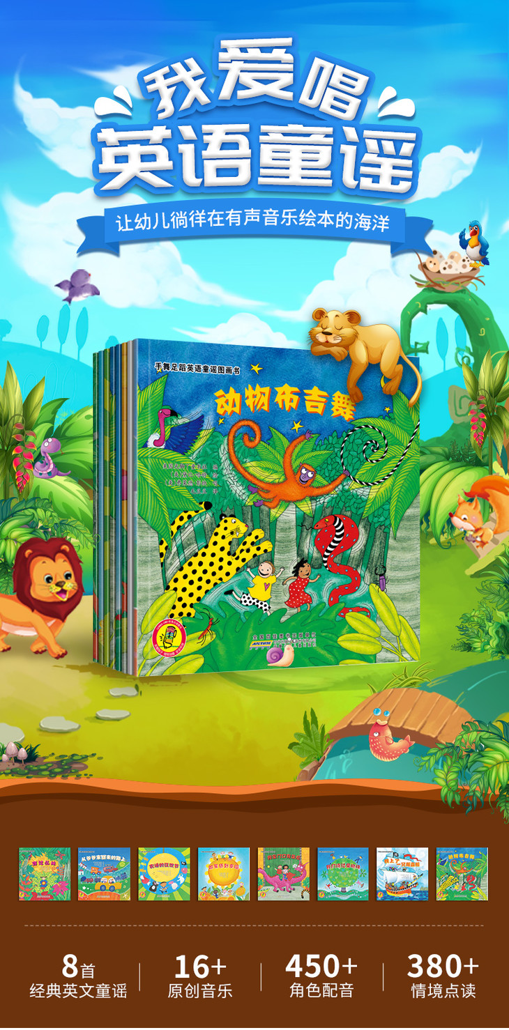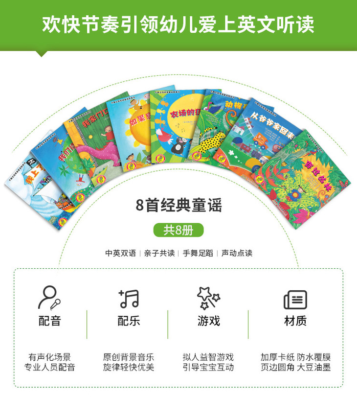 【点读+翻读】 吉美有声书音乐书 手舞足蹈英语童谣故事书 3-6岁适读(8册)
