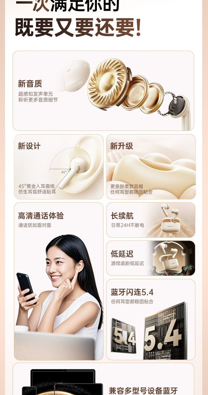 Lenovo联想-EA230蓝牙耳机 2025新款入耳式无线降噪高音质男女通用