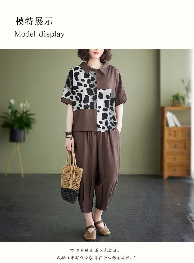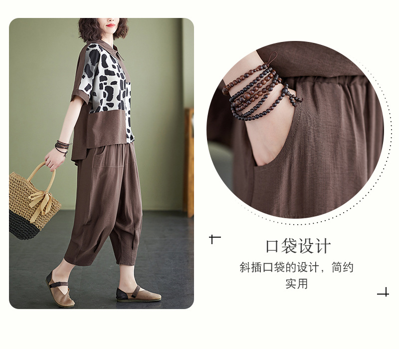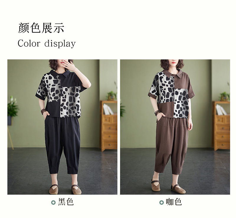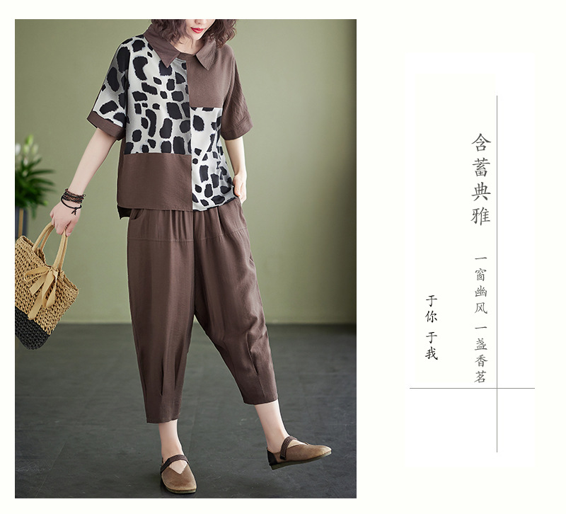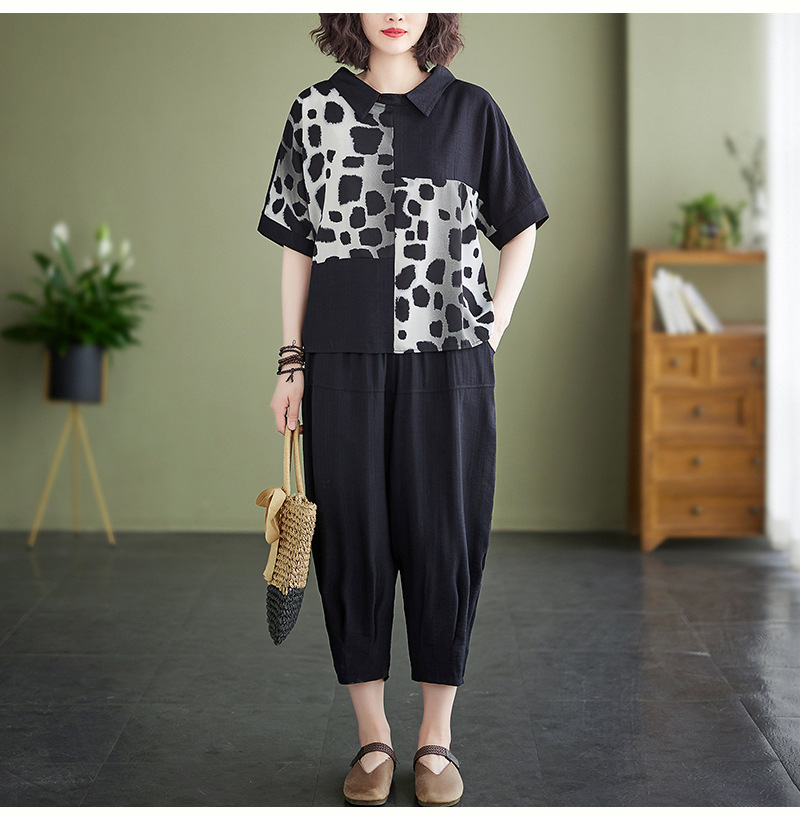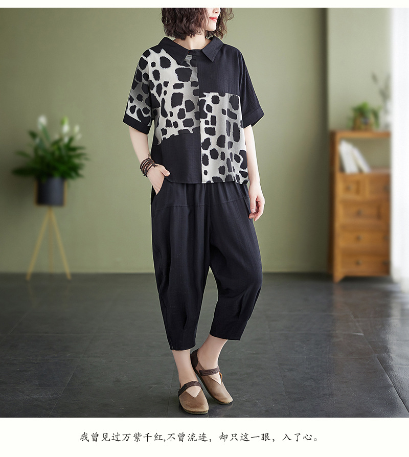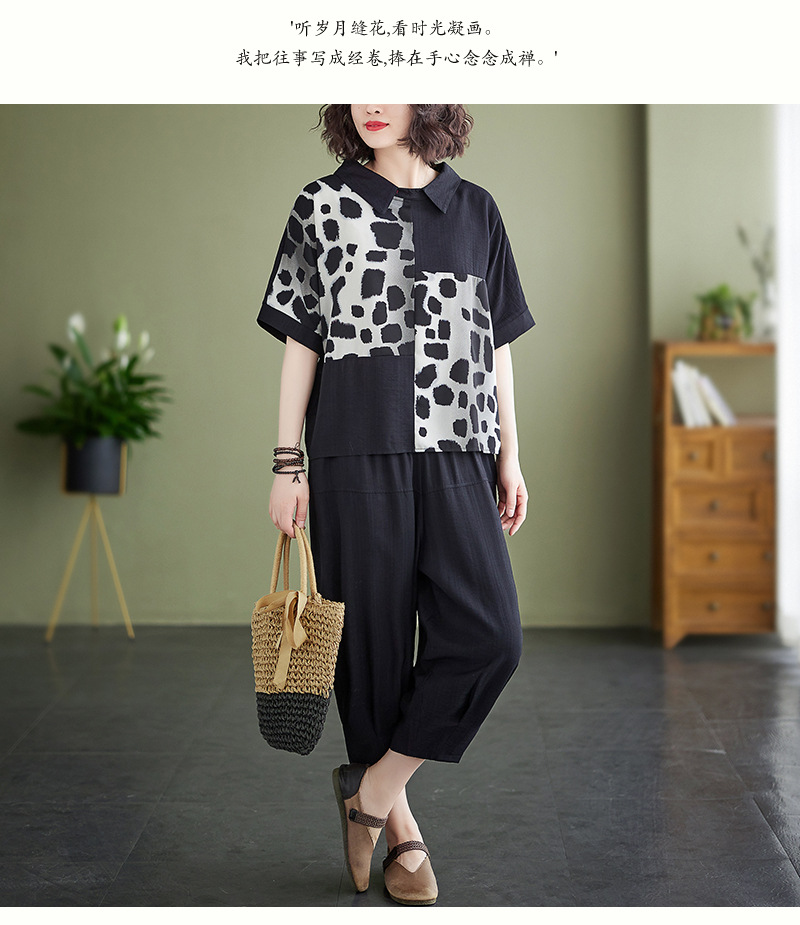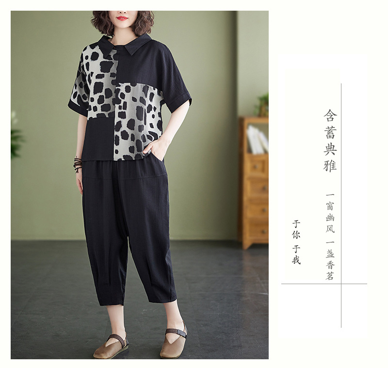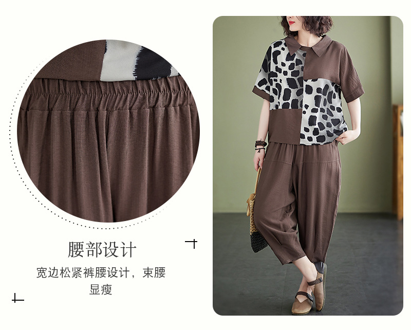 GYH 9676棉麻拼接宽松大码上衣+松紧腰阔腿裤两件套
