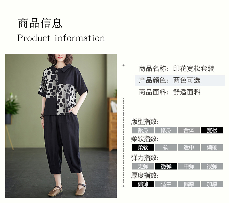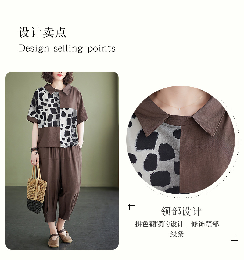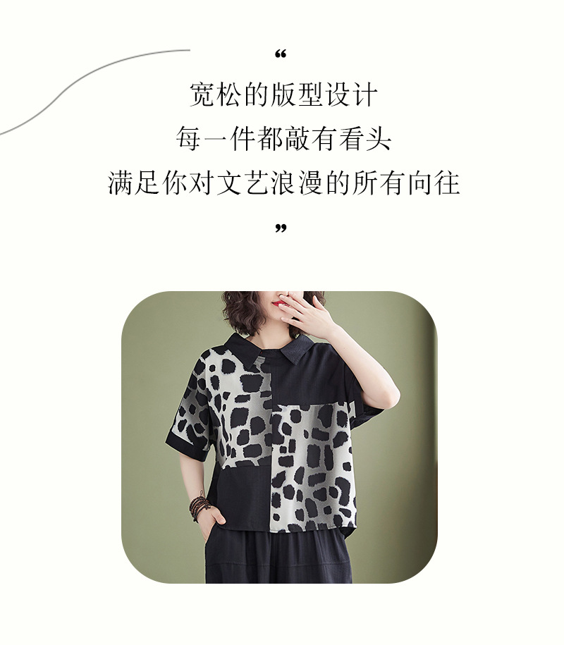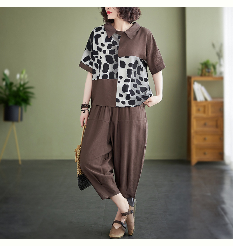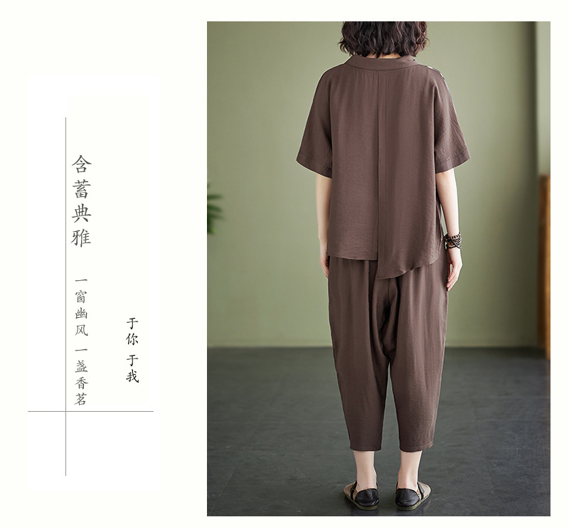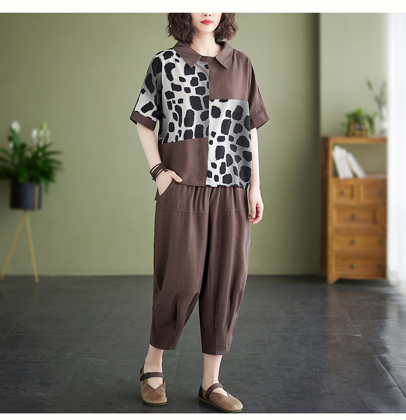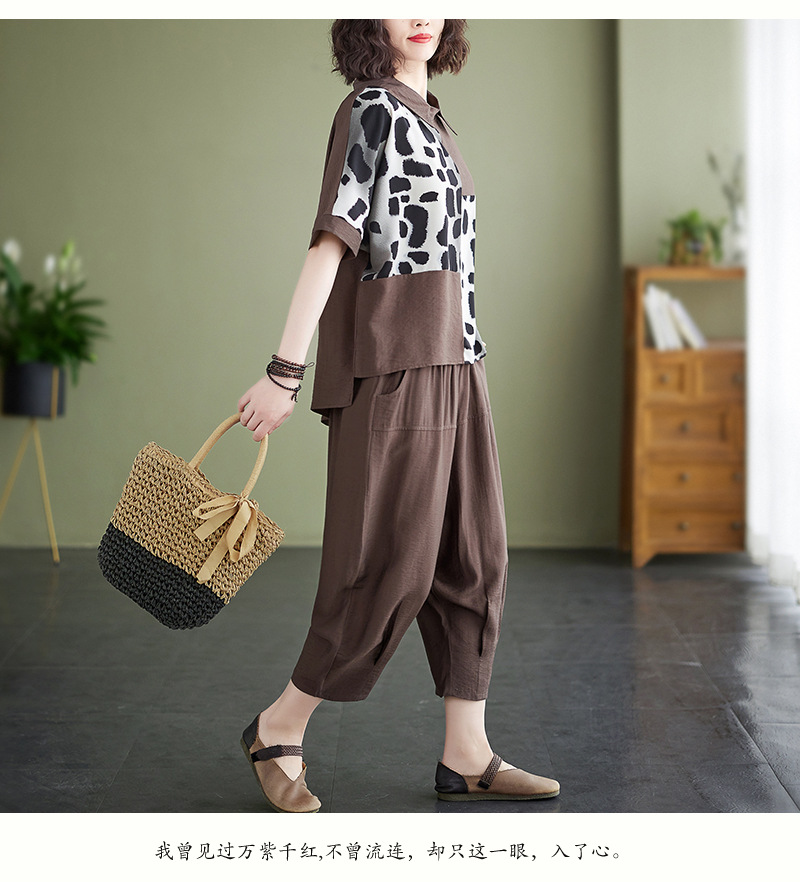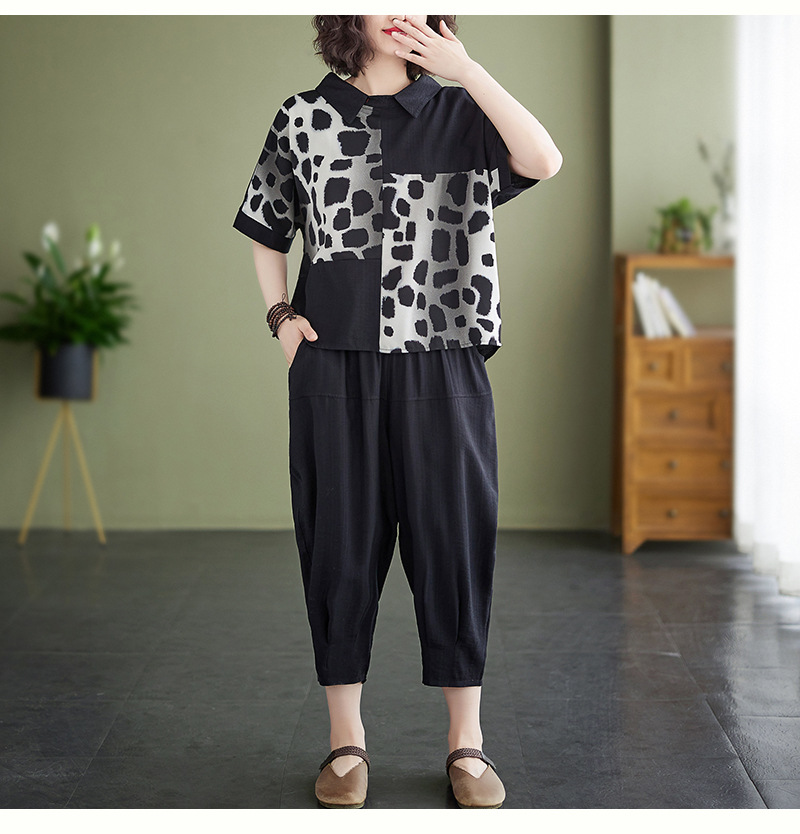 GYH 9676棉麻拼接宽松大码上衣+松紧腰阔腿裤两件套
