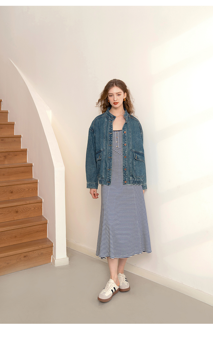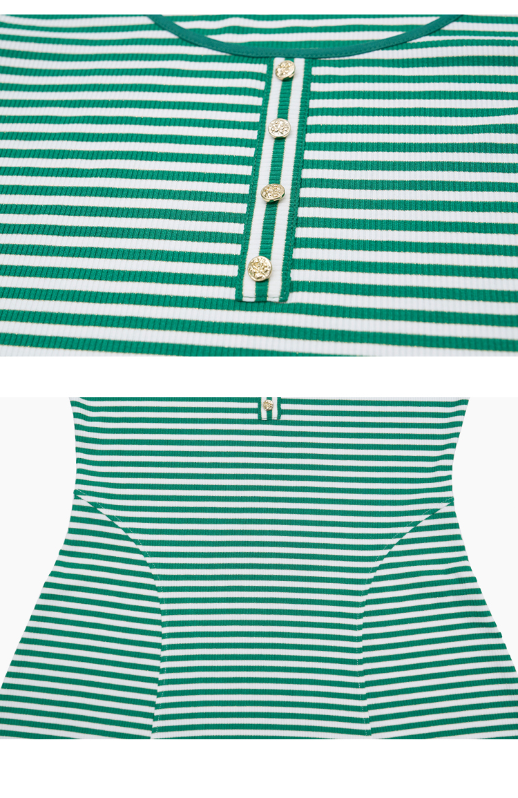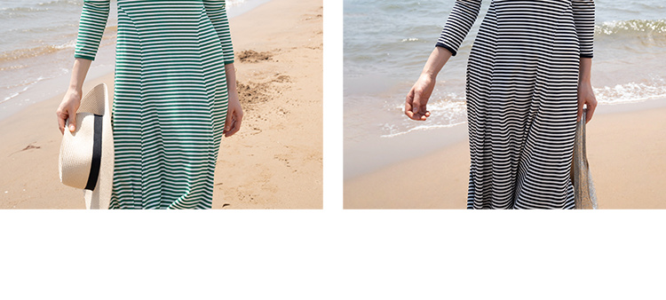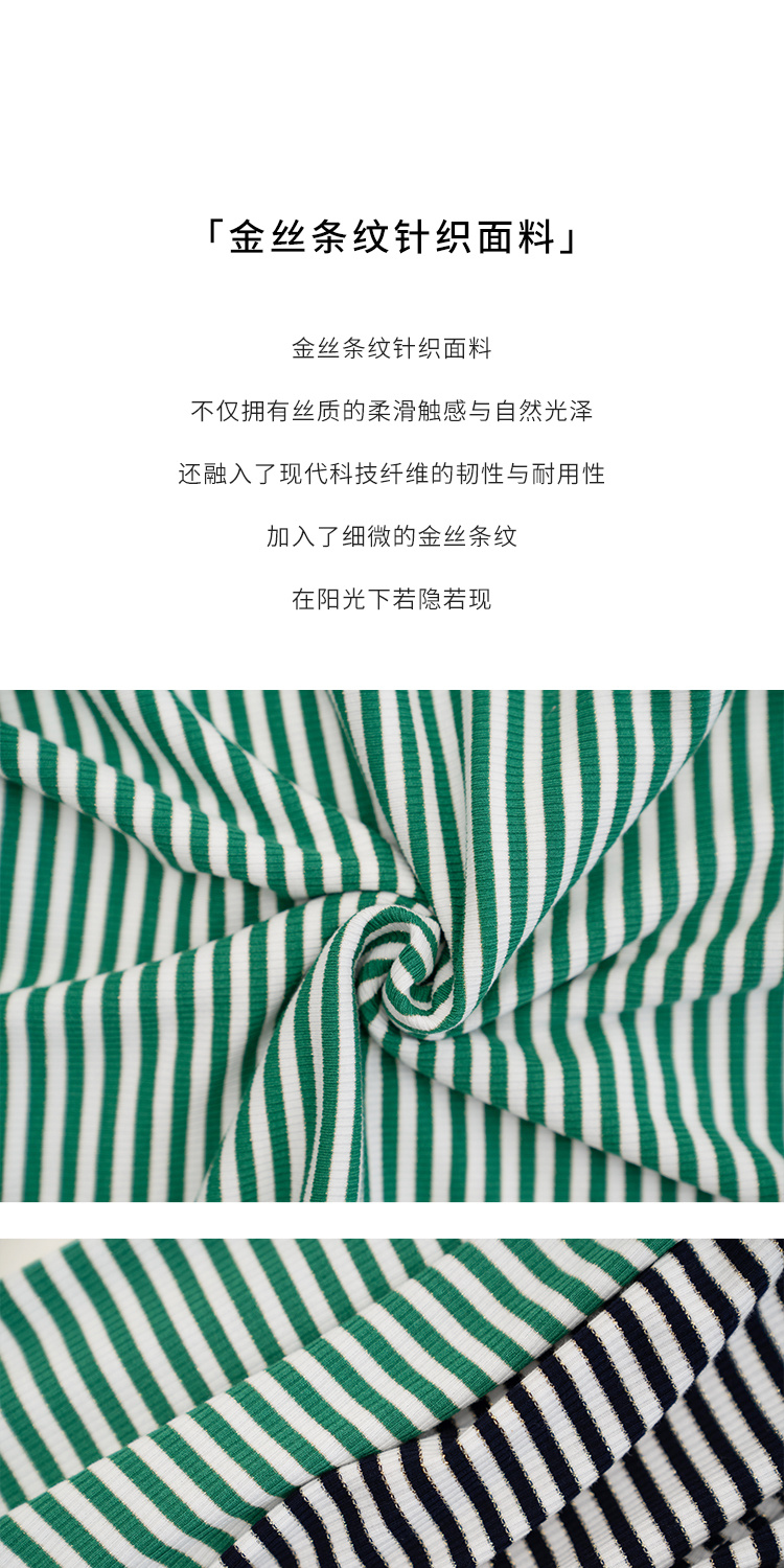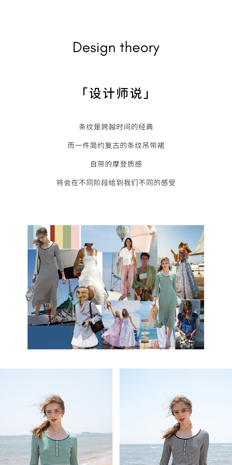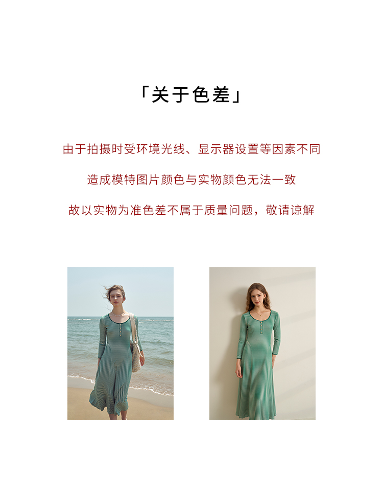 HeyDress大U领连衣裙女春秋法式撞色条纹收腰设计感修身针织裙子