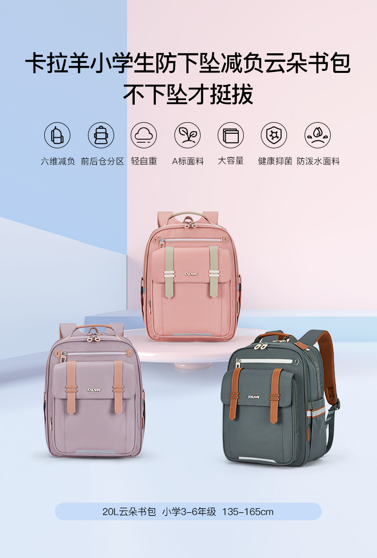【云朵书包2.0PLUS版】卡拉羊六维防下坠小学生3-6年级20L云朵书包 万物生 CX2678