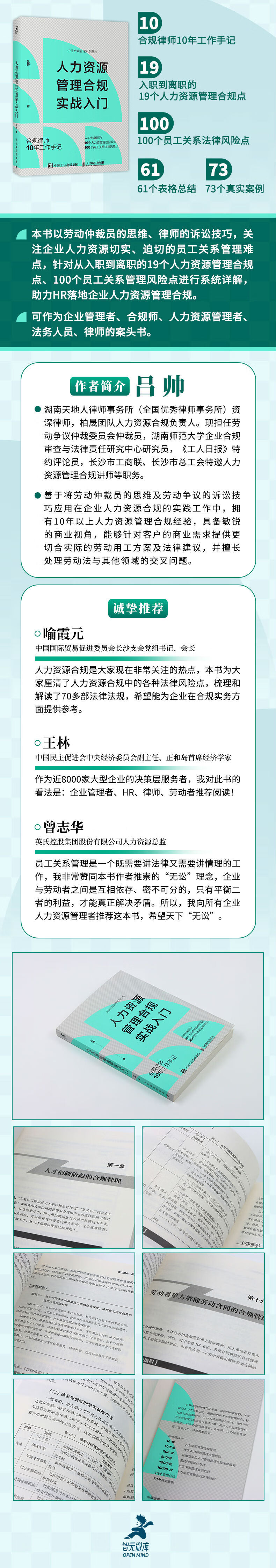 《人力资源管理合规实战入门》以劳动仲裁员的思维、律师的诉讼技巧,关注企业人力资源切实、迫切的员工关系管理难点,针对从入职到离职的19个人力资源管理合规点、100个员工关系管理风险点进行系统详解,助力HR落地企业人力资源管理合规。可作为企业管理者、合规师、人力资源管理者、法务人员、律师的案头书。