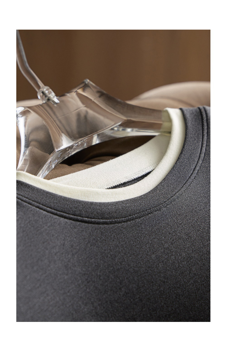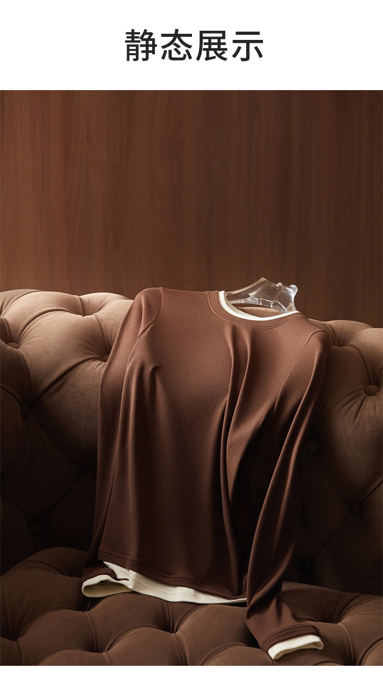 「自」全新升级【铂金会员146/天猫189/差价43】(00636)洛诗琳灵芝山羊绒假两件打底衫2025秋冬圆领撞色保暖上衣女