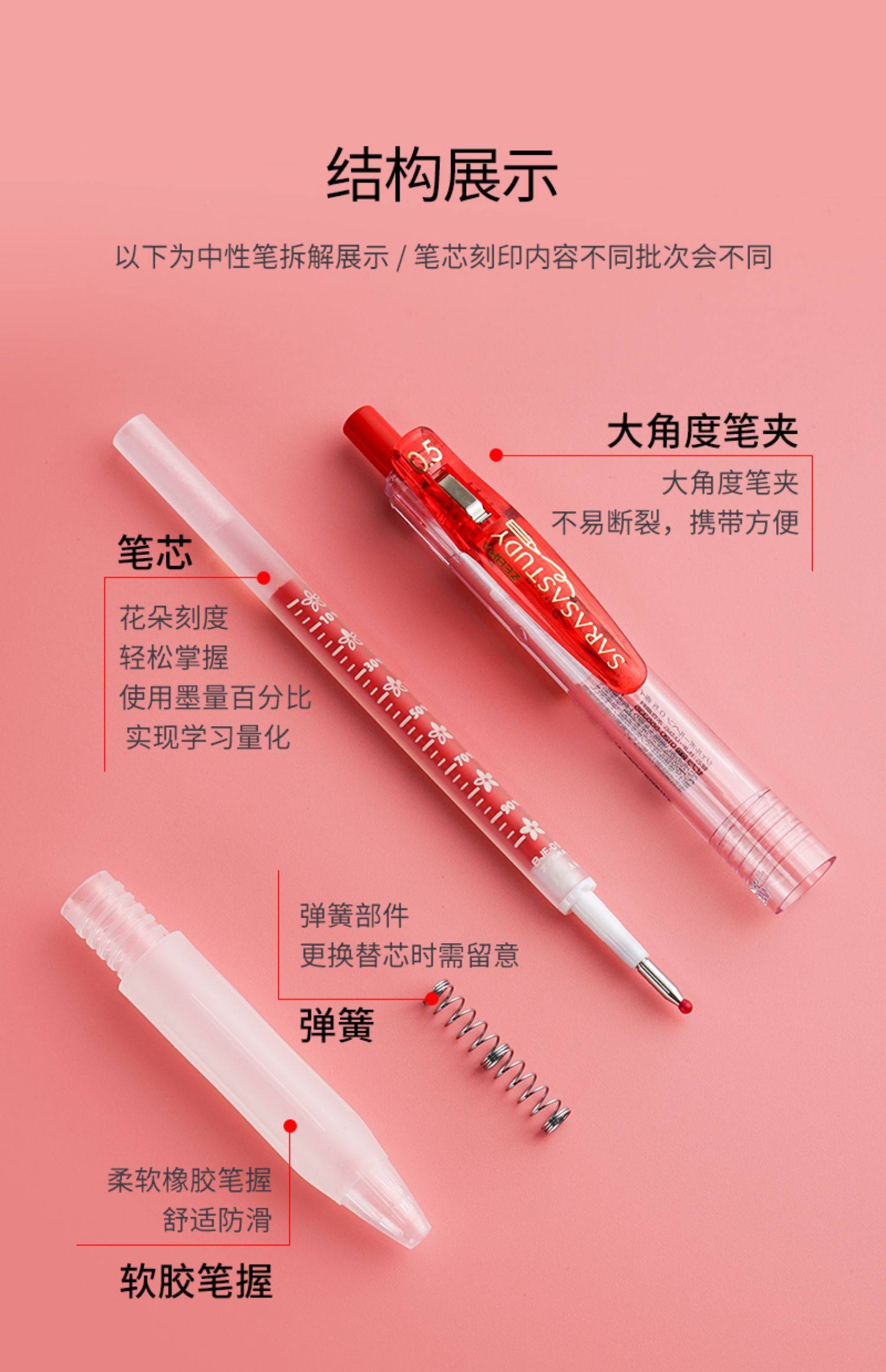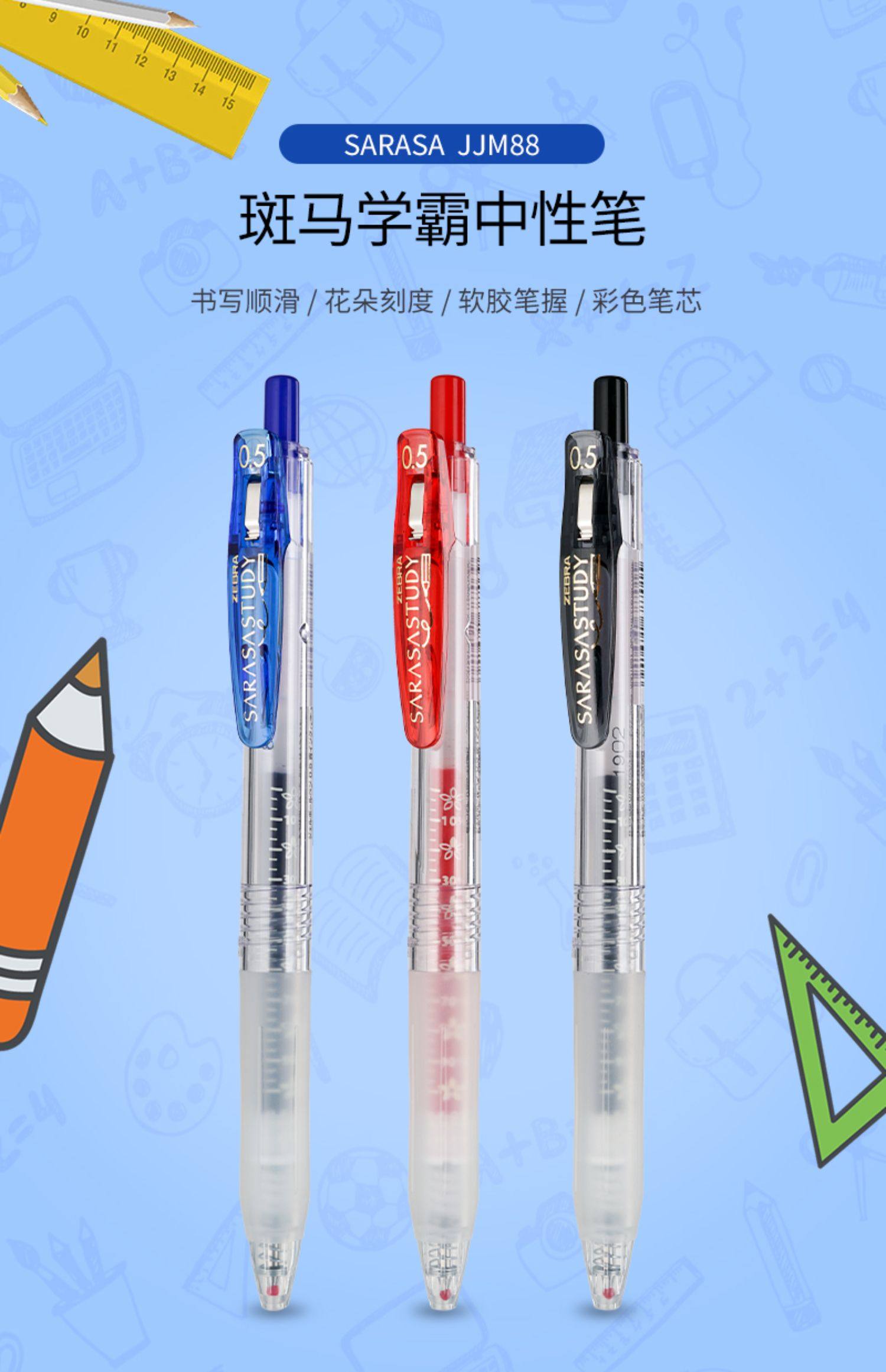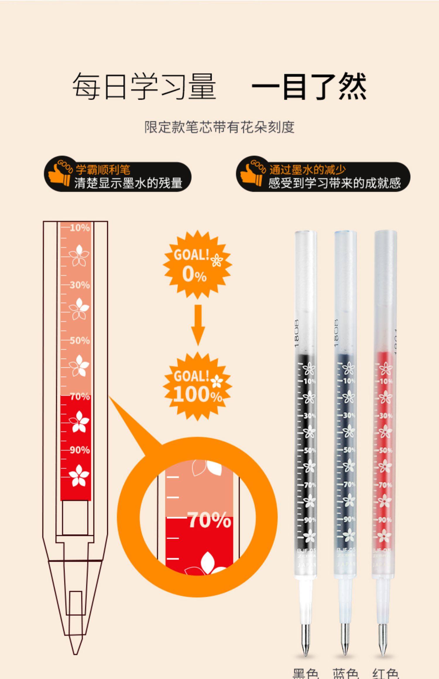 【10支】日本ZEBRA斑马中性笔学霸花朵自勉JJM88按动水笔笔学生用樱花刻度笔努力考试笔0.5黑笔