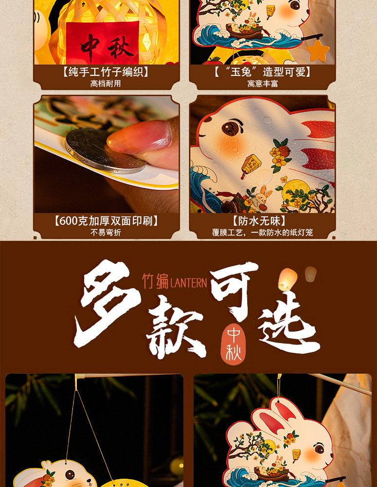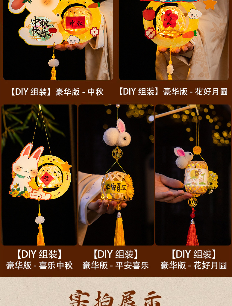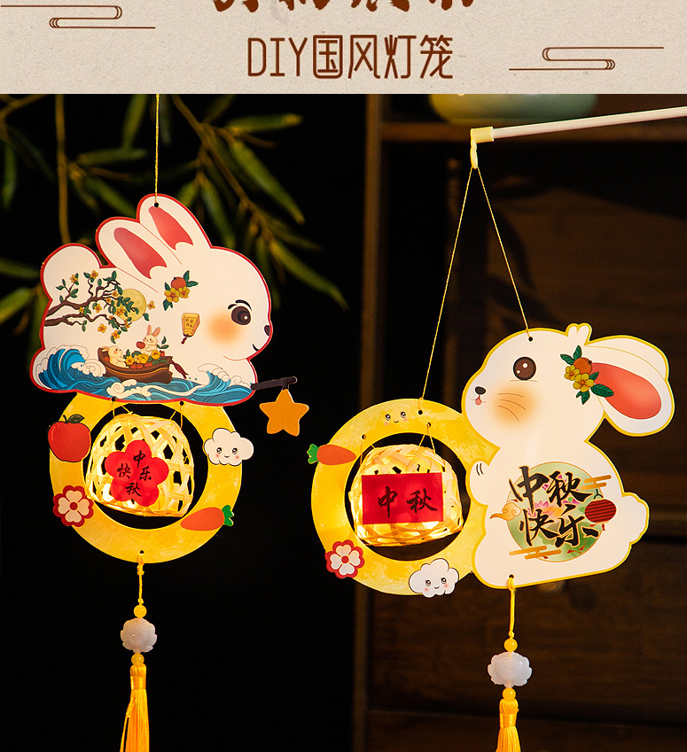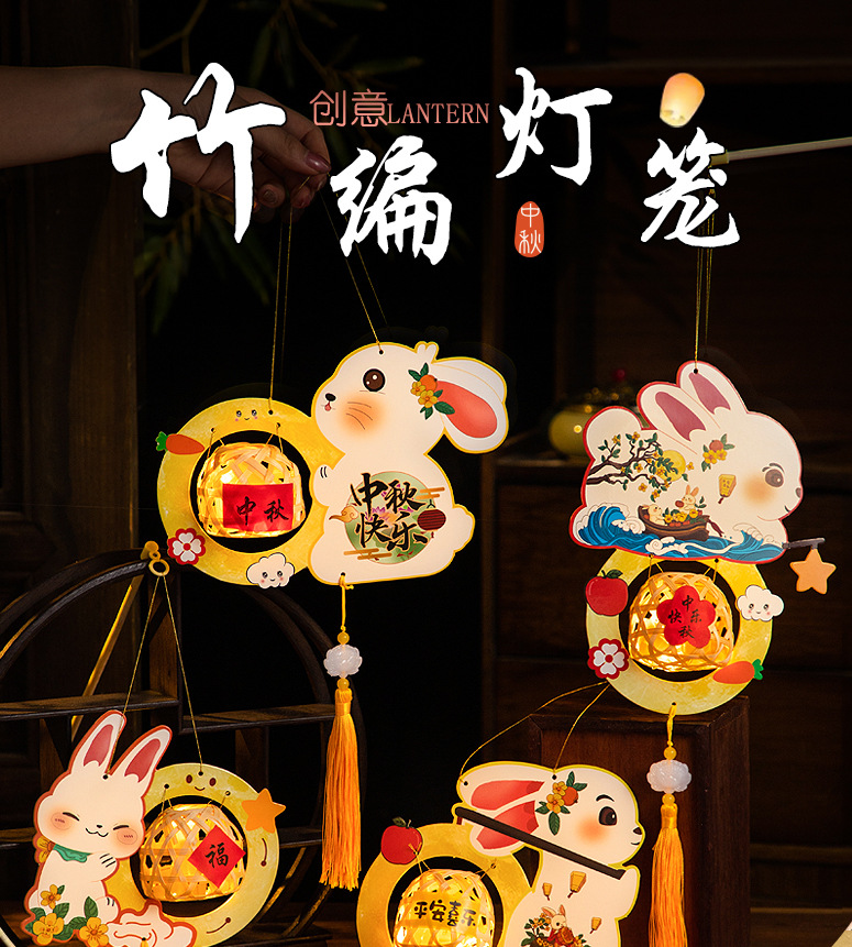 【竹编灯笼!古风设计,玉兔萌趣~】中秋节竹编小灯笼 新款手工diy制作材料包 手提古风兔子花灯灯笼-QQ