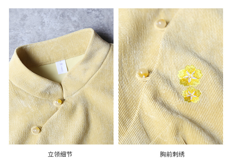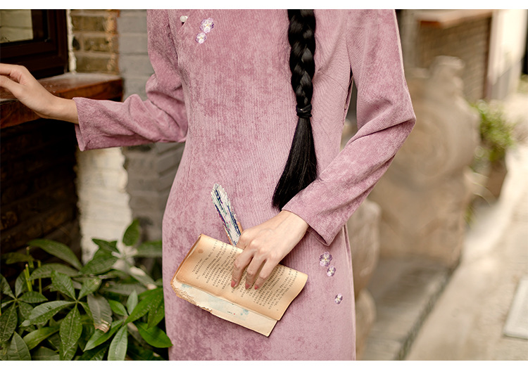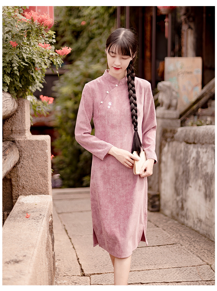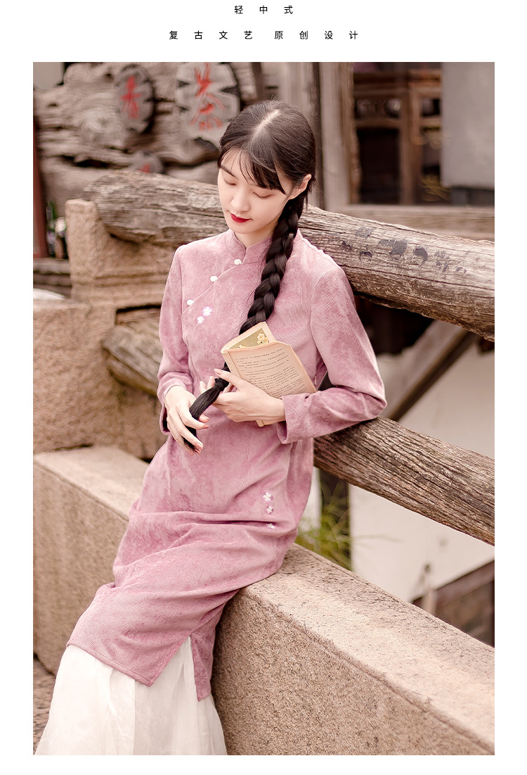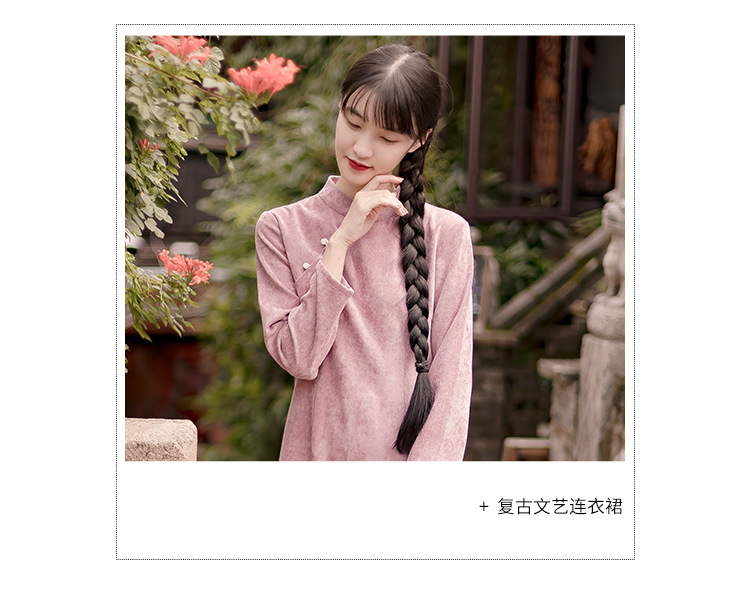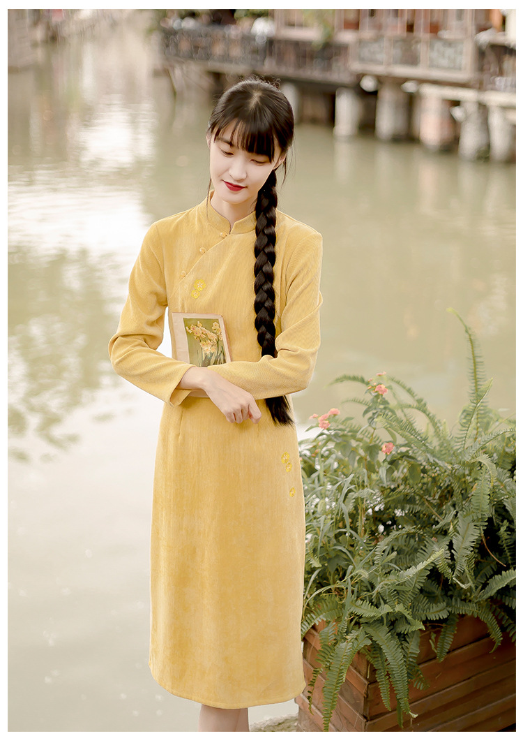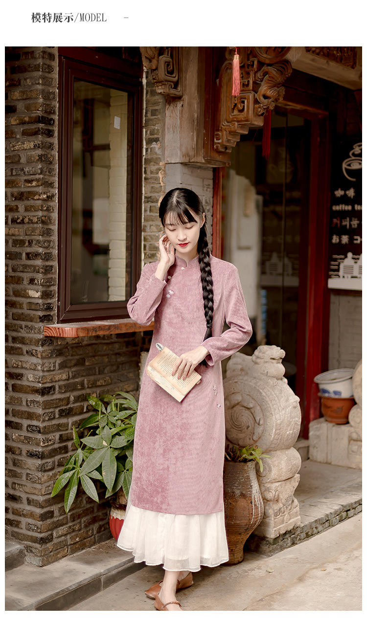 YM-13336灯芯绒旗袍改良版保暖秋冬新款女民国风复古文艺显瘦连衣裙