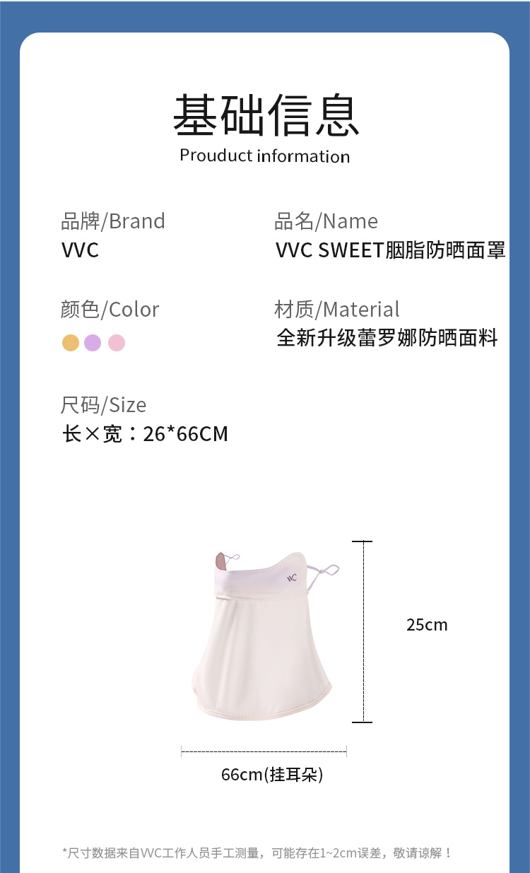 VVC SWEET胭脂护眼角防晒面罩女防紫外线冰丝透气夏季面罩薄款面纱全脸户外VGK3S159