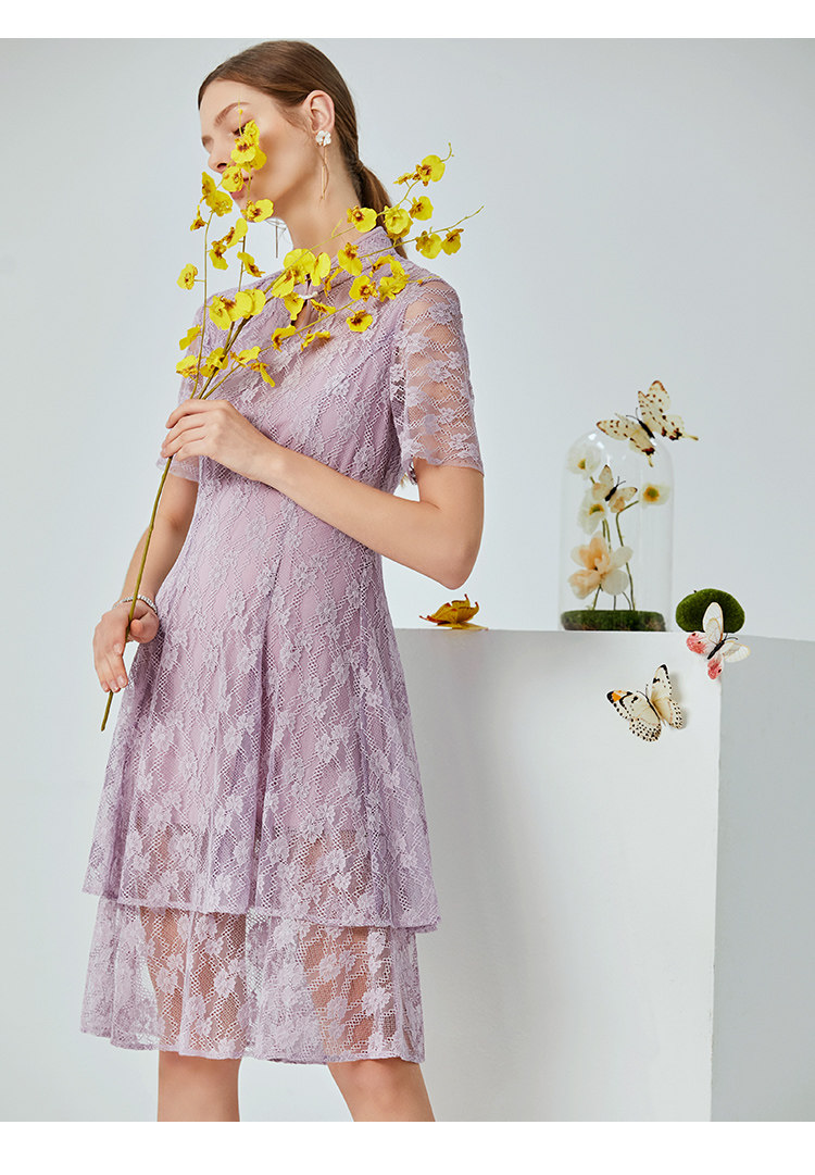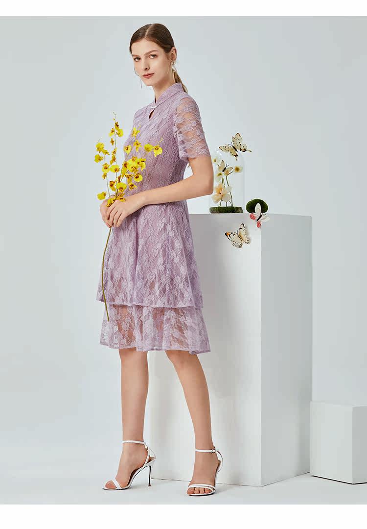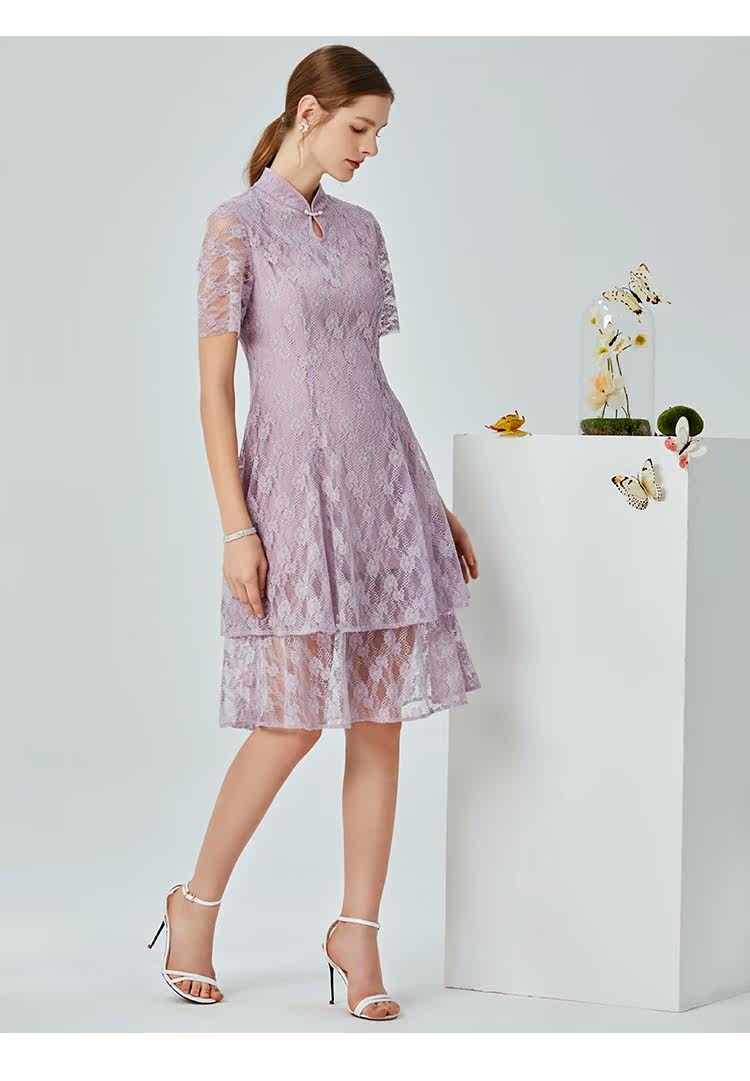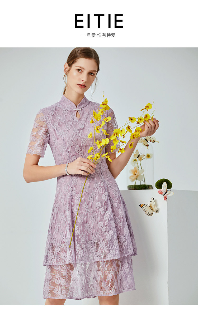 EITIE爱特爱夏季新款时尚中国风水滴领镂空蕾丝修身连衣裙女B20074108