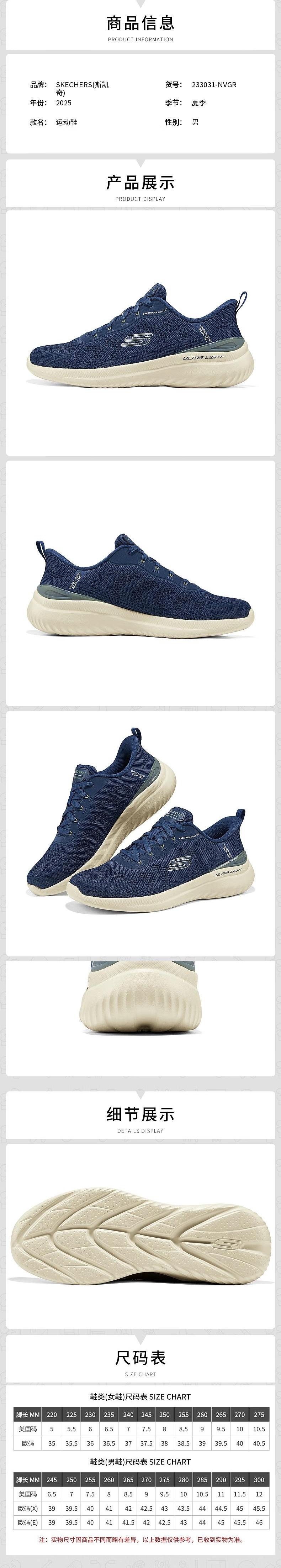 Skechers斯凯奇 男绑带运动鞋 233031-NVGR