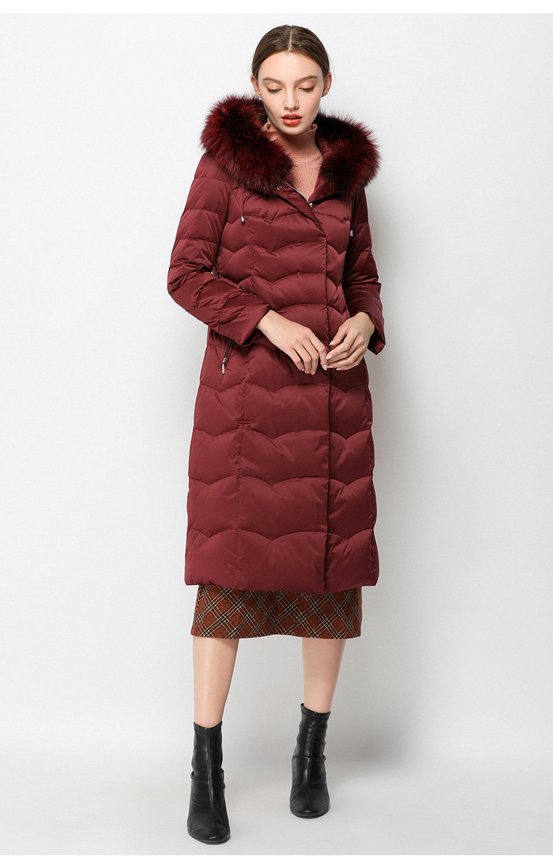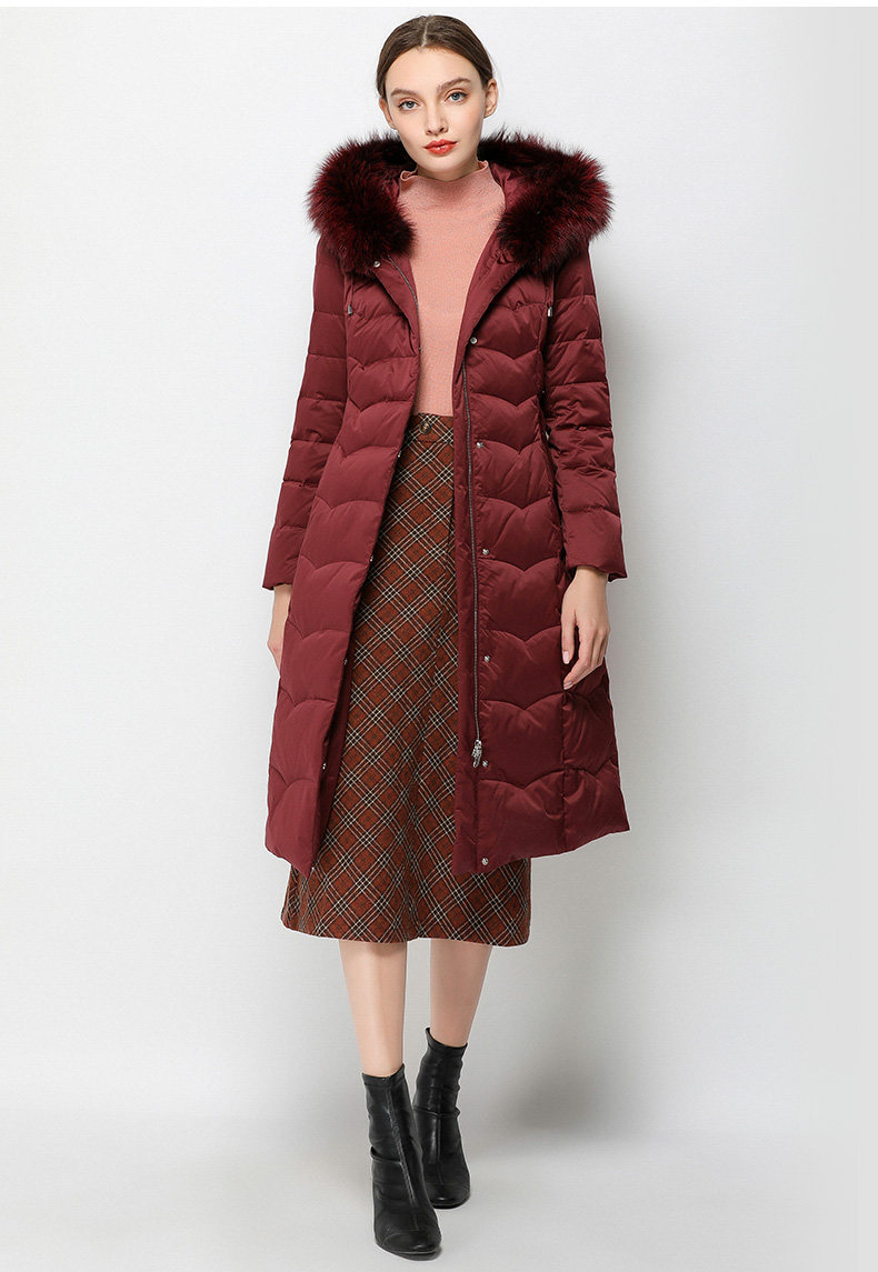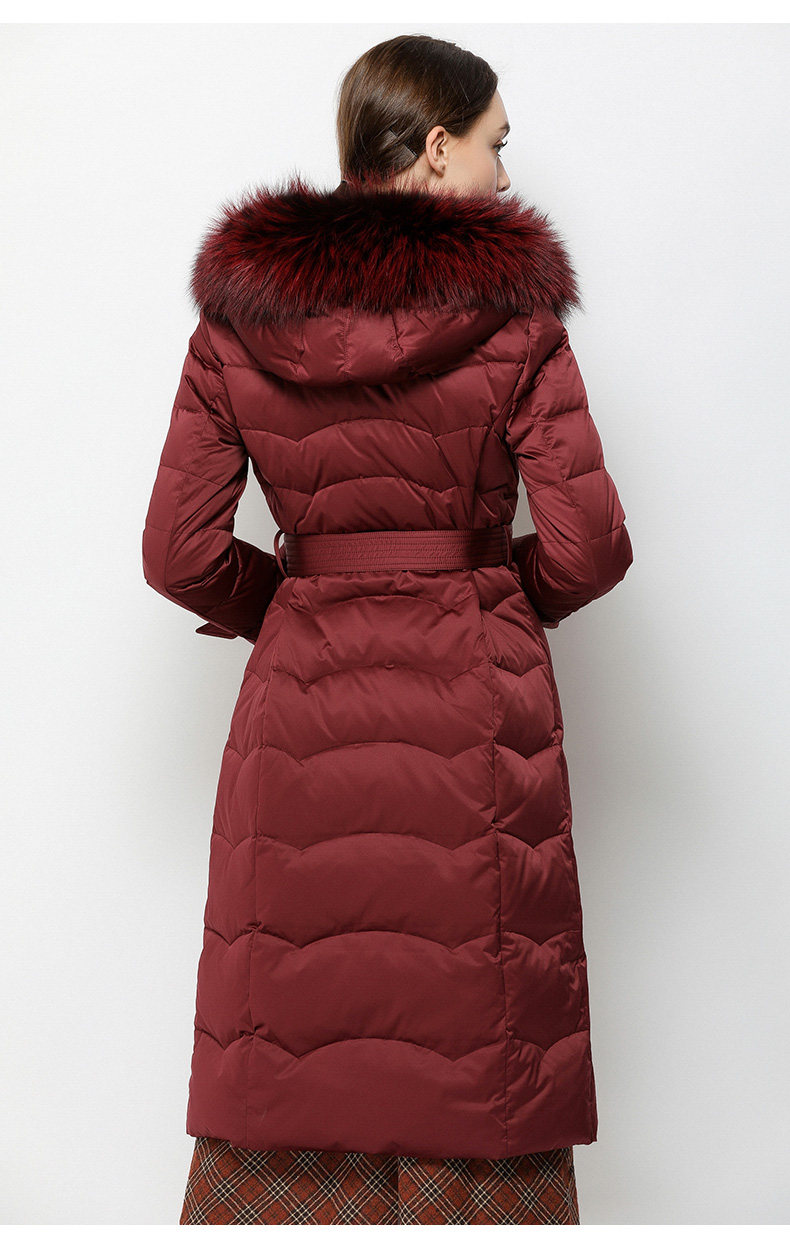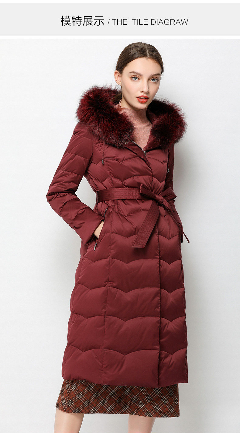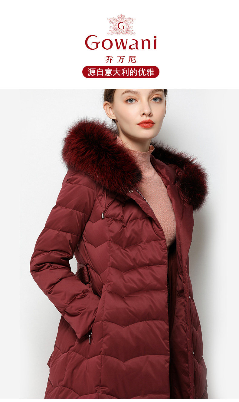 【鹅绒】乔万尼修身显瘦羽绒服女洋气时尚长款过膝红色羽绒服冬EN4T756