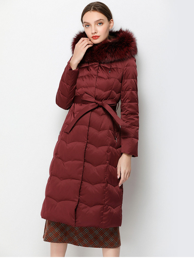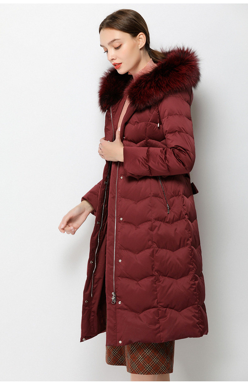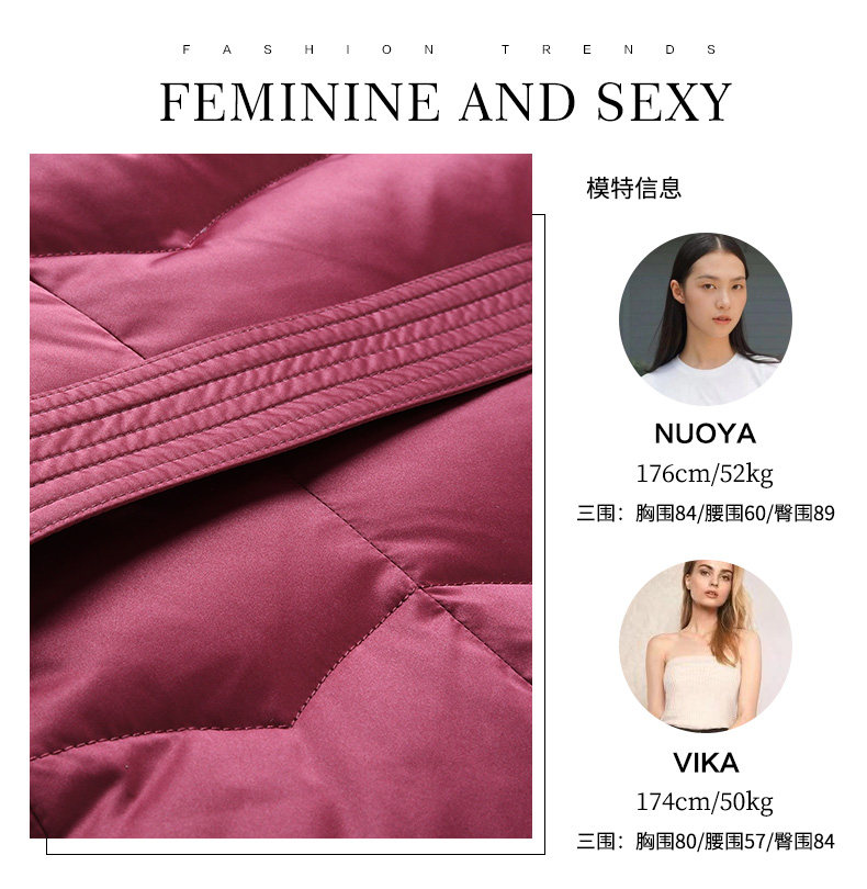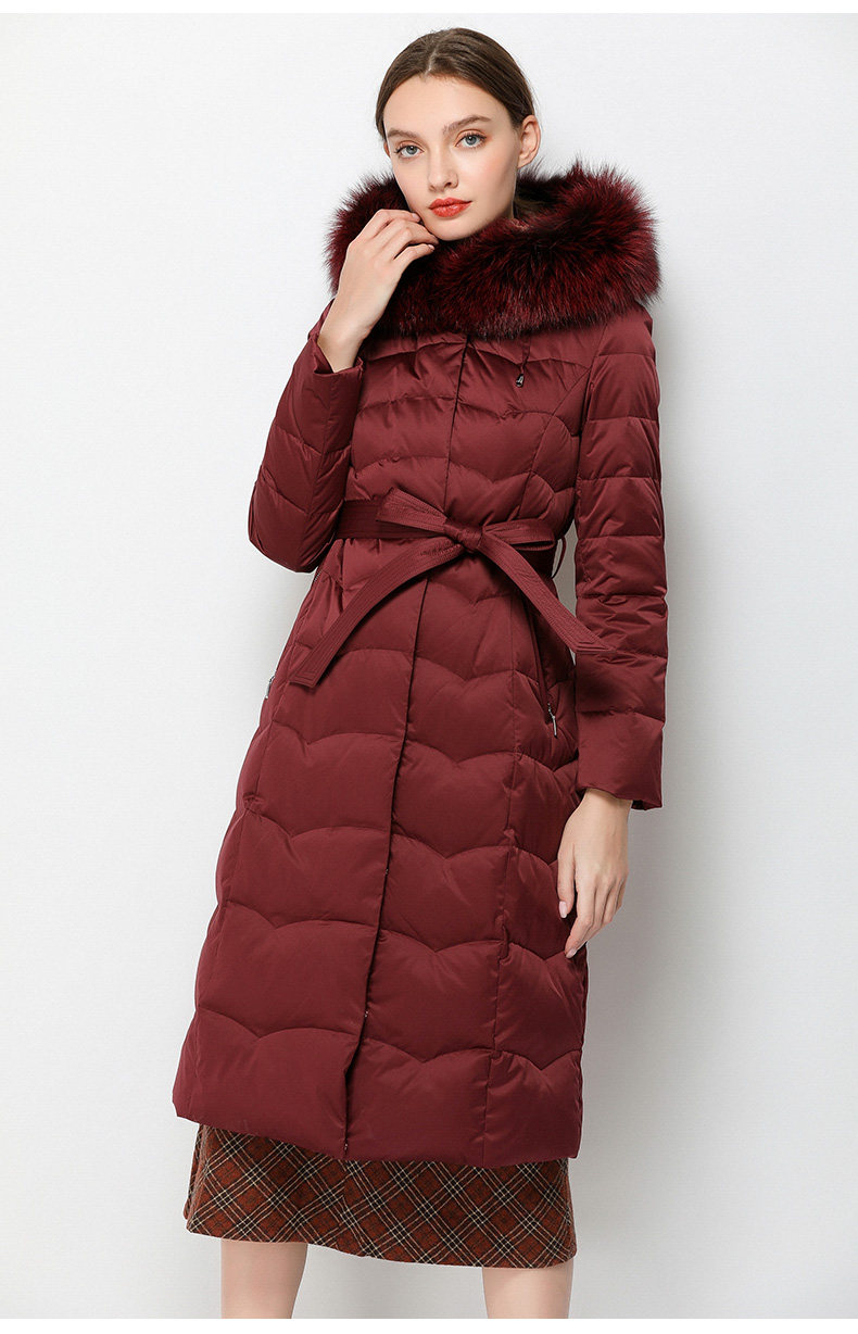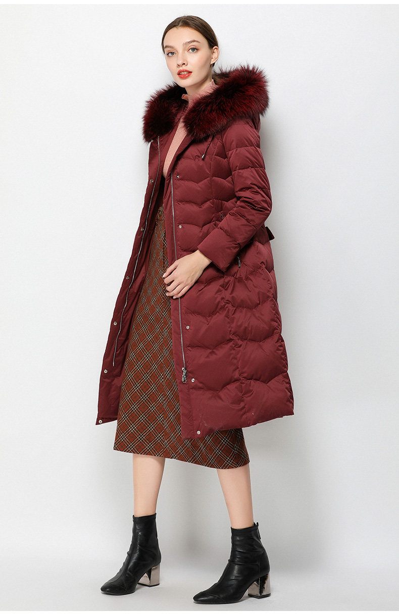 【鹅绒】乔万尼修身显瘦羽绒服女洋气时尚长款过膝红色羽绒服冬EN4T756