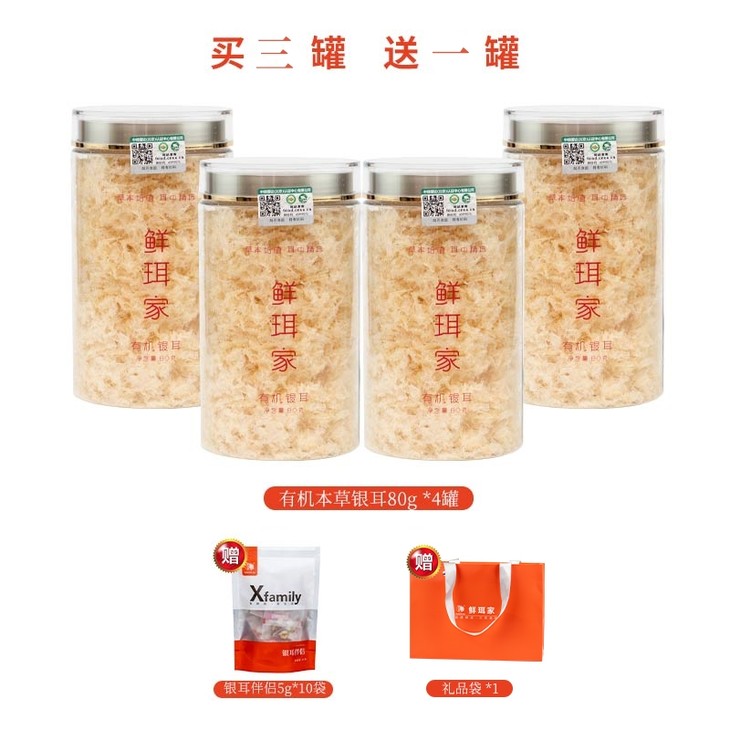 规格二:有机本草银耳80g*3罐(买3罐送1罐,实发4罐+红枣伴侣10包+礼品袋)