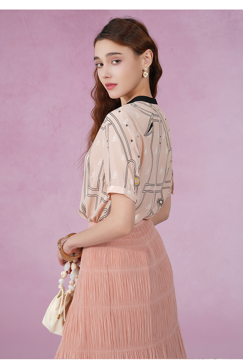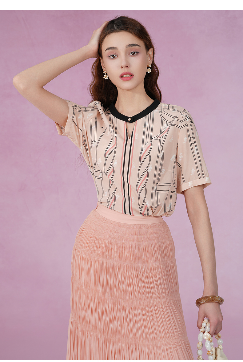 乔万尼夏季新款重磅真丝衬衫拼色设计衬衣EI2C806